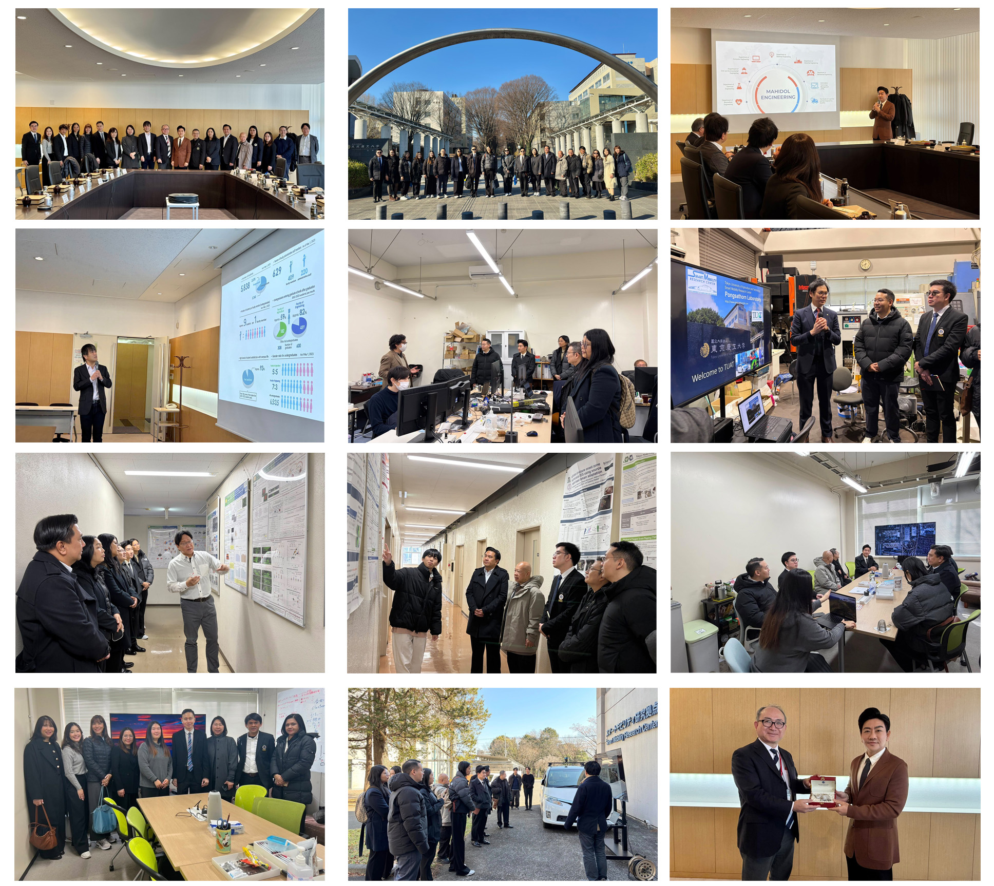 วันที่ 13 มกราคม 2569 ภาควิชาวิศวกรรมชีวการแพทย์ คณะวิศวกรรมศาสตร์ นำโดย รศ.ดร.ธนภัทร์ วานิชานนท์ คณบดีคณะวิศวกรรมศาสตร์ พร้อมด้วย รศ.ดร.เบญจพร เลิศอนันตวงศ์ รองคณบดีฝ่ายวิจัยและบริการวิชาการ และ รศ.ดร.วรากร เจริญสุข หัวหน้าภาควิชาวิศวกรรมชีวการแพทย์ พร้อมด้วยคณาจารย์และเจ้าหน้าที่ภาควิชาวิศวกรรมชีวการแพทย์ เข้าเยี่ยมชมห้องปฏิบัติการพร้อมทั้งหารือความร่วมมือด้านงานวิจัย ณ Institute of Engineering, Tokyo University of Agriculture and Technology เมืองโตเกียว ประเทศญี่ปุ่น นำโดย