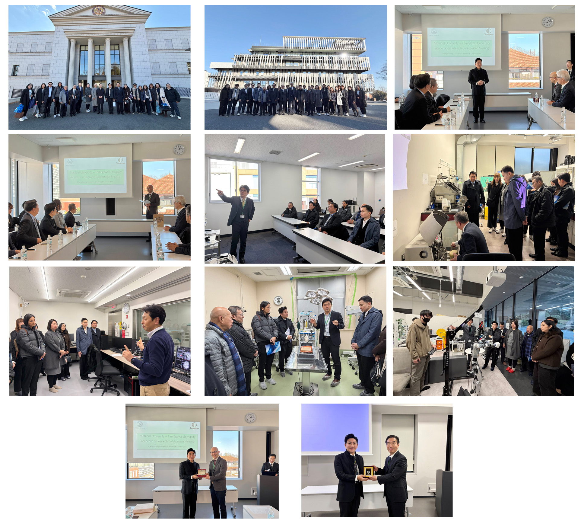 เข้าเยี่ยมชมและหารือความร่วมมือด้านงานวิจัย การแลกเปลี่ยนบุคลากรและนักศึกษา อีกทั้งยังได้เยี่ยมห้องปฏิบัติการ College of Engineering, Tamagawa University ณ เมืองโตเกียว ประเทศญี่ปุ่น ให้การต้อนรับโดย Kazuhito Obara Ph.D., Tamagawa University President พร้อมด้วย Professor Koichi Yamazaki, Dean of the College of Engineering, Tamagawa University