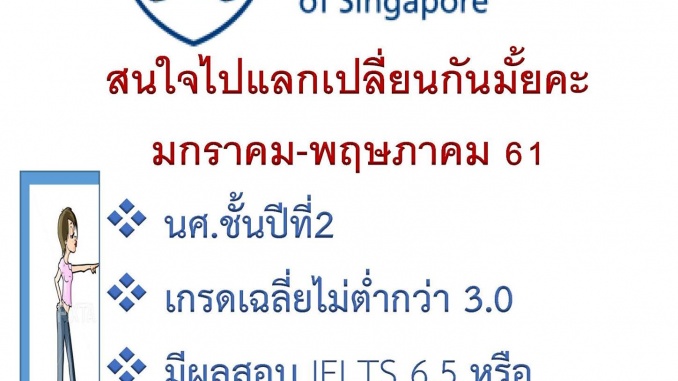 มาอีกแล้ว สิ่งดีๆสำหรับเด็ก ME ของเรา กับโครงการ National University of Singapore – NUS เปิดรับสมัครนักศึกษาชั้นปีที่ 2 ขึ้นไป ร่วมกิจกรรมแลกเปลี่ยน น้องๆสนใจ รีบหน่อยนะคะ ภายในวันที่ 28 สิงหาคม 2560 นี้เท่านั้น