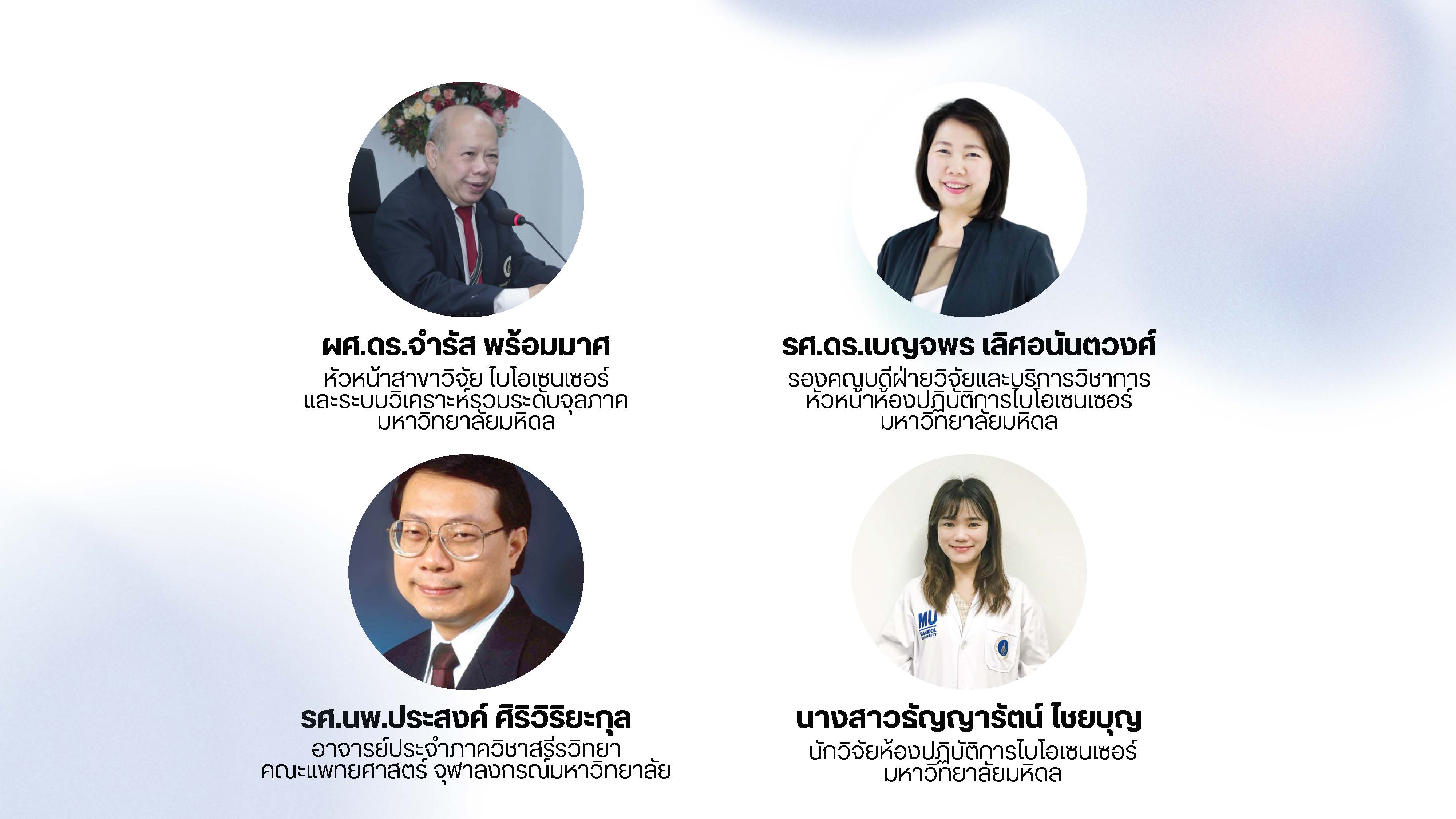 ความสำเร็จครั้งนี้ได้รับการสนับสนุนจากคณาจารย์ภาควิชาวิศวกรรมชีวการแพทย์ คณะวิศวกรรมศาสตร์ มหาวิทยาลัยมหิดล ได้แก่ ผู้ช่วยศาสตราจารย์ ดร.จำรัส พร้อมมาศ ที่ปรึกษาคณบดีด้านการสนับสนุนพันธกิจองค์กร และเป็นหัวหน้าสาขาวิจัยไบโอเซนเซอร์และระบบวิเคราะห์รวมระดับจุลภาค และ รองศาสตราจารย์ ดร.เบญจพร เลิศอนันตวงศ์ รองคณบดีฝ่ายวิจัยและบริการวิชาการ และเป็นหัวหน้าห้องปฏิบัติการไบโอเซนเซอร์ รวมถึงทีมนักวิจัยจากคณะแพทยศาสตร์ จุฬาลงกรณ์มหาวิทยาลัย ที่ให้คำปรึกษาและร่วมพัฒนาผลงาน จนเกิดเป็นนวัตกรรมที่มีคุณภาพและพร้อมต่อยอดสู่การใช้งานจริง