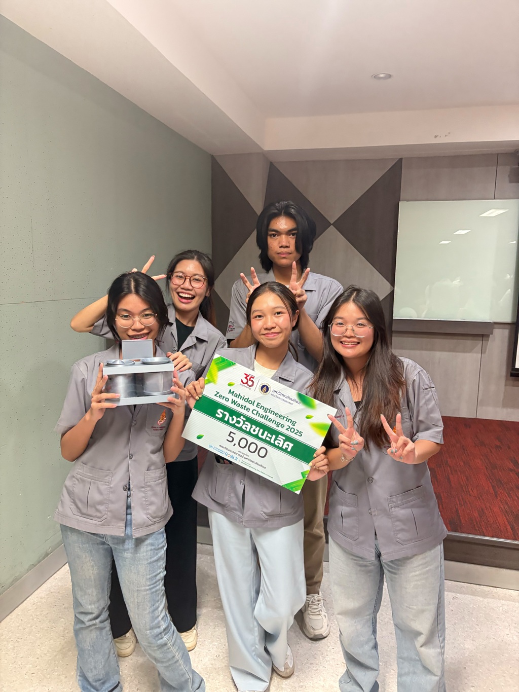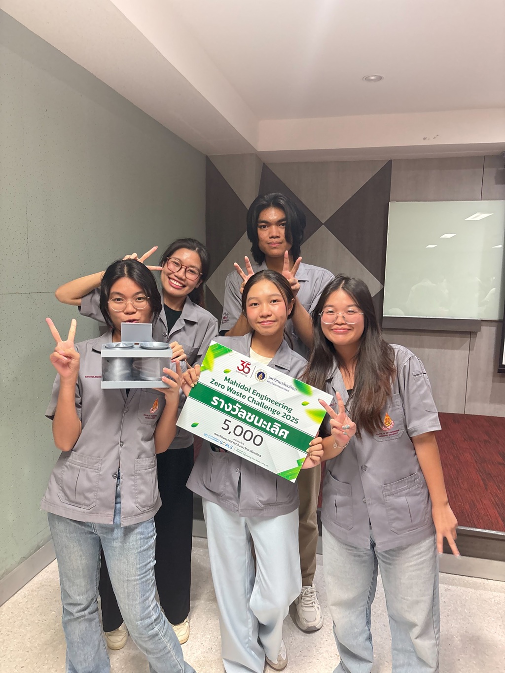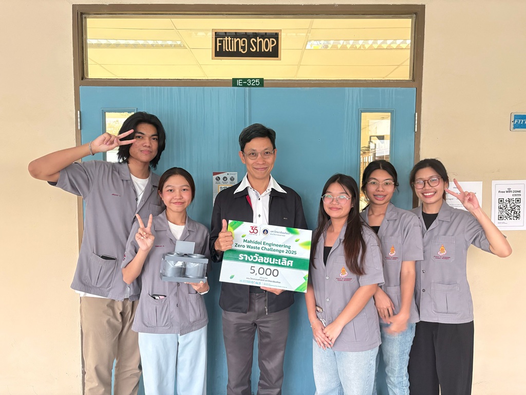 คณะวิศวกรรมศาสตร์ มหาวิทยาลัยมหิดล ขอแสดงความยินดีกับผลงานของนักศึกษาภาควิชาวิศวกรรมอุตสาหการ ทีม EcoMate จากโครงการ Mahidol Engineering Zero Waste Challenge 2025 ที่คว้ารางวัลชนะเลิศจากการประกวดออกแบบระบบการจัดการขยะเป็นศูนย์ พร้อมรับเงินรางวัลมูลค่า 5,000 บาท ในวันที่ 19 พฤศจิกายน 2568 ที่ผ่านมา ซึ่งเป็นอีกหนึ่งความสำเร็จสำคัญที่แสดงให้เห็นถึงศักยภาพในการพัฒนาเทคโนโลยีเพื่อสิ่งแวดล้อมอย่างสร้างสรรค์และเป็นรูปธรรม