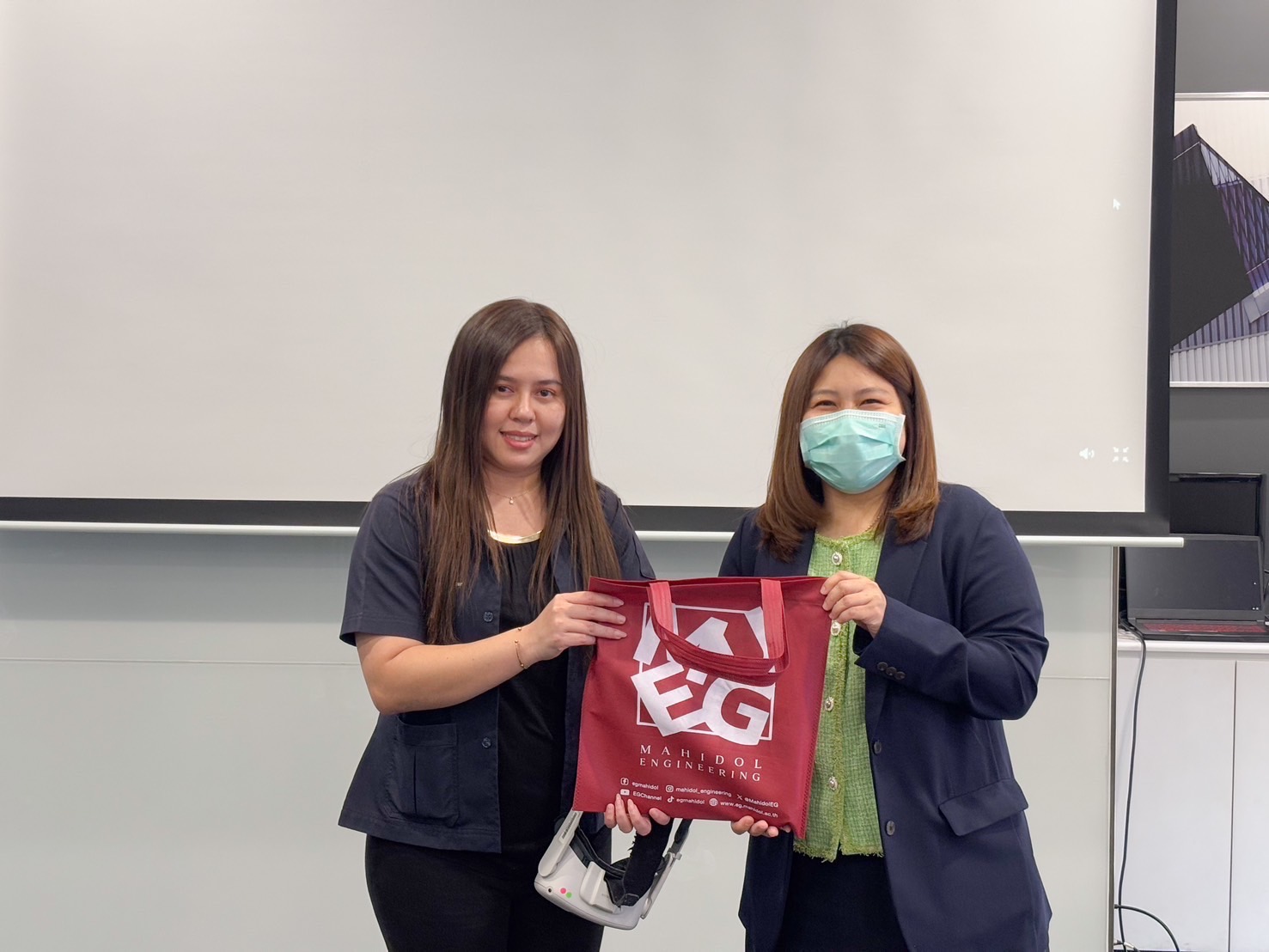 วันที่ 5 กุมภาพันธ์ 2568 งานบ่มเพาะและสนับสนุนการพัฒนานวัตกรรม คณะวิศวกรรมศาสตร์ ร่วมกับหอสมุดและคลังความรู้มหาวิทยาลัยมหิดล จัดจัดกิจกรรม "VR for Innovation & Education" ณ หอสมุดและคลังความรู้มหาวิทยาลัยมหิดล โดยมี ผศ.ดร.พรทิพย์ แก่งอินทร์ รองคณบดีฝ่ายพัฒนาเครือข่ายและองค์กรสัมพันธ์ เป็นผู้กล่าวขอบคุณหอสมุดและคลังความรู้มหาวิทยาลัยมหิดลและมอบของที่ระลึกให้กับวิทยากร โดยกิจกรรมนี้มีวัตถุประสงค์เพื่อส่งเสริมให้ผู้เข้าร่วมกิจกรรมมีความรู้ความเข้าใจเกี่ยวกับเทคโนโลยี VR และเสริมสร้างประสบการณ์ด้านเทคโนโลยี VR ที่กำลังมีบทบาทสำคัญในหลากหลายอุตสาหกรรม นอกจากนี้ ยังเป็นการเปิดโอกาสให้ผู้เข้าร่วมกิจกรรมได้ทดลองใช้เทคโนโลยี VR ผ่านกิจกรรมเชิงปฏิบัติการ