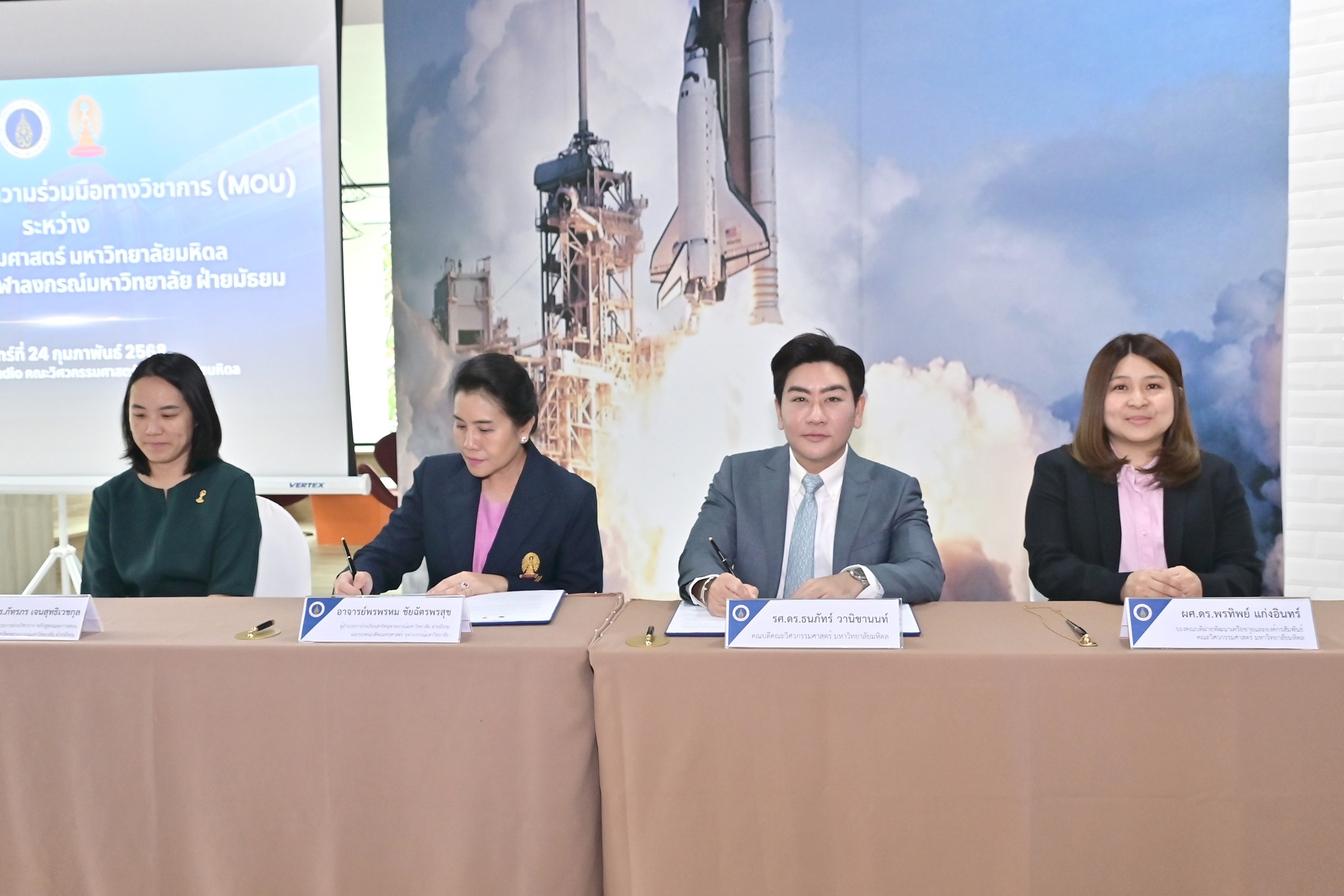 วันที่ 24 กุมภาพันธ์ 2568 รศ.ดร.ธนภัทร์ วานิชานนท์ คณบดีคณะวิศวกรรมศาสตร์ มหาวิทยาลัยมหิดล ลงนามบันทึกข้อตกลงความร่วมมือกับ อาจารย์พรพรหม ชัยฉัตรพรสุข ผู้อำนวยการ โรงเรียนสาธิตจุฬาลงกรณ์มหาวิทยาลัย ฝ่ายมัธยม และรองคณบดีคณะครุศาสตร์ จุฬาลงกรณ์มหาวิทยาลัย โดยมีผู้ช่วยศาสตราจารย์ ดร. พรทิพย์ แก่งอินทร์ รองคณบดีฝ่ายพัฒนาเครือข่ายและองค์กรสัมพันธ์ คณะวิศวกรรมศาสตร์ มหาวิทยาลัยมหิดล และอาจารย์ ดร.ภัทรภร เจนสุทธิเวชกุล รองผู้อำนวยการฝ่ายวิชาการ หลักสูตรและการสอน โรงเรียนสาธิตจุฬาลงกรณ์มหาวิทยาลัย ฝ่ายมัธยม ร่วมเป็นสักขีพยาน พร้อมด้วยผู้บริหาร คณาจารย์ และอาจารย์คณะวิศวกรรมศาสตร์ที่เป็นศิษย์เก่าโรงเรียนสาธิตจุฬาลงกรณ์มหาวิทยาลัย ฝ่ายมัธยม ณ ห้อง Innogineer Studio คณะวิศวกรรมศาสตร์ มหาวิทยาลัยมหิดล