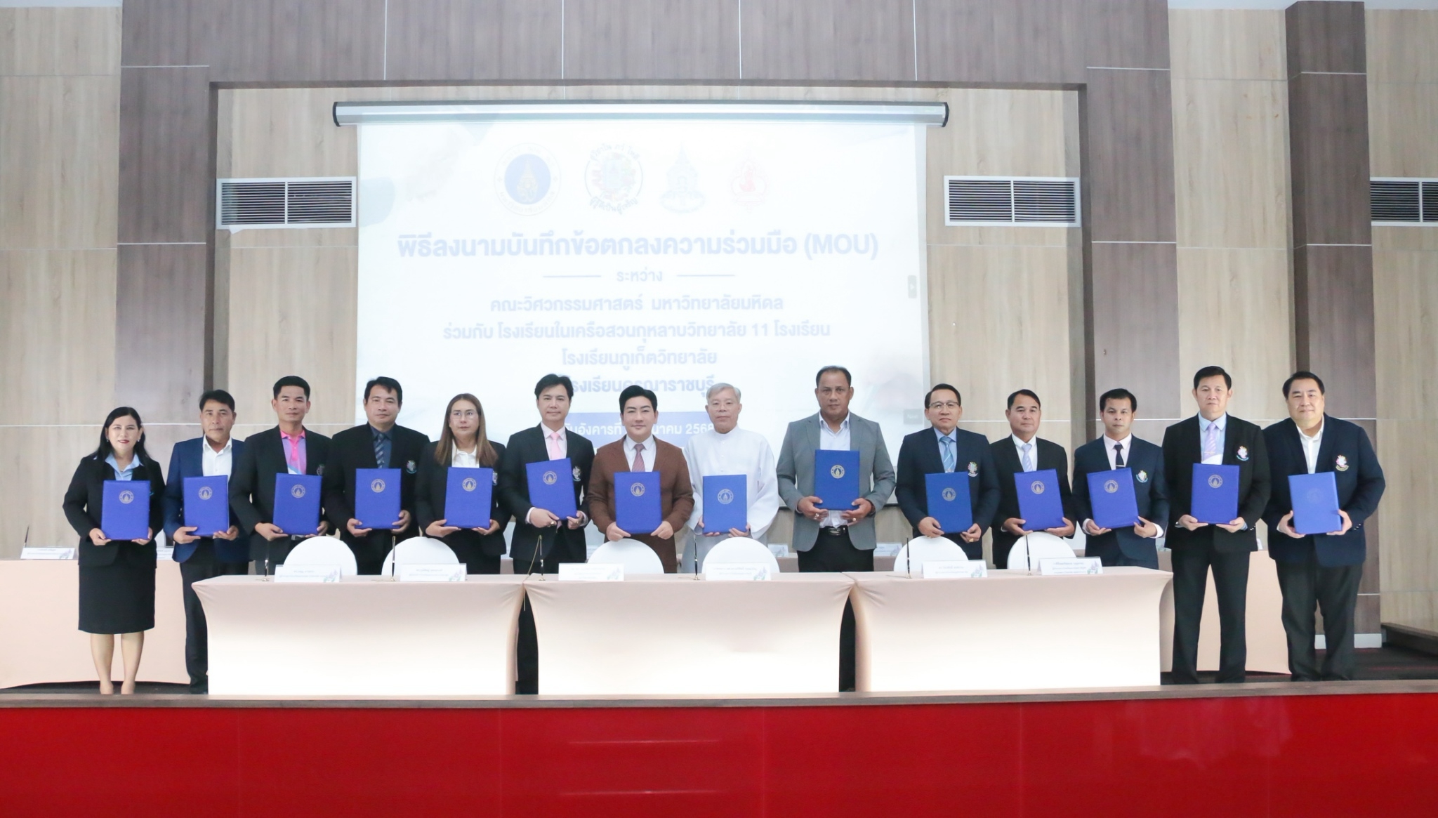 คณะวิศวกรรมศาสตร์ มหาวิทยาลัยมหิดล นำโดย รศ.ดร.ธนภัทร์ วานิชานนท์ คณบดี เป็นประธานเปิดงาน และร่วมลงนามบันทึกข้อตกลงความร่วมมือทางวิชาการ (MoU) ระหว่าง คณะวิศวกรรมศาสตร์ มหาวิทยาลัยมหิดล กับ โรงเรียนในเครือสวนกุหลาบวิทยาลัย 11 แห่ง นำโดย ดร.ภูมิสิษฐ์ สุคนธวงศ์ ผู้อำนวยการโรงเรียน พร้อมด้วยบาทหลวงเสนอ ดำเนินสดวก อธิการโรงเรียนดรุณาราชบุรี และ ดร.วัชรศักดิ์ สงค์ปาน ผู้อำนวยการโรงเรียนภูเก็ตวิทยาลัย เป็นผู้ร่วมลงนาม นับเป็นความร่วมมือของ 14 หน่วยงานการศึกษาชั้นนำของประเทศ ทั้งทางด้านวิชาการและการวิจัยพัฒนา โดยมี ดร.ญาสุมินทร์ ไทยสมบูรณ์ ผู้อำนวยการศูนย์วิทยาศาสตร์และวัฒนธรรมไทย-จีนแห่งมหาวิทยาลัยวิศวกรรมศาสตร์ฮาร์บิน สาธารณรัฐประชาชนจีน และ ผศ.ดร.ภัทรพร โปสกนิษฐกุล รองคณบดีฝ่ายวิเทศสัมพันธ์และกิจการพิเศษ คณะวิศวกรรมศาสตร์ มหาวิทยาลัยมหิดล เป็นผู้ประสานเชื่อมความร่วมมือ และร่วมเป็นสักขีพยานในการลงนามบันทึกข้อตกลงความร่วมมือ ซึ่งจะช่วยปูทางส่งเสริมศักยภาพของเยาวชนตั้งแต่ระดับมัธยมศึกษา ไปสู่ระดับอุดมศึกษาได้อย่างต่อเนื่อง และยกระดับการศึกษาไทยสู่ระดับสากล
