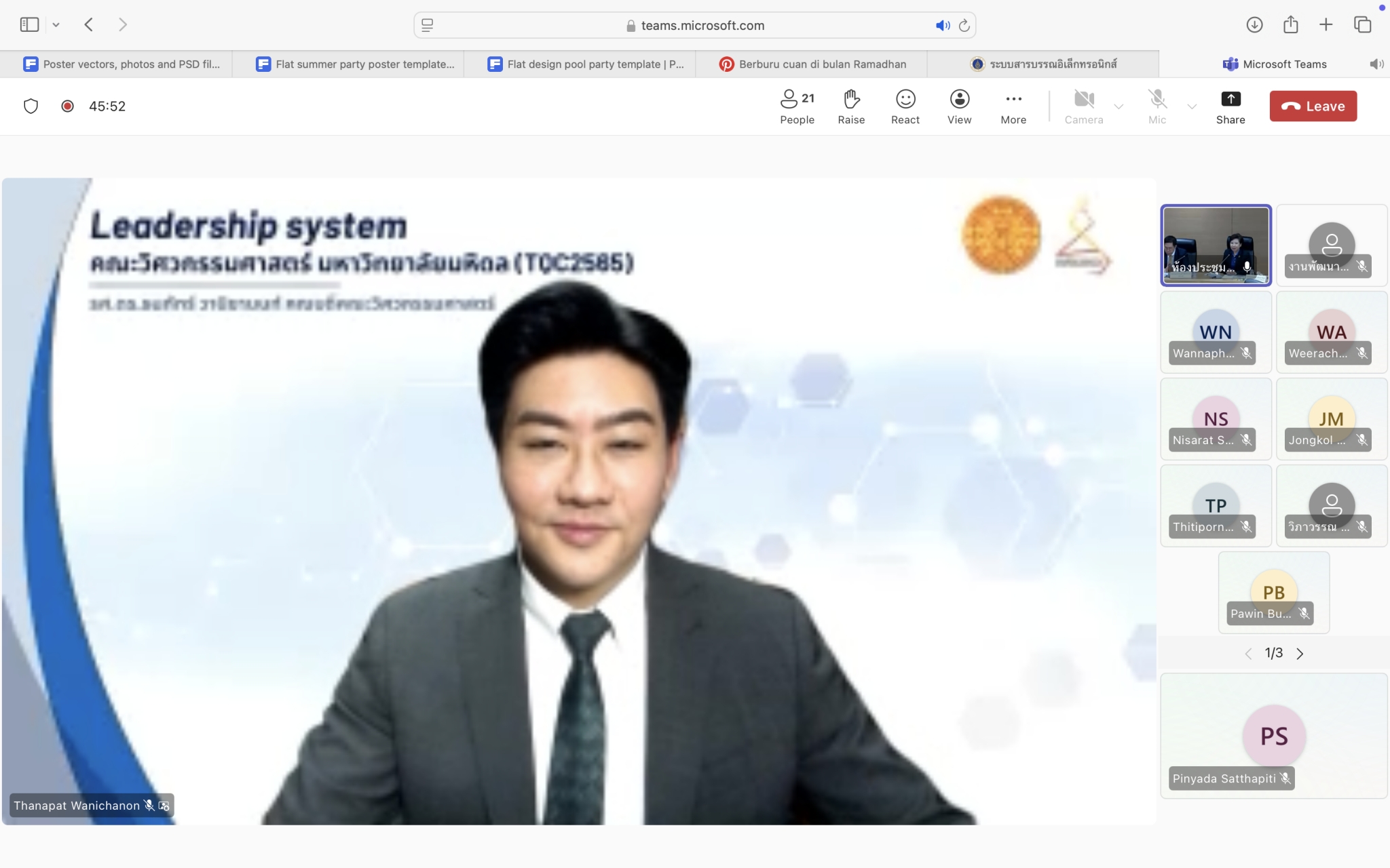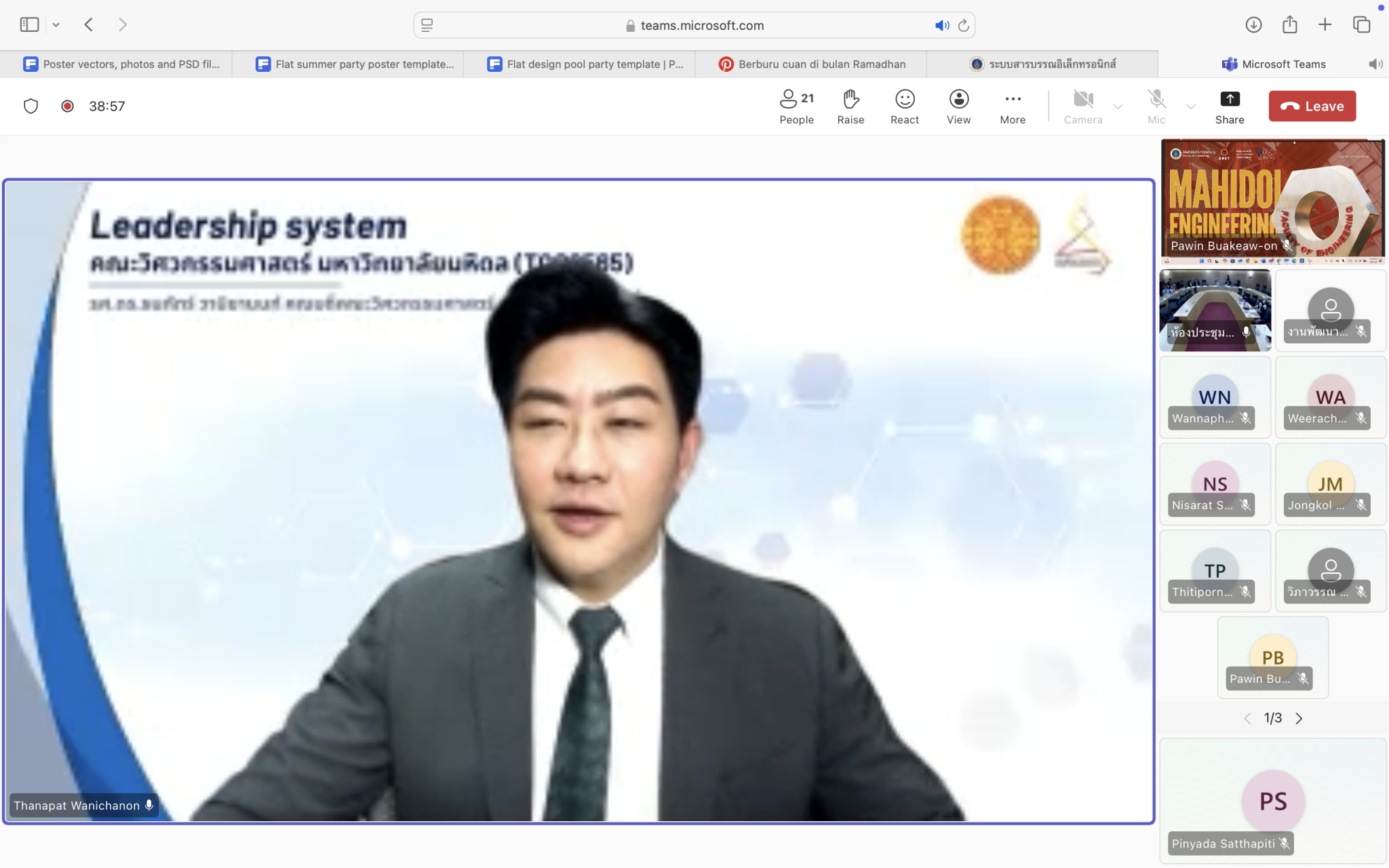 วันที่ 9 กรกฎาคม 2568 รองศาสตราจารย์ ดร.ธนภัทร์ วานิชานนท์ คณบดีคณะวิศวกรรมศาสตร์ มหาวิทยาลัยมหิดล ได้รับเกียรติเป็นวิทยากรบรรยายในหัวข้อ "ประสบการณ์การผลักดันองค์กร Leadership System คณะวิศวกรรมศาสตร์ มหาวิทยาลัยมหิดล" ภายใต้โครงการประชุมเชิงปฏิบัติ การหลักสูตร Leadership System ณ ห้องประชุมวชิรพงศ์ หมอมงคล อาคารโดมบริหาร ชั้น 3 มหาวิทยาลัยธรรมศาสตร์ ศูนย์รังสิต