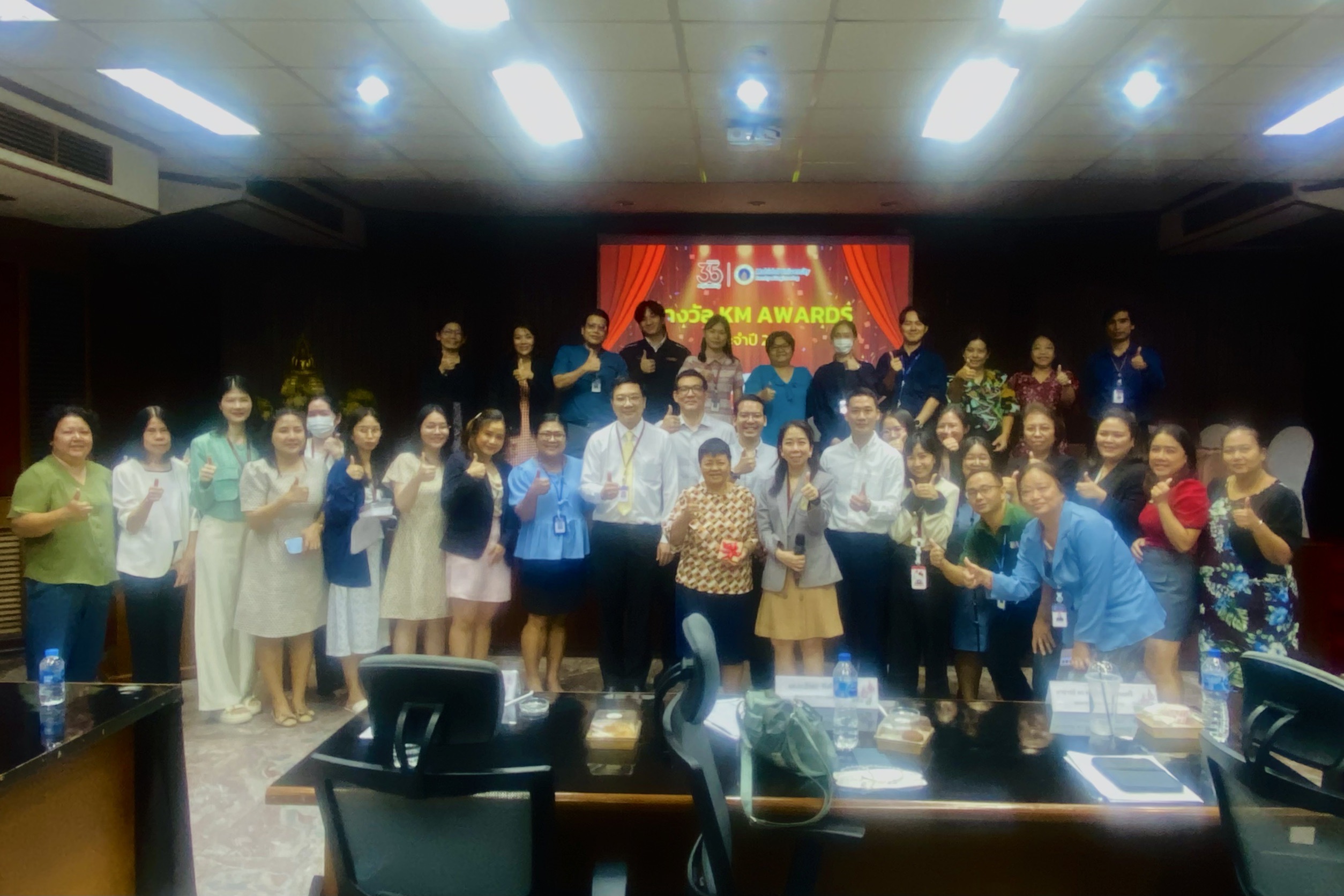ภายหลังการนำเสนอผลงาน มีพิธีมอบรางวัล KM Awards ประจำปี 2568 เพื่อเชิดชูเกียรติและสร้างกำลังใจแก่บุคลากร โดยรางวัลผลงานยอดเยี่ยม ที่ได้รับรางวัลชนะเลิศ รับเงินรางวัล 3,000 บาท ได้แก่ ผลงาน การประยุกต์ใช้ปัญญาประดิษฐ์เพื่อเพิ่มประสิทธิภาพในการจัดทำรายงานการประชุม นำเสนอโดย ทีมงานบริหารงานทั่วไป คุณสายฝน โพธิ์ไพจิตร คุณเรไร หาญวงศ์ และคุณนภาพร วิรอด รางวัลรองชนะเลิศ รับเงินรางวัล 1,000 บาท ได้แก่ ผลงาน การพัฒนาโปรแกรมสำหรับจัดทำรายงานเงินคงเหลือประจำวันและสมุดรายวันทั่วไป นำเสนอโดย คุณอรุณี กอสวัสดิ์พัฒน์ คุณอรนุชา อภิบุญญาวรกุล คุณวรจรรย์ ไวยวาศ และคุณพิทวัส ทิวทิพย์สกุล รางวัลชมเชย 3 รางวัล รับเงินรางวัลละ 500 บาท ได้แก่ ผลงาน น้องใจเย็น... เพราะทุกเรื่องของพนักงาน คือเรื่องของเรา นำเสนอโดย คุณศิรินทิพย์ ฤทธิศักดิ์ คุณมนัสนันท์ หัตถา คุณสโรชา สุทธิวงศ์ และคุณพิทวัส ทิวทิพย์สกุล ผลงาน การพัฒนาโปรแกรมประยุกต์บนเว็บสำหรับงานคลังสารเคมีด้วยปัญญาประดิษฐ์และระบบอัตโนมัติ (AI and Automation) นำเสนอโดย คุณชลธร กินแก้ว คุณเพ็ญพิชชา แจ่มจันทร์ และคุณภานุวัฒน์ โขดานุ และผลงาน TCAS Dashboard การพัฒนาระบบวิเคราะห์คุณภาพนักศึกษาเพื่อวางแผนเชิงกลยุทธ์ด้านการรับเข้า นำเสนอโดย คุณนัทธ์หทัย แก้วงาม คุณปธิตา เจริญธนะจินดา คุณชาลิสา รัตนวงศ์ และคุณพรชิตา ภิรมย์เมือง