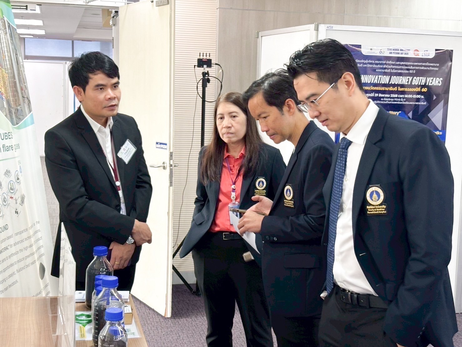 วันที่ 28 – 29 สิงหาคม 2568 คณะวิศวกรรมศาสตร์ มหาวิทยาลัยมหิดล นำโดย ผู้ช่วยศาสตราจารย์ ดร.พรทิพย์ แก่งอินทร์ รองคณบดีฝ่ายบ่มเพาะนวัตกรรมและศิษย์เก่าสัมพันธ์ ร่วมออกบูธแสดงนวัตกรรมทางการแพทย์ ในงาน มหกรรมคุณภาพและนวัตกรรม ครั้งที่ 32 ณ คณะแพทยศาสตร์โรงพยาบาลรามาธิบดี มหาวิทยาลัยมหิดล ภายใต้แนวคิด “Ramathibodi raises the level of Quality Development and Transformative by AI” ภายในงาน คณะวิศวกรรมศาสตร์ได้นำนวัตกรรมจากห้องปฏิบัติการภาควิชาต่าง ๆ มาร่วมจัดแสดง อาทิ