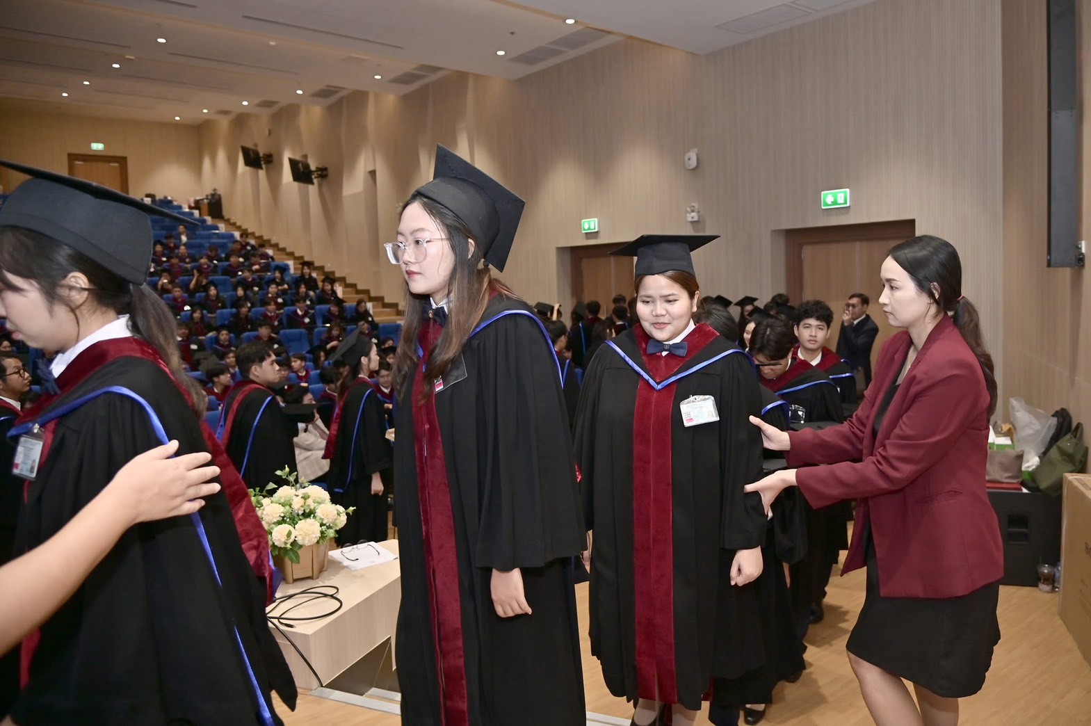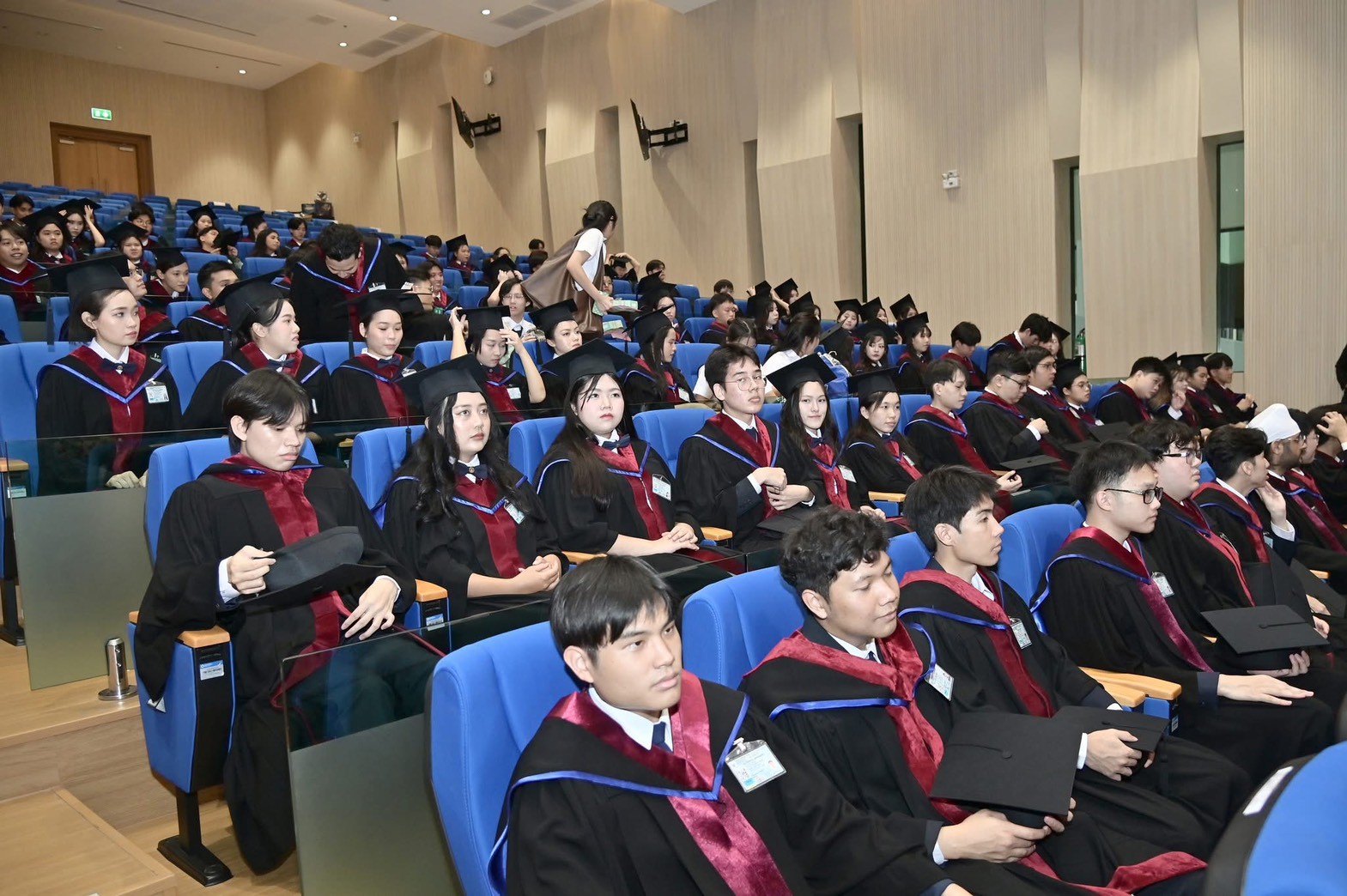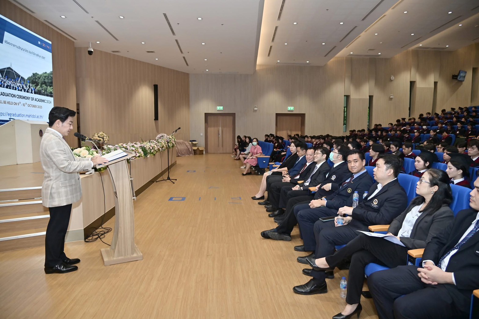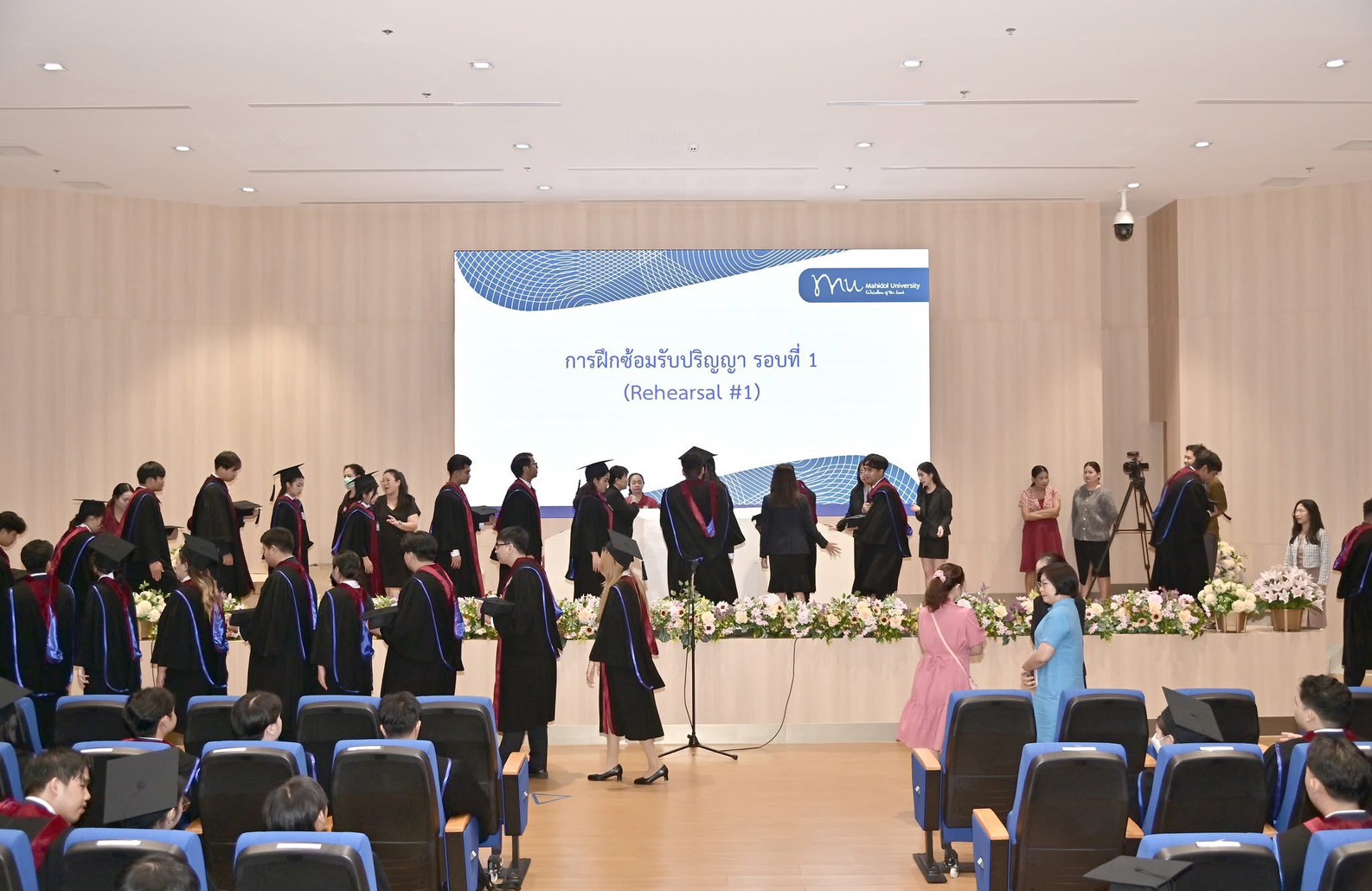 วันที่ 3 ตุลาคม 2568 คณะวิศวกรรมศาสตร์ มหาวิทยาลัยมหิดล จัดการฝึกซ้อมและพิธีแสดงความยินดีกับบัณฑิตระดับปริญญาตรี ประจำปีการศึกษา 2567 ณ ห้องประชุม ศ.นพ.ชัชวาล โอสถานนท์ ภายในงานมีคณาจารย์ ผู้บริหาร และบัณฑิตเข้าร่วมอย่างพร้อมเพรียง โดยบัณฑิตทุกคนแต่งกายด้วยชุดครุย หมวก และรองเท้าอย่างเป็นทางการให้เสมือนวันพิธีพระราชทานปริญญาบัตรจริง