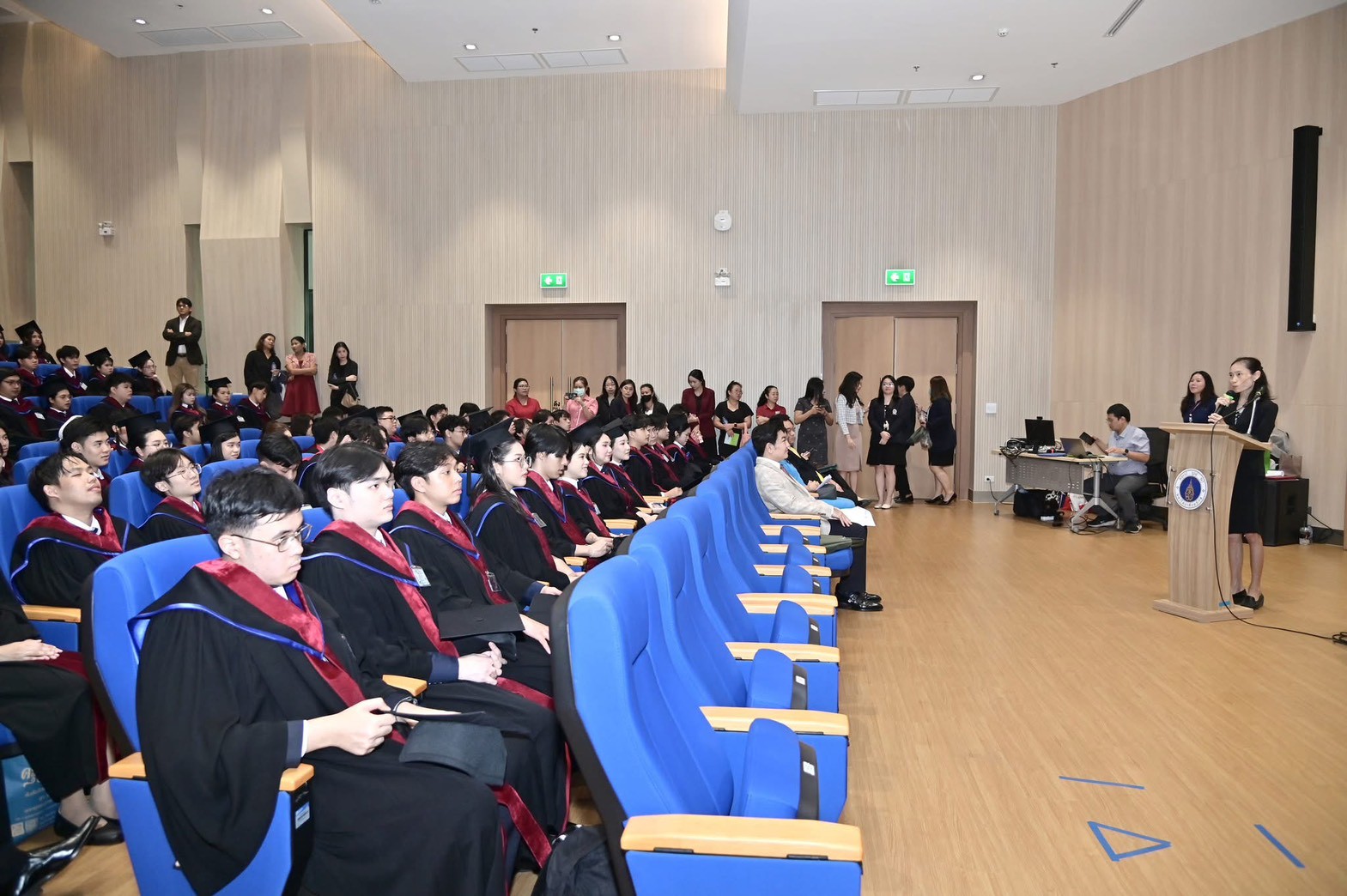 และในพิธีแสดงความยินดีแก่บัณฑิต ได้รับเกียรติจาก รองศาสตราจารย์ ดร.ธนภัทร์ วานิชานนท์ คณบดีคณะวิศวกรรมศาสตร์ กล่าวแสดงความยินดีและอวยพรแก่บัณฑิต พร้อมด้วย ผู้ช่วยศาสตราจารย์ ดร.วศพร เตชะพีรพานิช รองคณบดีฝ่ายวิชาการและกิจการนักศึกษา กล่าวถึงวัตถุประสงค์ของการจัดงานและให้โอวาทแก่บัณฑิต รวมถึงหัวหน้าภาควิชาทั้ง 7 ภาควิชาที่ร่วมส่งมอบคำอวยพรและมอบของที่ระลึกเพื่อเป็นขวัญกำลังใจ