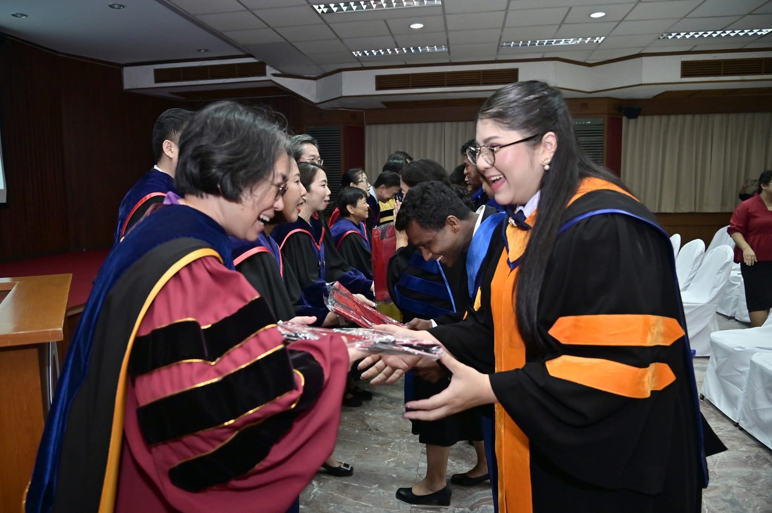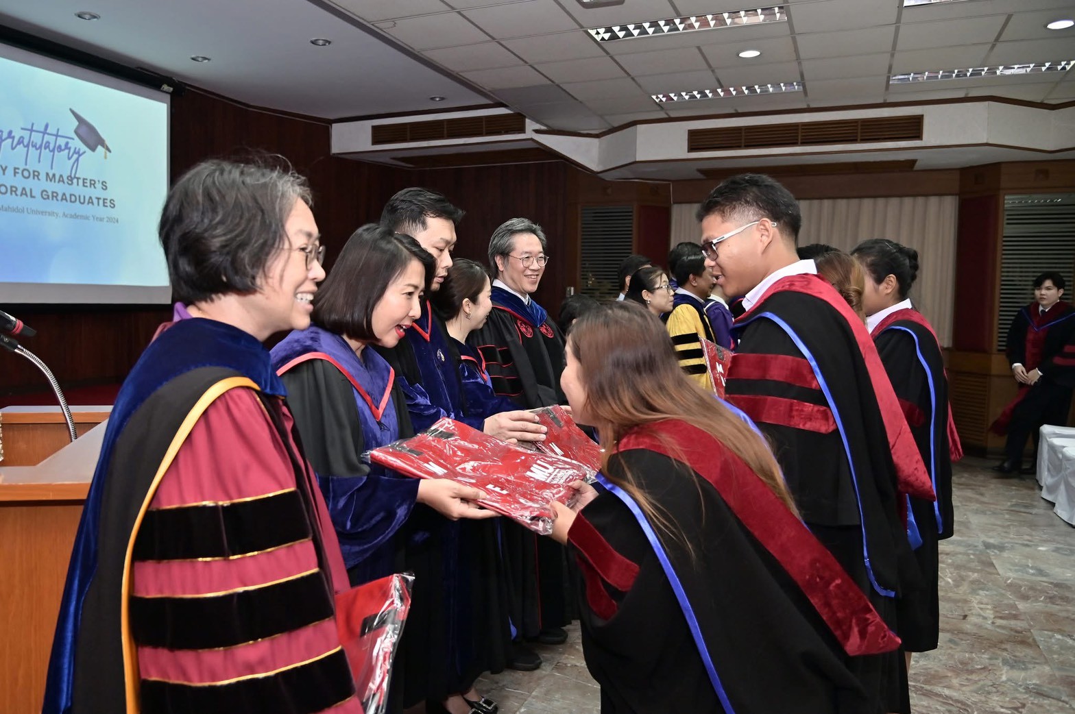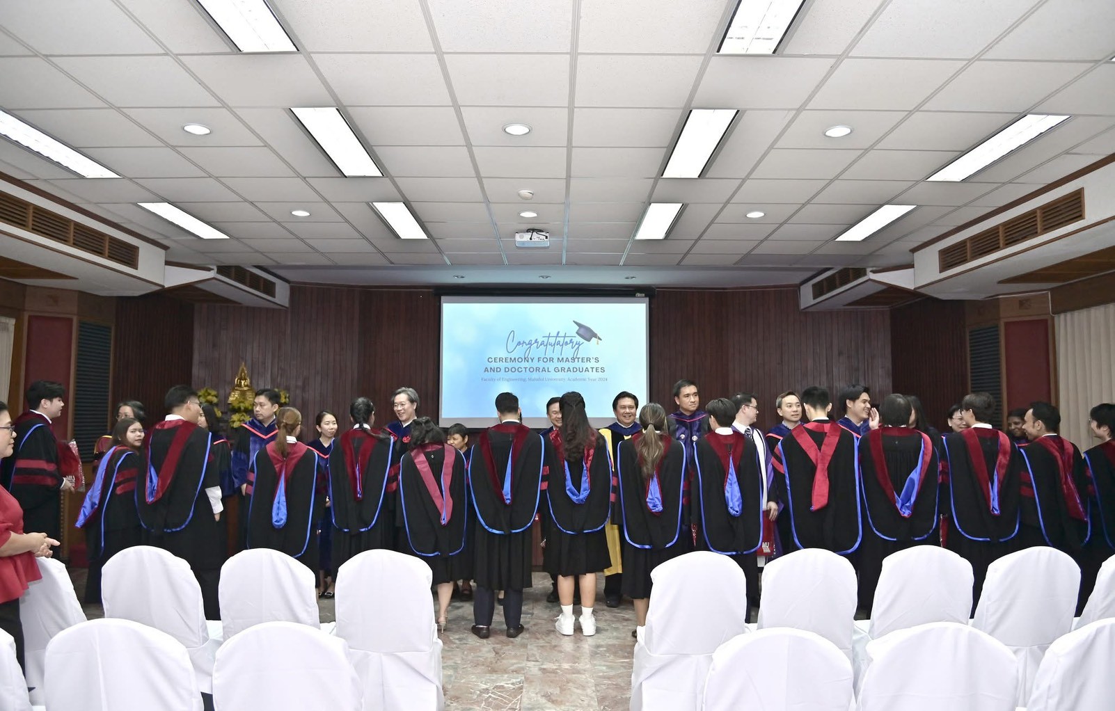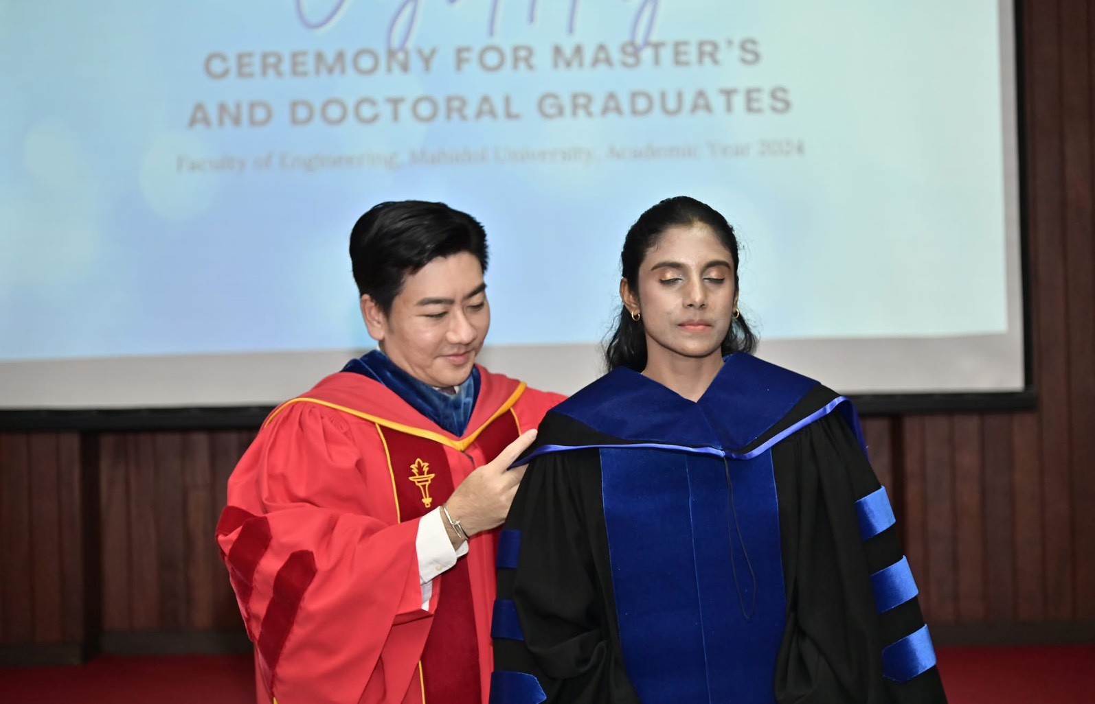 วันที่ 3 ตุลาคม 2568 คณะวิศวกรรมศาสตร์ มหาวิทยาลัยมหิดล จัดพิธีแสดงความยินดีกับบัณฑิตระดับปริญญาโทและปริญญาเอก ประจำปีการศึกษา 2567 ณ ห้องประชุม R114 ชั้น 1 อาคาร 1 โดยมีคณะผู้บริหาร คณาจารย์ และแขกผู้มีเกียรติ เข้าร่วมแสดงความยินดีต่อความสำเร็จครั้งสำคัญของบัณฑิต พร้อมบรรยากาศที่เต็มไปด้วยความภาคภูมิใจและอบอุ่น