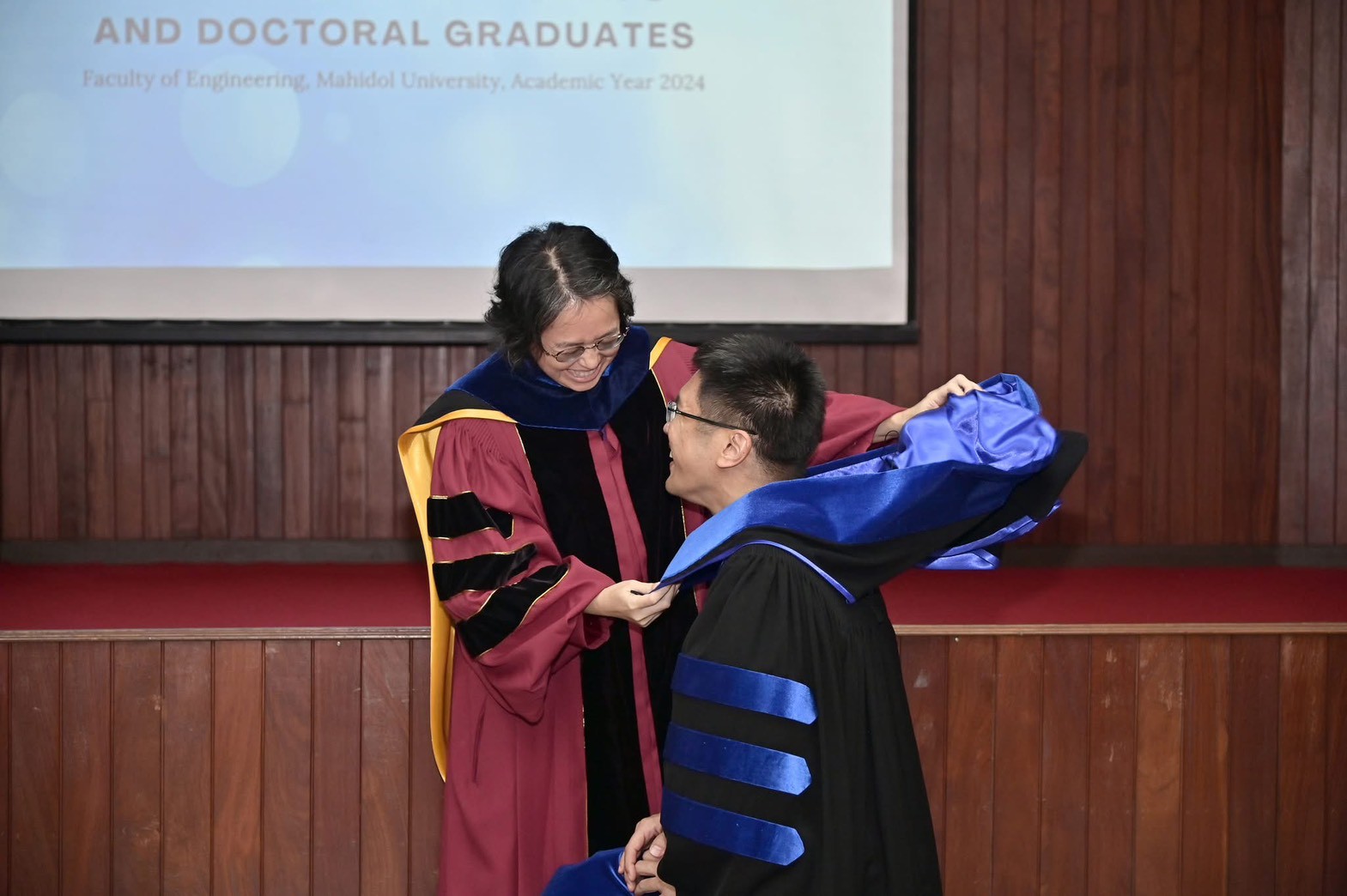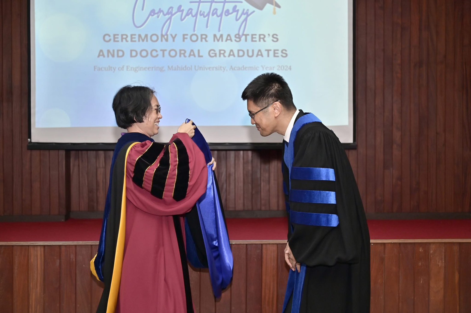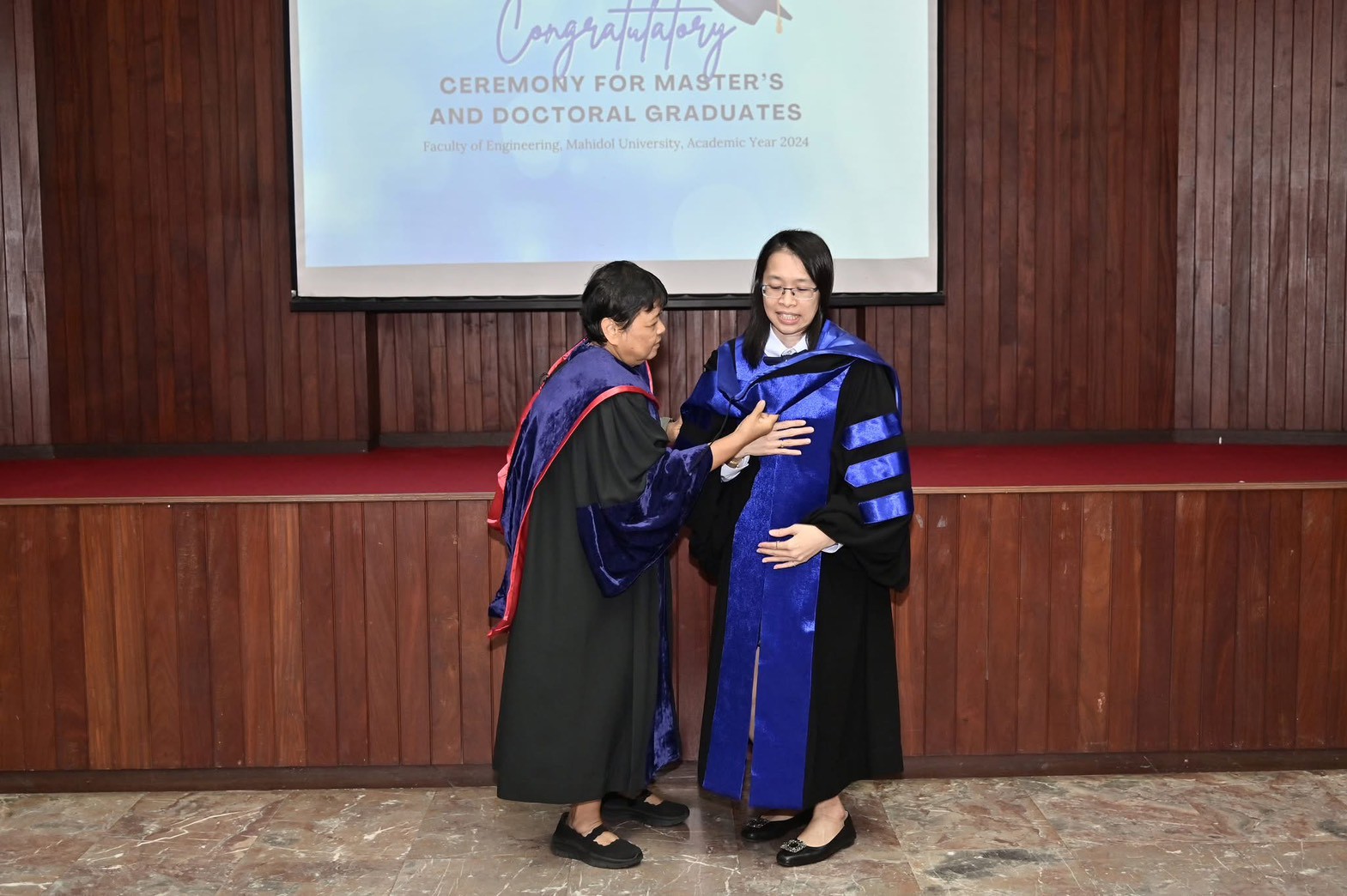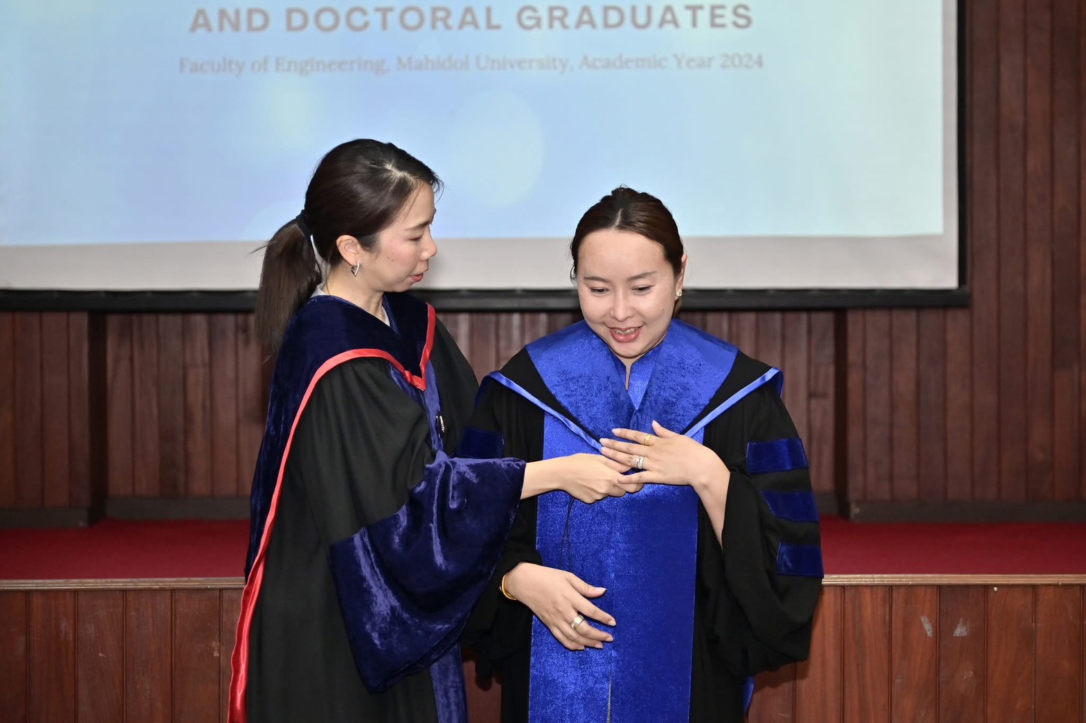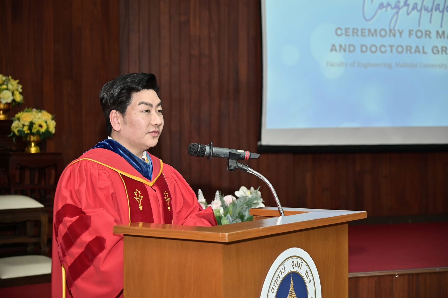 ในโอกาสนี้ ตัวแทนบัณฑิตทั้งระดับปริญญาโทและปริญญาเอกได้ขึ้นกล่าวแสดงความรู้สึก ซึ่งต่างถ่ายทอดประสบการณ์ ความประทับใจ และความตั้งใจที่จะนำความรู้ไปสร้างประโยชน์แก่สังคมและในช่วงท้ายของพิธี มีการมอบฮู้ดให้กับบัณฑิตระดับปริญญาเอก รวมถึงการมอบของที่ระลึกแด่บัณฑิตทุกคนเพื่อเป็นเครื่องหมายแห่งความภาคภูมิใจ บรรยากาศเต็มไปด้วยรอยยิ้มและความสุขใจ พร้อมคำอวยพรจากคณะผู้บริหารและคณาจารย์คณะวิศวกรรมศาสตร์ มหาวิทยาลัยมหิดล