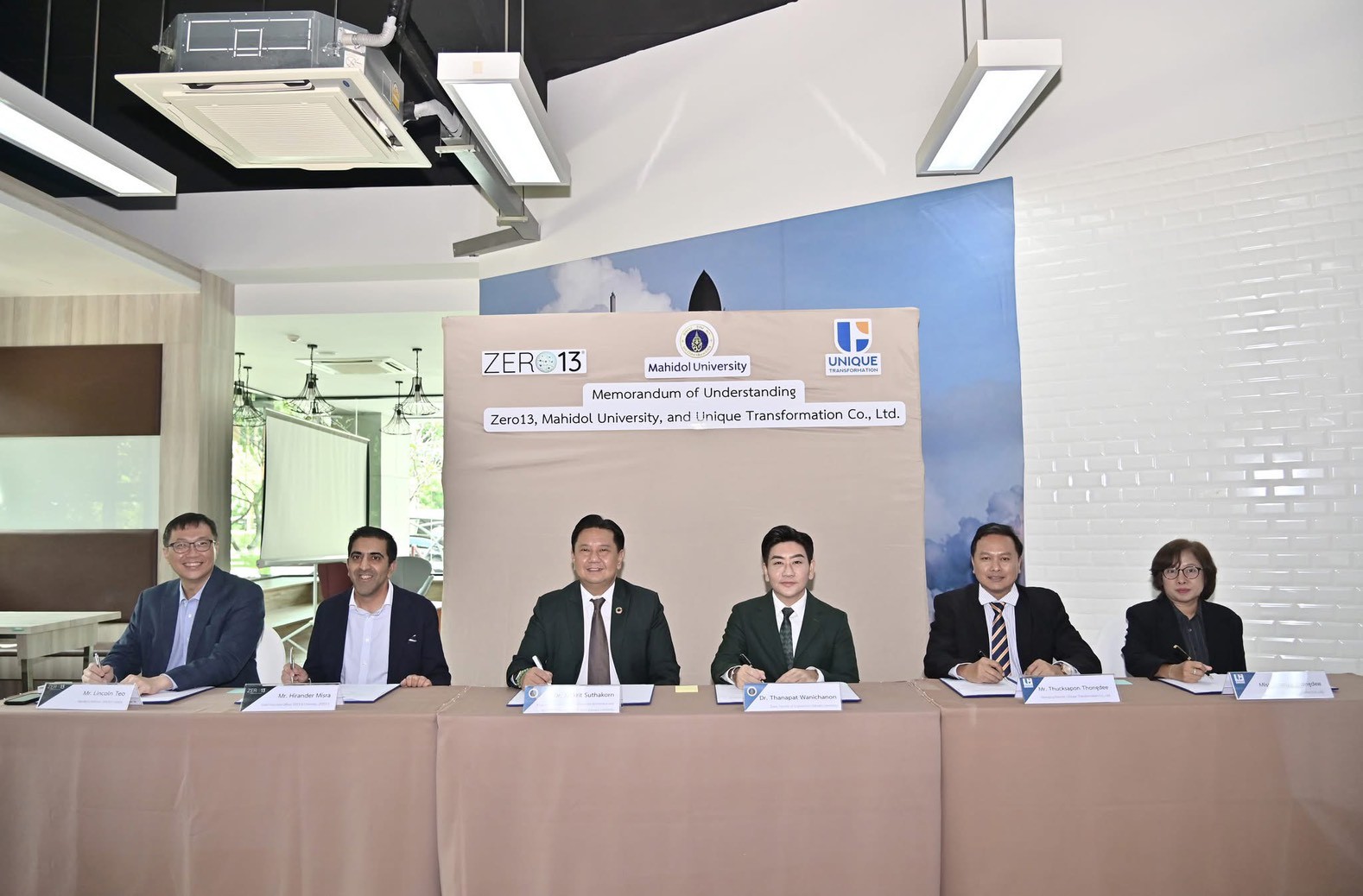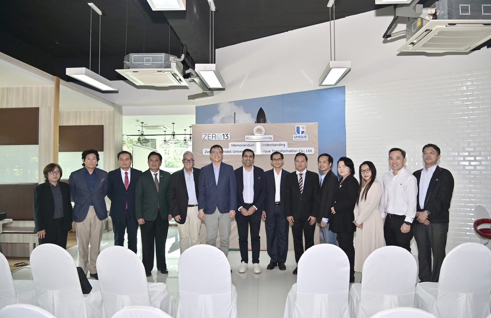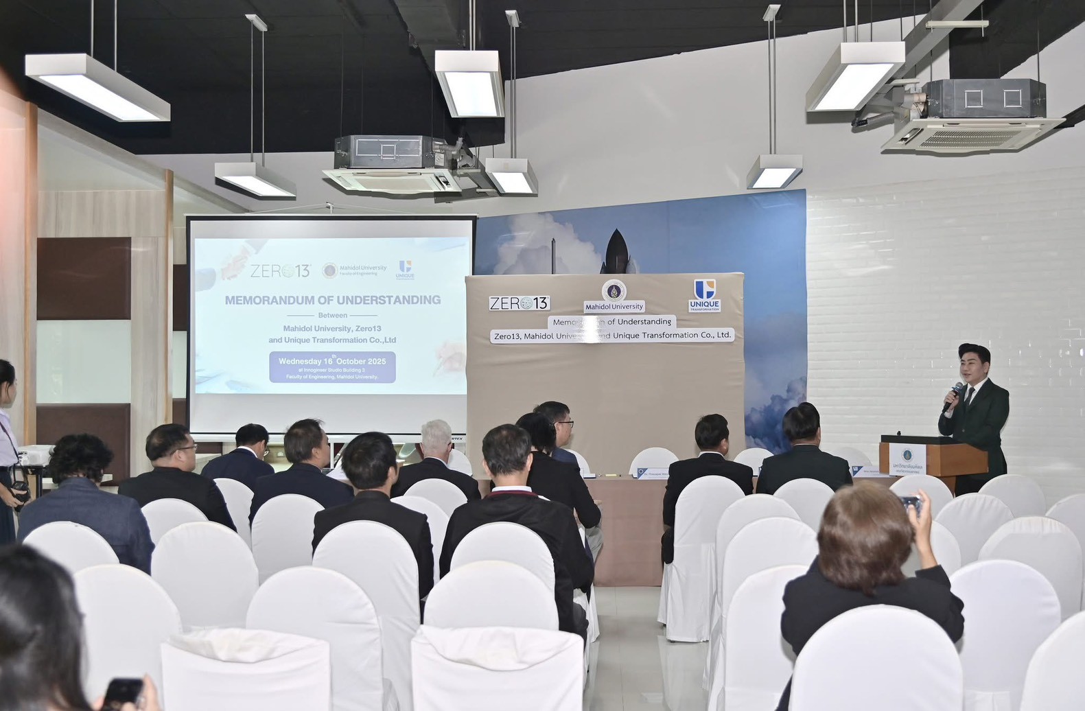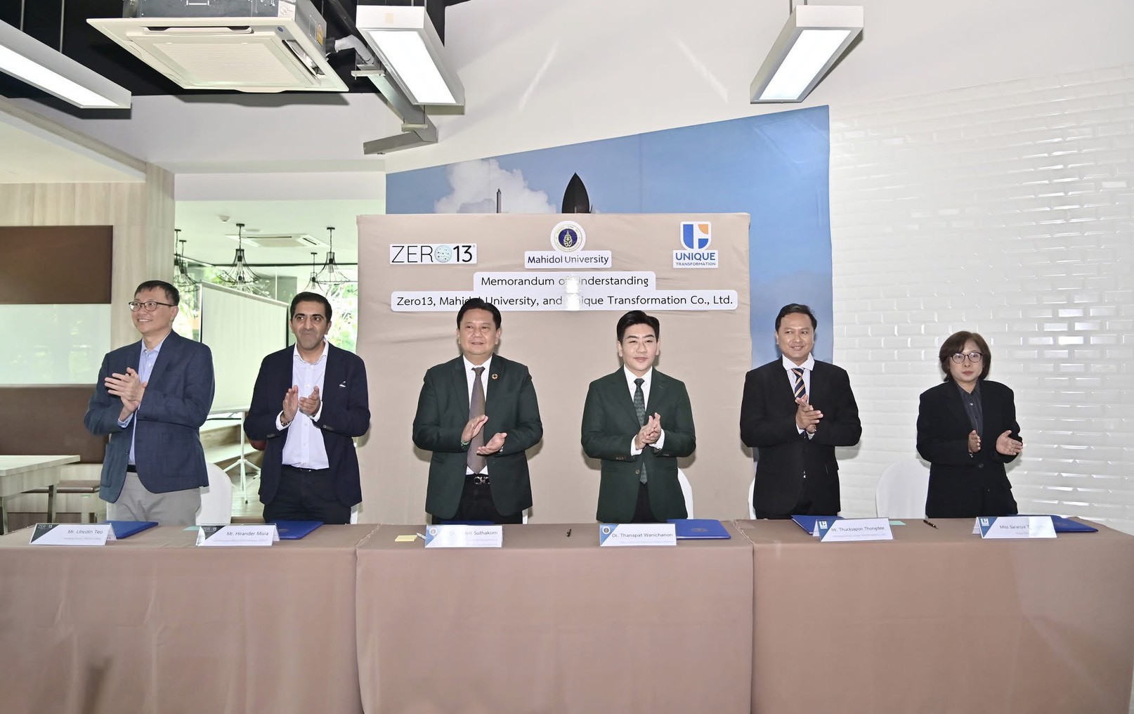 วันที่ 16 ตุลาคม 2568 คณะวิศวกรรมศาสตร์ มหาวิทยาลัยมหิดล โดยศูนย์เครือข่ายวิจัยประยุกต์ทางเทคโนโลยีหุ่นยนต์และชีวการแพทย์ (BART LAB) เดินหน้าสร้างความร่วมมือด้านสิ่งแวดล้อมอย่างยั่งยืน ร่วมกับ ZERO13 และ Unique Transformation Co., Ltd. เพื่อขับเคลื่อนแนวคิด “Zero Carbon” สู่การปฏิบัติอย่างเป็นรูปธรรม โดยมีเป้าหมายสำคัญในการพัฒนาเทคโนโลยีและนวัตกรรมเพื่อลดการปล่อยคาร์บอนและมุ่งสู่สังคมคาร์บอนต่ำในอนาคต