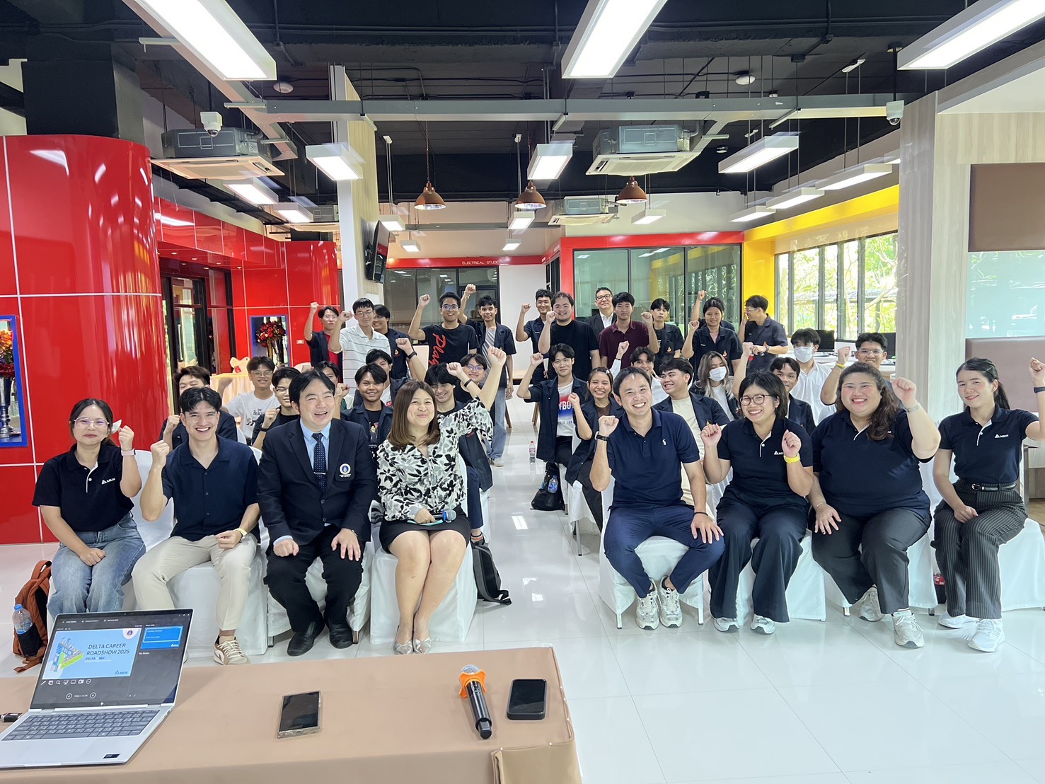 กิจกรรมประกอบด้วยการบรรยายแนะนำบริษัทและแนวทางการสมัครงานในตำแหน่งต่าง ๆ รวมถึงช่วงแบ่งปันประสบการณ์จากศิษย์เก่าคณะวิศวกรรมศาสตร์ มหาวิทยาลัยมหิดล ที่ปัจจุบันทำงานกับบริษัทเดลต้า ได้แก่ คุณศศิธร เจริญเมือง ตำแหน่ง SMT Senior Engineer ศิษย์เก่ารุ่นที่ 30 และ คุณสรสิช วรรณจักร ตำแหน่ง R&D Test Engineer ศิษย์เก่ารุ่นที่ 27 ซึ่งได้ถ่ายทอดมุมมองการทำงานจริงและแรงบันดาลใจให้กับนักศึกษารุ่นน้อง กิจกรรม “DELTA CAREER ROADSHOW 2025” นับเป็นอีกหนึ่งโอกาสสำคัญที่คณะวิศวกรรมศาสตร์ มหาวิทยาลัยมหิดล มุ่งส่งเสริมให้นักศึกษาได้เตรียมความพร้อมสู่โลกอาชีพ และเชื่อมโยงเครือข่ายความร่วมมือระหว่างมหาวิทยาลัยกับภาคอุตสาหกรรม เพื่อพัฒนาบัณฑิตวิศวกรที่มีศักยภาพสู่ตลาดแรงงานในอนาคต