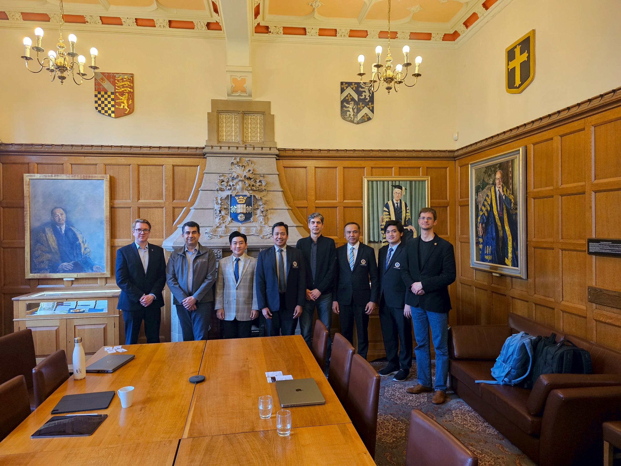 วันที่ 24 ตุลาคม 2568 รองศาสตราจารย์ ดร.ธนภัทร์ วานิชานนท์ คณบดีคณะวิศวกรรมศาสตร์ พร้อมด้วย ผู้ช่วยศาสตราจารย์ ดร.นริศ หนูหอม ผู้ช่วยอธิการบดีฝ่ายสารสนเทศ และดิจิทัลทรานส์ฟอร์เมชัน ผู้ช่วยศาสตราจารย์ ดร. กลกรณ์ วงศ์ภาติกะเสรี หัวหน้าภาควิชาวิศวกรรมคอมพิวเตอร์ และ ศาสตราจารย์ ดร.ไพศาล มุณีสว่าง อาจารย์ประจำภาควิชาวิศวกรรมคอมพิวเตอร์ ร่วมลงนามบันทึกข้อตกลงความร่วมมือ (Memorandum of Understanding: MoU) ร่วมกับ Professor Neil Sims, Director of One University, Faculty of Engineering, The University of Sheffield ประเทศสหราชอาณาจักร เพื่อสร้างความร่วมมือทางวิชาการ วิจัย และนวัตกรรมด้านวิศวกรรมในระดับนานาชาติ