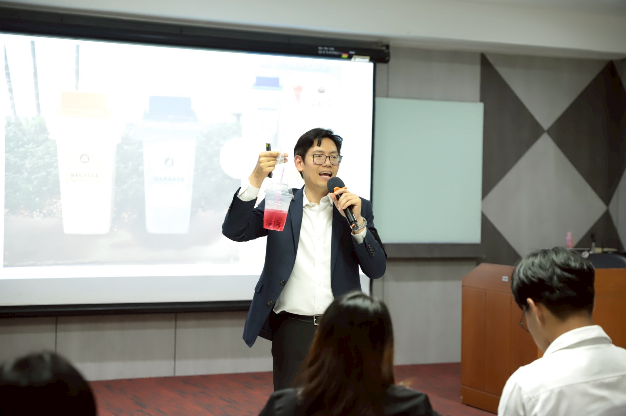 ภายในงานผู้เข้าร่วมได้เรียนรู้หลักการคัดแยกขยะตามแนวทาง 3R (Reduce, Reuse, Recycle) และแนวทางการจัดการขยะให้เป็นศูนย์ ผ่านการบรรยายและอบรมเชิงปฏิบัติการ (Workshop) โดยมีการทำแบบทดสอบก่อนและหลังการอบรม เพื่อประเมินผลความรู้และความเข้าใจของผู้เข้าร่วมอย่างเป็นระบบ บรรยากาศเป็นไปอย่างสนุกสนานและเต็มไปด้วยสาระความรู้ และภายในงานผู้เข้าร่วมได้เรียนรู้หลักการคัดแยกขยะตามแนวทาง 3R (Reduce, Reuse, Recycle) และแนวทางการจัดการขยะให้เป็นศูนย์ ผ่านการบรรยายและอบรมเชิงปฏิบัติการ (Workshop) โดยมีการทำแบบทดสอบก่อนและหลังการอบรม เพื่อประเมินผลความรู้และความเข้าใจของผู้เข้าร่วมอย่างเป็นระบบ บรรยากาศเป็นไปอย่างสนุกสนานและเต็มไปด้วยสาระความรู้ และในวันเดียวกัน ช่วงเวลา 14.45 น. ณ ห้องเรียน Active Learning R-228 ยังมีการจัดอบรมให้ความรู้เรื่องการลดและคัดแยกขยะตามหลักการ 3R และการจัดการขยะให้เป็นศูนย์ให้กับกลุ่มแม่บ้าน พ่อบ้าน และพนักงานทำความสะอาดของคณะฯ อีกด้วย