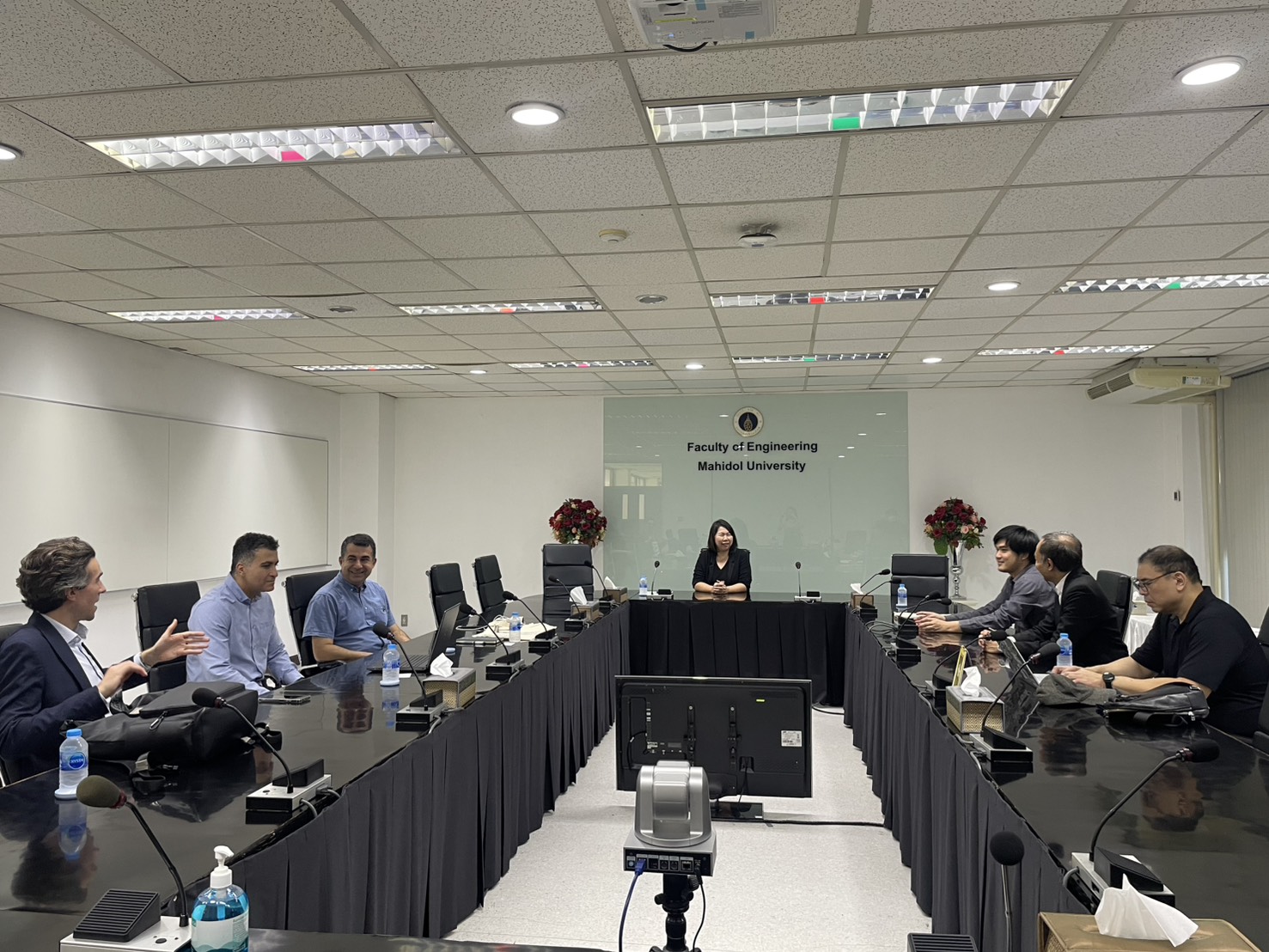 ระหว่างวันที่ 11 – 12 พฤศจิกายน 2568 คณะวิศวกรรมศาสตร์ มหาวิทยาลัยมหิดล นำโดย รองศาสตราจารย์ ดร.เบญจพร เลิศอนันตวงศ์ รองคณบดีฝ่ายวิจัยและบริการวิชาการ พร้อมด้วยคณาจารย์จากภาควิชาวิศวกรรมคอมพิวเตอร์ ได้แก่ ผู้ช่วยศาสตราจารย์ ดร.กลกรณ์ วงศ์ภาติกะเสรี หัวหน้าภาควิชาวิศวกรรมคอมพิวเตอร์ ศาสตราจารย์ ดร. ไพศาล มุณีสว่าง และ ดร. กรินทร์ สุมังคะโยธิน ให้การต้อนรับคณะผู้แทนจาก University of Sheffield สหราชอาณาจักร ประกอบด้วย Prof. Mo Zandi, Dr. Payam Soulatiantork, Mr. Vaughan McKee และ Miss Jessie Teo เพื่อแลกเปลี่ยนองค์ความรู้และพัฒนาความร่วมมือทางวิชาการ ณ ห้องประชุม R210 ชั้น 2 อาคาร 1 คณะวิศวกรรมศาสตร์ มหาวิทยาลัยมหิดล