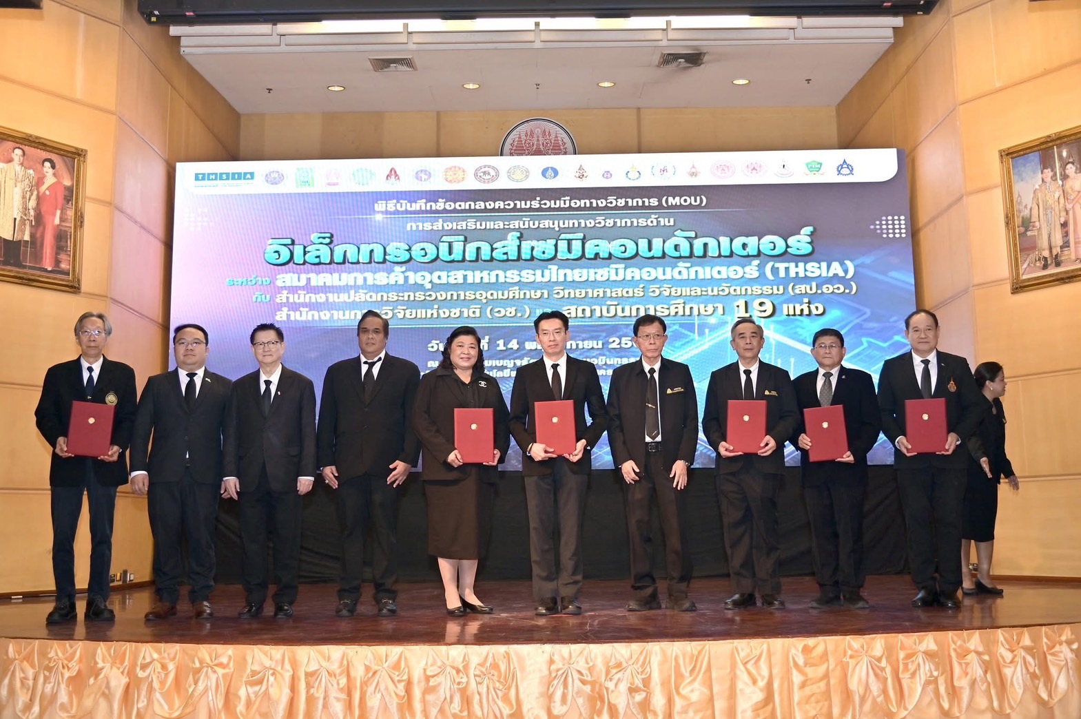 ในพิธีลงนามได้รับเกียรติจาก ศาสตราจารย์ ดร.ธีรวุฒิ บุณยโสภณ นายกสภา มหาวิทยาลัยเทคโนโลยีพระจอมเกล้าพระนครเหนือ (มจพ.) กล่าวต้อนรับผู้ร่วมงาน พร้อมด้วย คุณวิรัตน์ ศรีอมรกิจกุล นายกสมาคมการค้าอุตสาหกรรมไทยเซมิคอนดักเตอร์ กล่าวขอบคุณ และก่อนเริ่มพิธีลงนาม ศาสตราจารย์ ดร.ศุภชัย ปทุมนากุล ปลัดกระทรวงการอุดมศึกษา วิทยาศาสตร์ วิจัยและนวัตกรรม ได้ขึ้นกล่าวถึงความสำคัญของความร่วมมือในอุตสาหกรรมไมโครอิเล็กทรอนิกส์ ตลอดจนเป็นประธานในพิธีงนามในบันทึกข้อตกลงความร่วมมือฯ ภายในพิธีลงนามฯ ยังได้รับเกียรติจาก ดร.วิภารัตน์ ดีอ่อง ผู้อำนวยการสำนักงานการวิจัยแห่งชาติ ลงนามร่วมกับ ผู้บริหาร 19 สถาบันการศึกษา