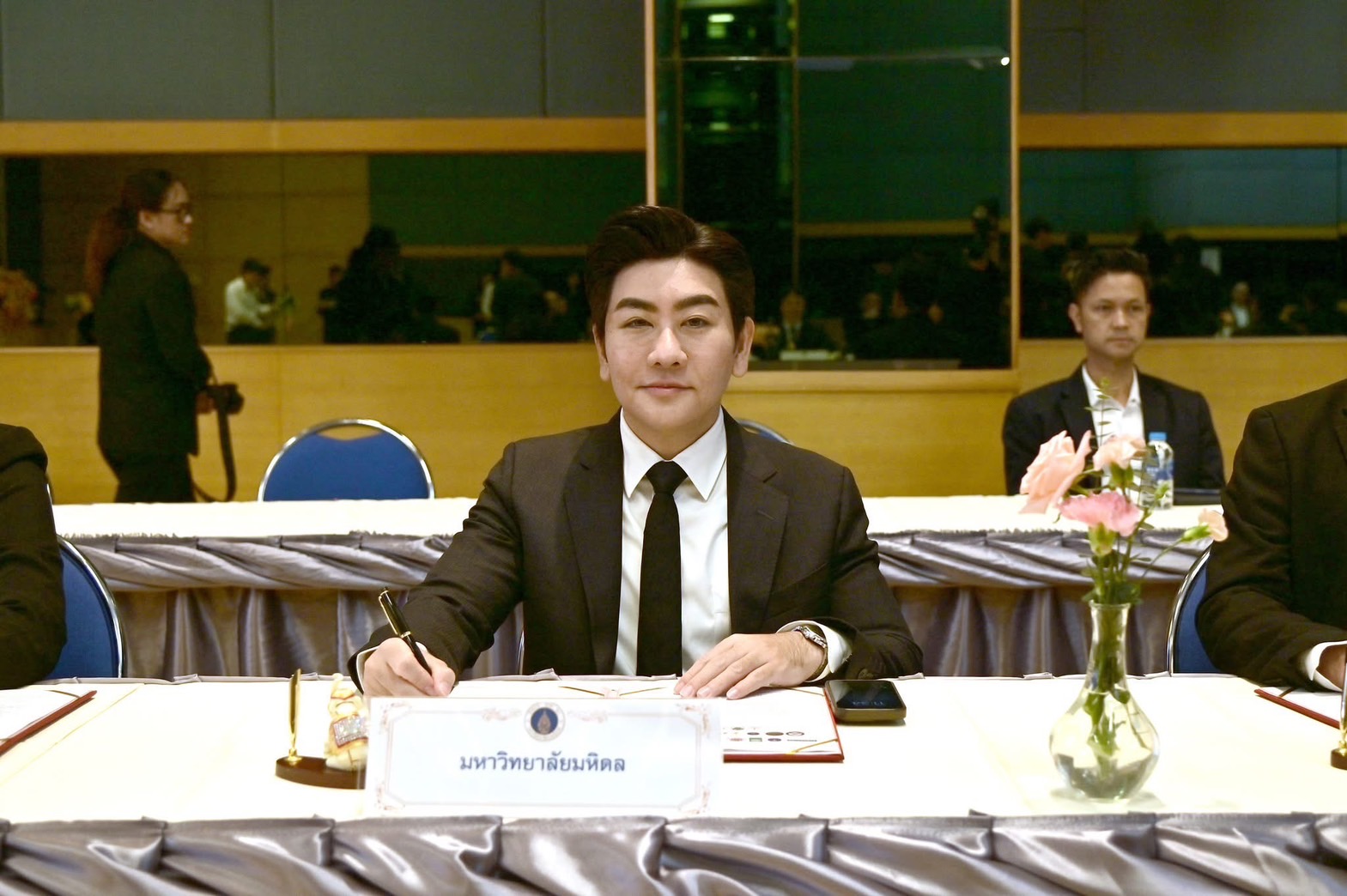 วันที่ 14 พฤศจิกายน 2568 รองศาสตราจารย์ ดร.ธนภัทร์ วานิชานนท์ คณบดี คณะวิศวกรรมศาสตร์ มหาวิทยาลัยมหิดล ในฐานะผู้แทนอธิการบดีมหาวิทยาลัยมหิดล เข้าร่วมพิธีลงนามบันทึกข้อตกลงความร่วมมือทางวิชาการในการส่งเสริมและสนับสนุนทางวิชาการด้านไมโครอิเล็กทรอนิกส์ ร่วมกับ สมาคมการค้าอุตสาหกรรมไทยเซมิคอนดักเตอร์ (THSIA), สำนักงานปลัดกระทรวงการอุดมศึกษา วิทยาศาสตร์ วิจัยและนวัตกรรม (สปอว.), สำนักงานการวิจัยแห่งชาติ (วช.) และ 19 สถาบันการศึกษา ณ อาคารนวมินทรราชินี มหาวิทยาลัยเทคโนโลยีพระจอมเกล้าพระนครเหนือ