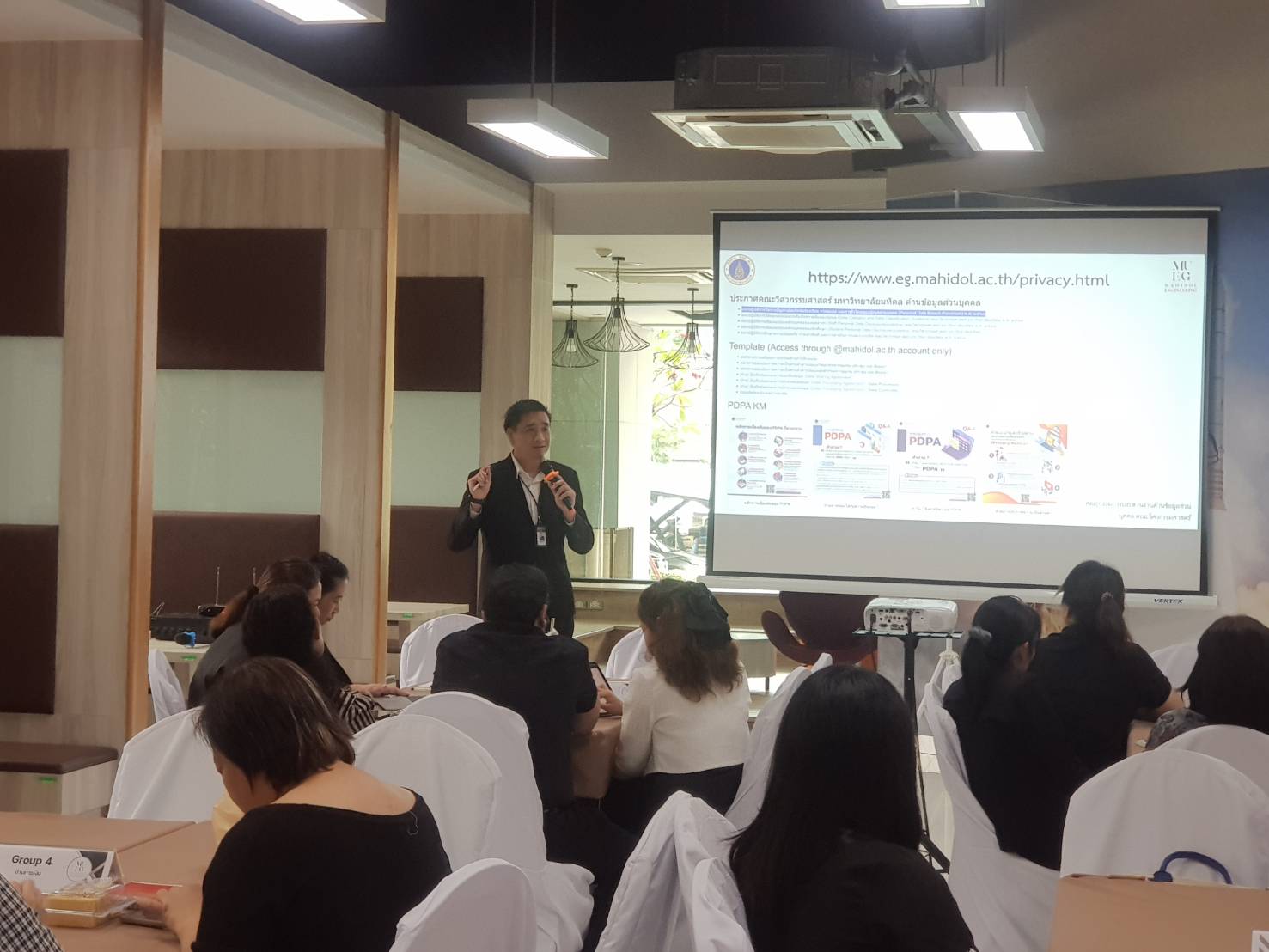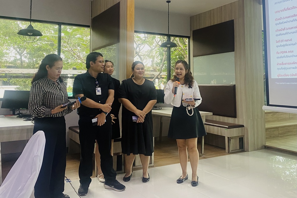 การบรรยายและการฝึกปฏิบัติได้รับเกียรติจาก ผู้ช่วยศาสจราจารย์ ดร.โษฑศ์รัตต ธรรมบุษดี ผู้ช่วยคณบดีด้านการเปลี่ยนแปลงทางดิจิทัลขององค์กร และรองประธานกรรมการประสานงานด้านข้อมูลส่วนบุคคล ซึ่งให้ความรู้เกี่ยวกับการสำรวจข้อมูล ROPA การประเมินความพร้อมของแต่ละหน่วยงาน และแนวทางรับมือเมื่อเกิดเหตุการณ์ละเมิดข้อมูลส่วนบุคคล ภายหลังการบรรยาย บุคลากรได้ร่วมกันทำกิจกรรมกลุ่ม จำนวน 5 กลุ่ม ครอบคลุมประเด็น ด้านการศึกษาด้านวิจัยและบริการวิชาการ ด้านบุคลากร ด้านการเงิน และด้านบริหารจัดการภายในอื่น ๆ โดยมีการจำลองสถานการณ์เมื่อเกิดเหตุละเมิด PDPA เพื่อเสริมทักษะการวิเคราะห์ การตอบสนองสถานการณ์ฉุกเฉิน และกระบวนการรายงานเหตุการณ์อย่างถูกต้องตามระเบียบ