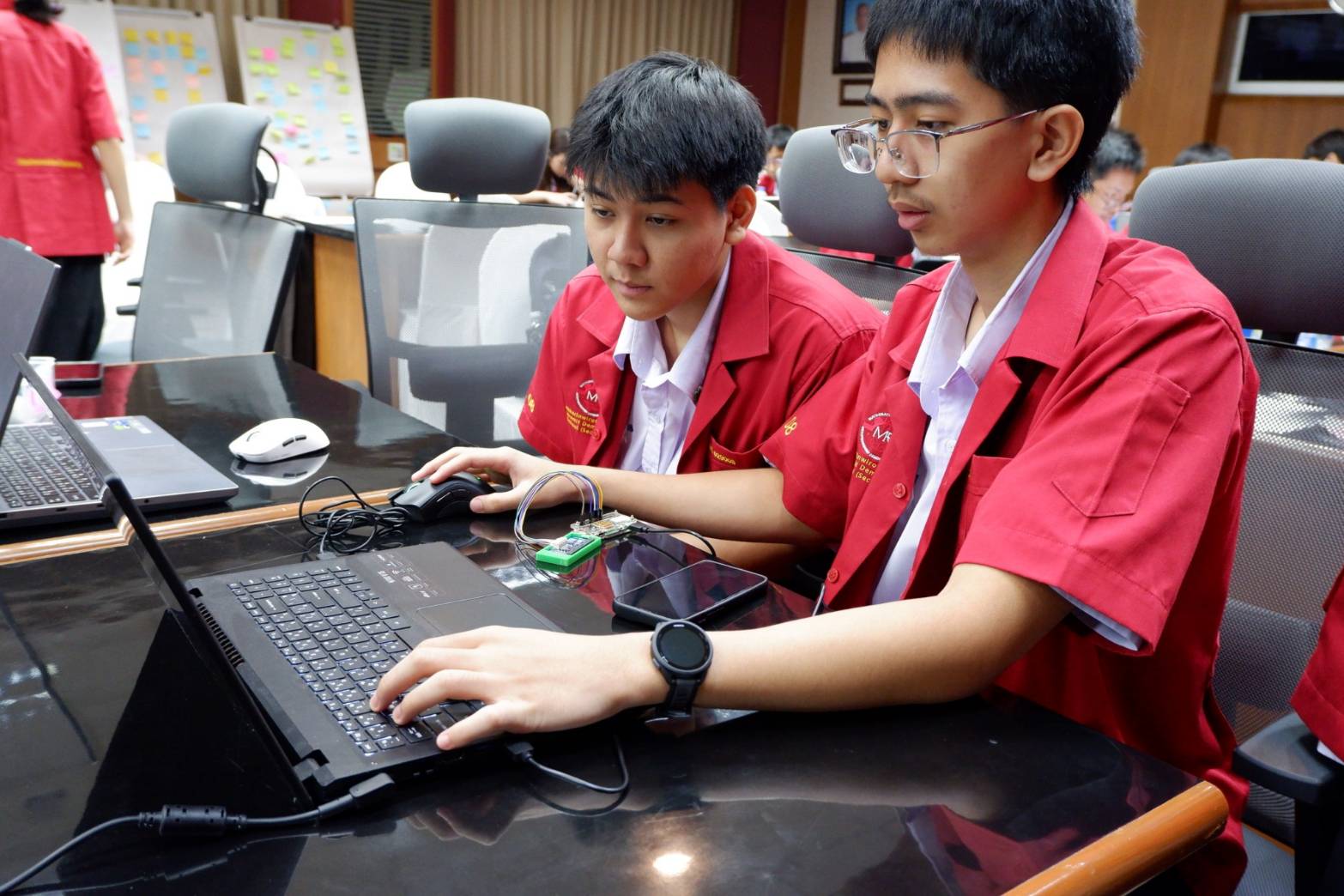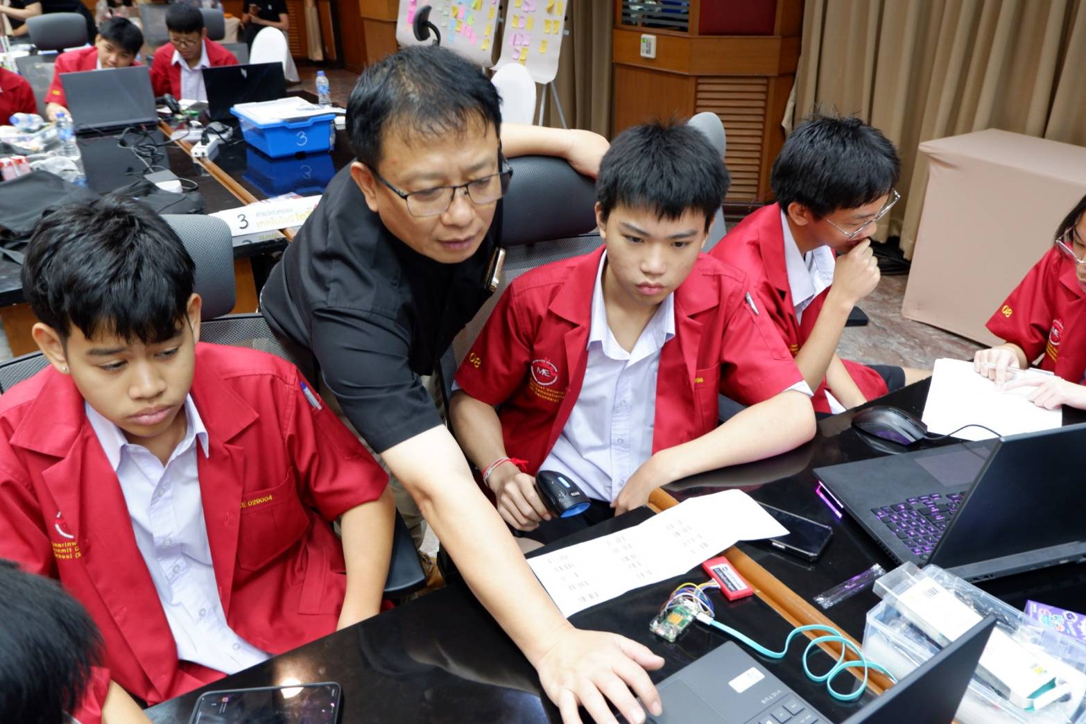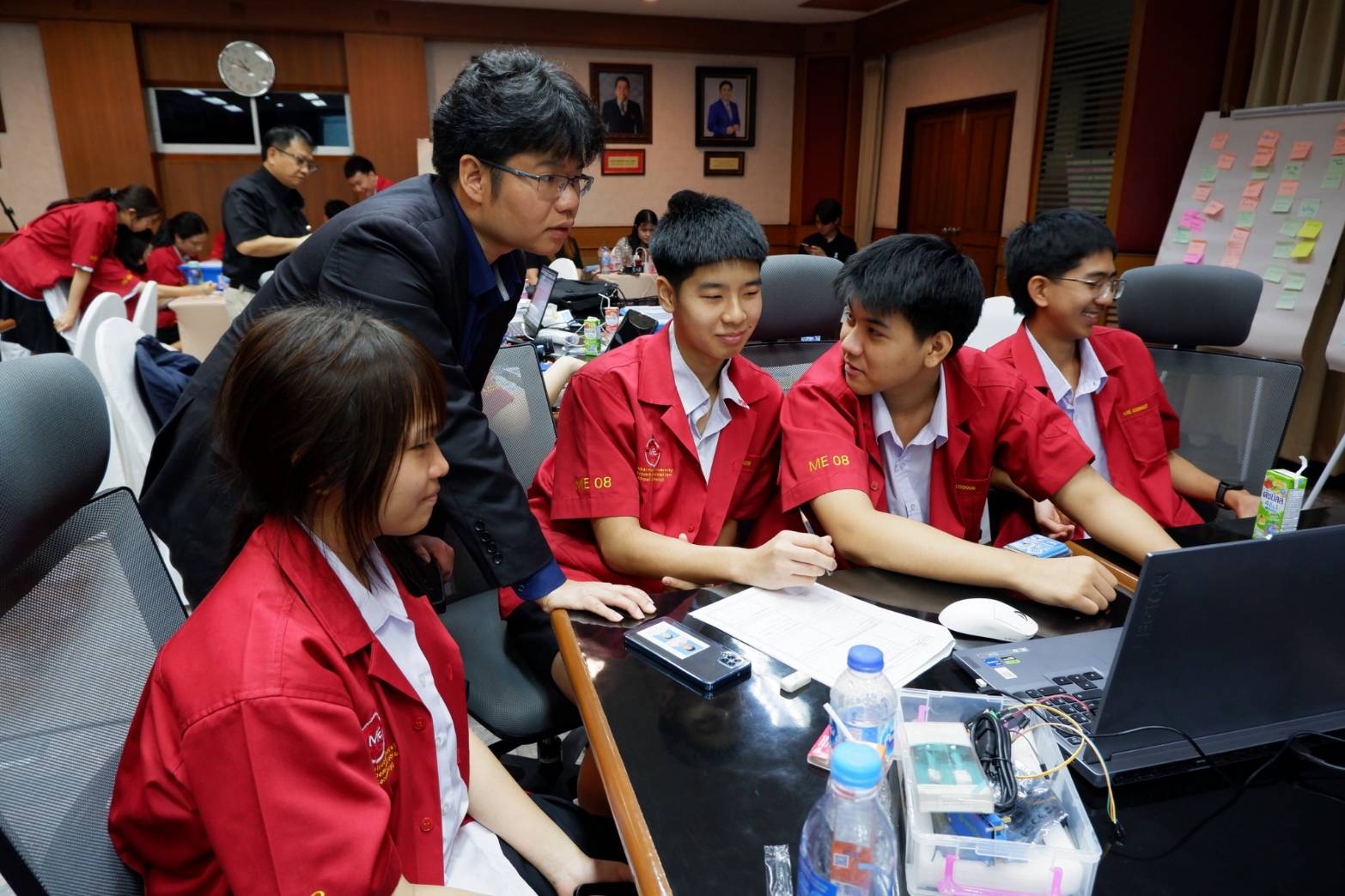 ซึ่งนักเรียนผู้เข้าร่วมได้เรียนรู้แนวคิด SDGs และการออกแบบนวัตกรรมผ่านการบรรยายจากอาจารย์และผู้เชี่ยวชาญด้านวิศวกรรมไฟฟ้า พร้อมกิจกรรมพัฒนา Hardware และ Software ที่เปิดโอกาสให้นักเรียนได้ทดลองลงมือทำจริง ภายใต้การดูแลอย่างใกล้ชิดของทีมวิทยากรจากคณะวิศวกรรมศาสตร์ มหาวิทยาลัยมหิดล และจุฬาลงกรณ์มหาวิทยาลัย บรรยากาศเป็นไปอย่างเข้มข้นและเต็มไปด้วยการเรียนรู้เชิงสร้างสรรค์ โดยนักเรียนที่เข้าร่วมได้เข้าสู่ช่วงพัฒนานวัตกรรม IoT อย่างเต็มรูปแบบ โดยมีอาจารย์ผู้ทรงคุณวุฒิร่วมให้คำแนะนำตลอดกิจกรรม ก่อนจะเข้าสู่การนำเสนอผลงานและการแข่งขันเชิงวิชาการ ซึ่งนักเรียนแต่ละกลุ่มได้แสดงศักยภาพในการประยุกต์ใช้เทคโนโลยีเพื่อแก้ไขปัญหาในชีวิตจริงอย่างโดดเด่น