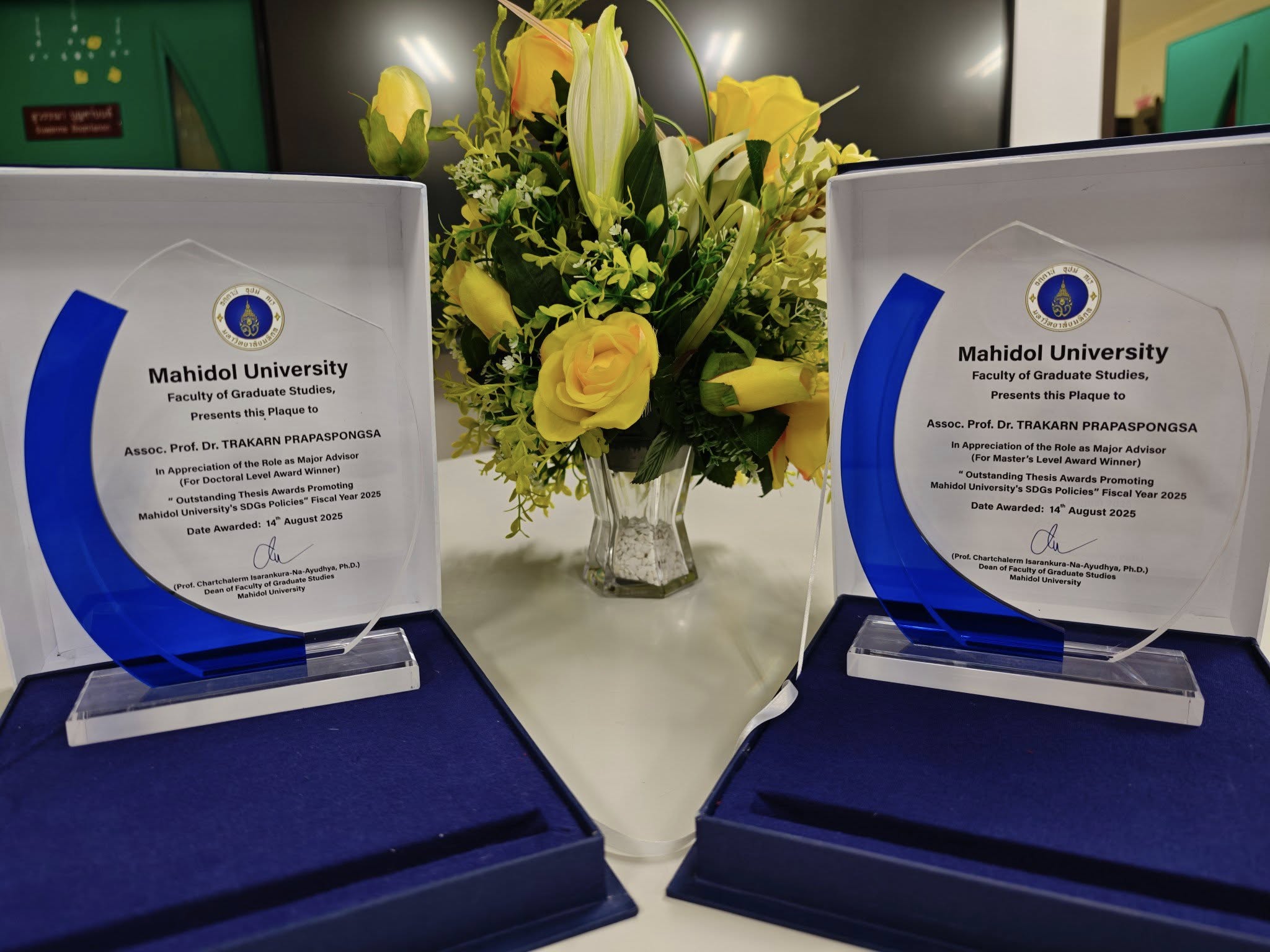 รางวัลที่ได้รับประกอบด้วย รางวัล SDGs Living Lab Funding Awardee จากโครงการ Mahidol Engineering Zero Waste Living Lab ห้องปฏิบัติการมีชีวิตเพื่อการจัดการขยะเป็นศูนย์ของคณะวิศวกรรมศาสตร์ มหาวิทยาลัยมหิดล และนอกจากนี้ยังได้รับรางวัล Outstanding Thesis Awards Promoting Mahidol University’s SDGs Policies จากการเป็นที่ปรึกษาผลงานวิจัยเรื่อง Life Cycle Toxicity Assessment of Agricultural Systems in Thailand ของ Dr. Phatchari Mankong นักศึกษาปริญญาเอก และผลงาน Life Cycle Assessment of Agricultural Systems toward Circularity ของ Mr. Thanakon Sukuman นักศึกษาปริญญาโท หลักสูตรวิศวกรรมสิ่งแวดล้อมและทรัพยากรน้ำ (หลักสูตรนานาชาติ)