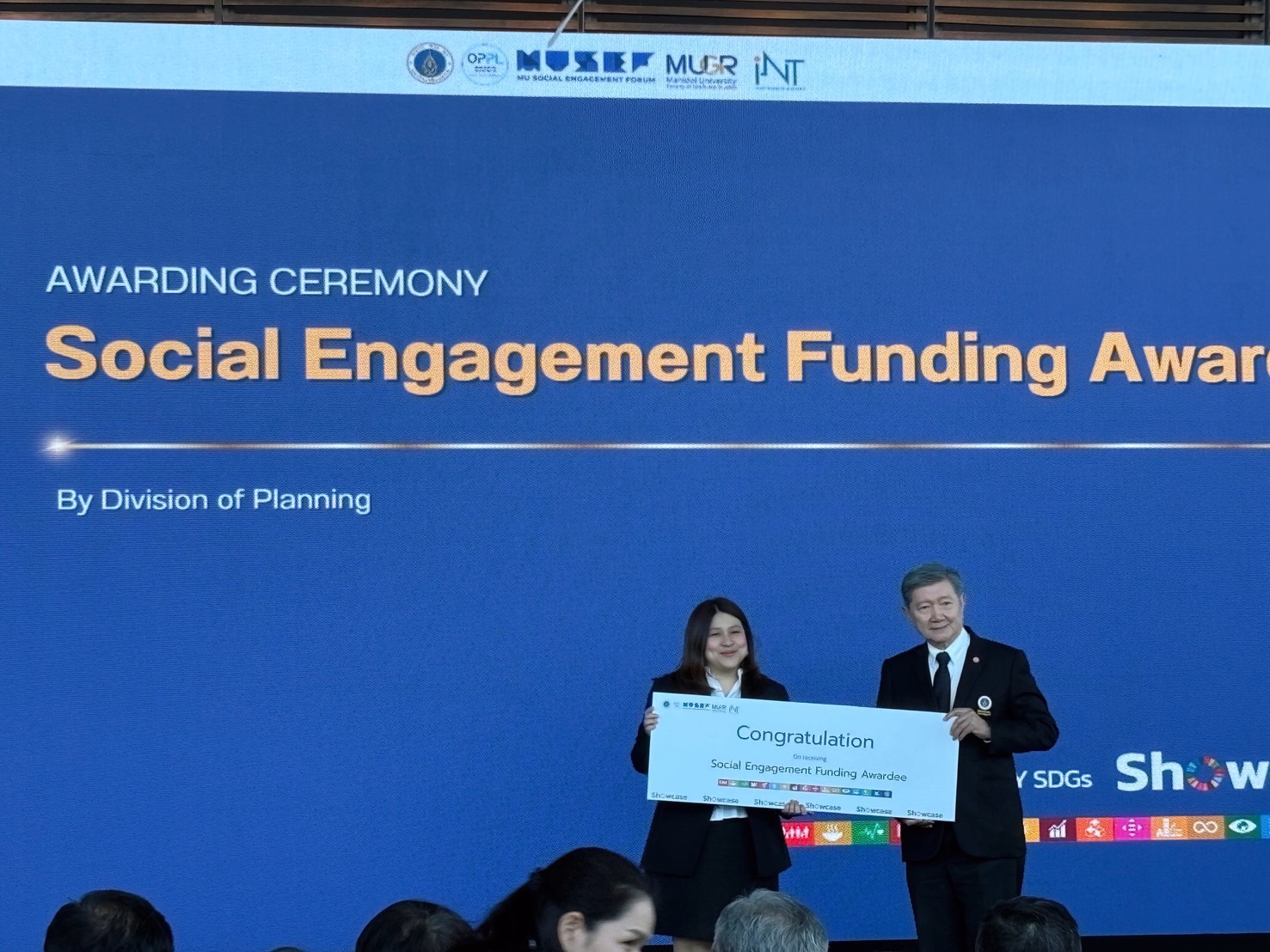 วันที่ 16 ธันวาคม 2568 ผู้ช่วยศาสตราจารย์ ดร.พรทิพย์ แก่งอินทร์ รองคณบดีฝ่ายบ่มเพาะนวัตกรรมและศิษย์เก่าสัมพันธ์ อาจารย์ประจำภาควิชาวิศวกรรมเครื่องกล ได้รับรางวัล Social Engagement Funding Awardee ในงานมหกรรมมหิดลเพื่อการพัฒนาอย่างยั่งยืน 2025 (Mahidol Sustainable Development Fair 2025) ภายใต้แนวคิด “SDGs for Real World Impact: from Campus to Community” โดยเข้ารับมอบรางวัลจาก ศาสตราจารย์ คลินิกเกียรติคุณ นพ.ปิยะสกล สกลสัตยาทร นายกสภามหาวิทยาลัย ณ มหิดลสิทธาคาร มหาวิทยาลัยมหิดล ศาลายา
