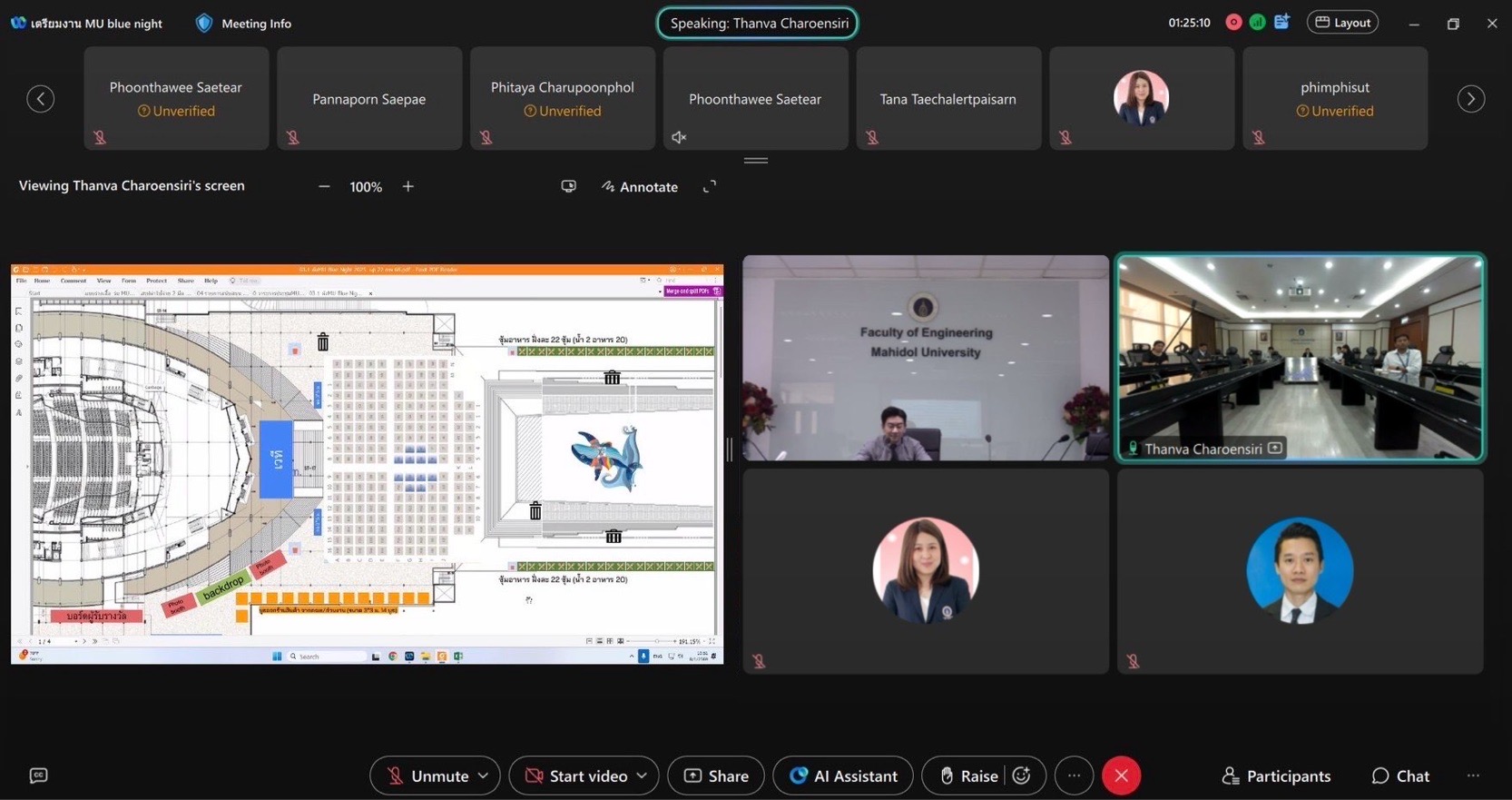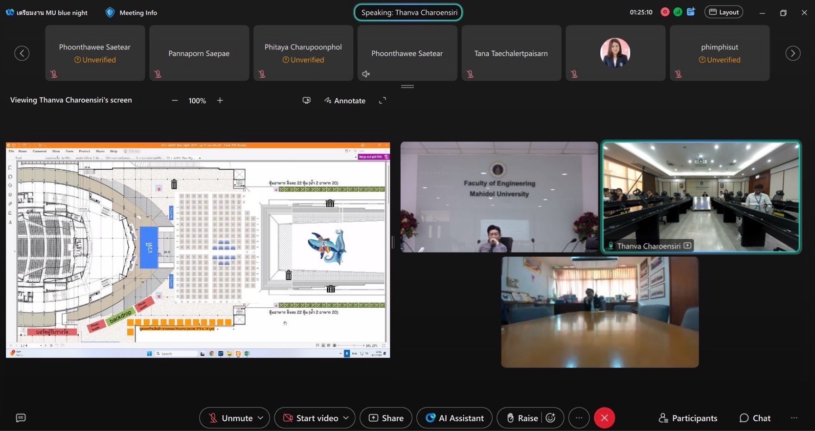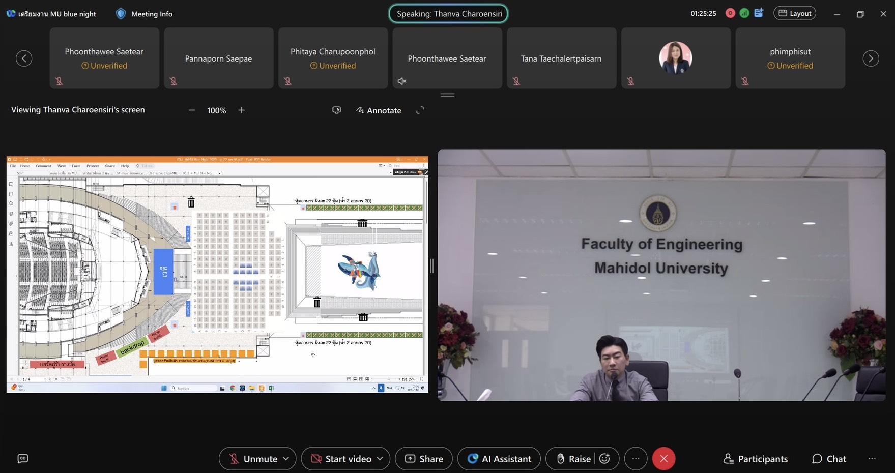 วันที่ 8 มกราคม 2569 รองศาสตราจารย์ ดร.ธนภัทร์ วานิชานนท์ คณบดีคณะวิศวกรรมศาสตร์ มหาวิทยาลัยมหิดล พร้อมด้วยทีมผู้บริหาร เข้าร่วมประชุมกับผู้บริหารคณะวิทยาศาสตร์ และคณะสิ่งแวดล้อมและทรัพยากรศาสตร์ เพื่อหารือแนวทางการดำเนินงานและเตรียมความพร้อมในการจัดงาน “คืนสู่เหย้าชาวมหิดล” หรือ MU Blue Night ครั้งที่ 9 ซึ่งทั้ง 3 คณะร่วมกันเป็นเจ้าภาพในการจัดงานครั้งนี้ โดยการประชุมมุ่งเน้นการวางแผนการจัดงานในภาพรวม อาทิ รูปแบบและกิจกรรมภายในงาน การประสานงานด้านสถานที่ ระบบอำนวยความสะดวก การดูแลด้านสิ่งแวดล้อมและความยั่งยืน การสื่อสารประชาสัมพันธ์ ตลอดจนการแบ่งบทบาทหน้าที่และความรับผิดชอบของแต่ละคณะ เพื่อให้การดำเนินงานเป็นไปอย่างมีประสิทธิภาพและบรรลุวัตถุประสงค์ของการจัดงาน