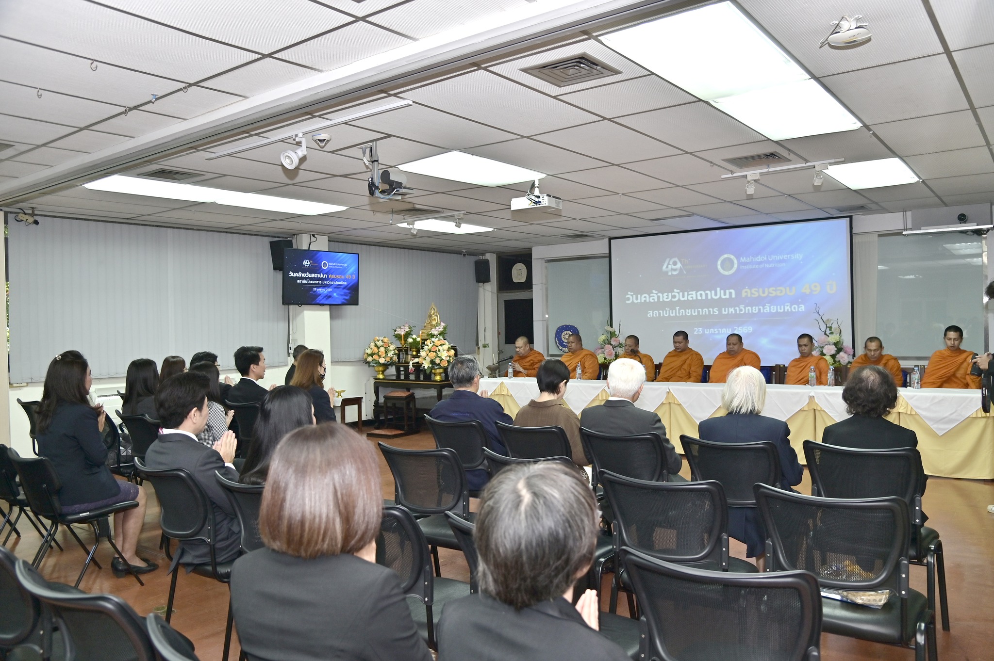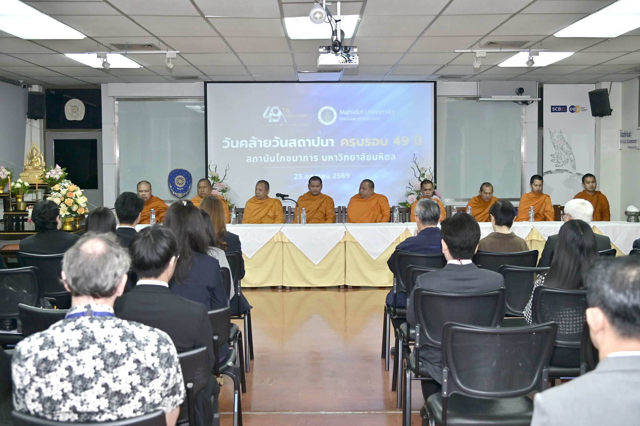 วันที่ 23 มกราคม 2569 รองศาสตราจารย์ ดร.ธนภัทร์ วานิชานนท์ คณบดีคณะวิศวกรรมศาสตร์ มหาวิทยาลัยมหิดล ร่วมแสดงความยินดี เนื่องในโอกาสวันคล้ายวันสถาปนา โภชนาการ มหาวิทยาลัยมหิดล ครบรอบปีที่ 49 ณ สถาบันโภชนาการ มหาวิทยาลัยมหิดล การเข้าร่วมงานในครั้งนี้สะท้อนถึงความสัมพันธ์อันดีและความร่วมมือทางวิชาการระหว่างคณะวิศวกรรมศาสตร์และสถาบันโภชนาการ มหาวิทยาลัยมหิดล ซึ่งมุ่งเน้นการบูรณาการองค์ความรู้ด้านวิศวกรรมศาสตร์และโภชนาการ เพื่อการพัฒนาองค์ความรู้ งานวิจัย และนวัตกรรมที่เป็นประโยชน์ต่อสังคมและประเทศชาติอย่างยั่งยืน