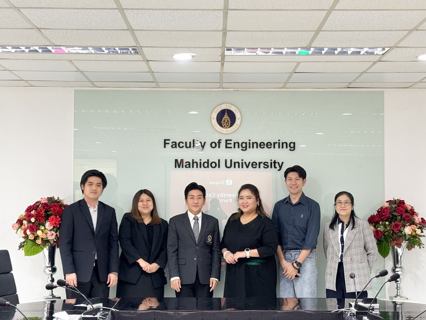วันที่ 26 มกราคม 2569 คณะวิศวกรรมศาสตร์ มหาวิทยาลัยมหิดล นำโดย รองศาสตราจารย์ ดร.ธนภัทร์ วานิชานนท์ คณบดีคณะวิศวกรรมศาสตร์ พร้อมด้วย ผู้ช่วยศาสตราจารย์ ดร.พรทิพย์ แก่งอินทร์ รองคณบดีฝ่ายบ่มเพาะนวัตกรรมและศิษย์เก่าสัมพันธ์ ผู้ช่วยศาสตราจารย์ ดร.วศพร เตชะพีรพานิช รองคณบดีฝ่ายวิชาการและกิจการนักศึกษา และ ผู้ช่วยศาสตราจารย์ ดร.กลกรณ์ วงศ์ภาติกะเสรี หัวหน้าภาควิชาวิศวกรรมคอมพิวเตอร์ ได้เข้าร่วมหารือกับผู้แทนจาก บริษัทช้อปปี้ (ประเทศไทย) จำกัด นำโดย คุณชฎาธร ขัมภกิจ Recruitment Manager และ คุณธนพล แสงชัยวิรัช Recruitment Project การหารือครั้งนี้มีวัตถุประสงค์เพื่อประชาสัมพันธ์และส่งเสริมการรับสมัครนักศึกษาคณะวิศวกรรมศาสตร์เข้าทำงานกับบริษัทช้อปปี้ (ประเทศไทย) จำกัด รวมถึงการสร้างความร่วมมือระหว่างสถาบันการศึกษาและภาคอุตสาหกรรม เพื่อเตรียมความพร้อมนักศึกษาให้มีทักษะและสมรรถนะที่สอดคล้องกับความต้องการของตลาดแรงงานในปัจจุบัน โดยเฉพาะในด้านเทคโนโลยีสารสนเทศ วิศวกรรมคอมพิวเตอร์ วิศวกรรมระบบ และนวัตกรรมดิจิทัล