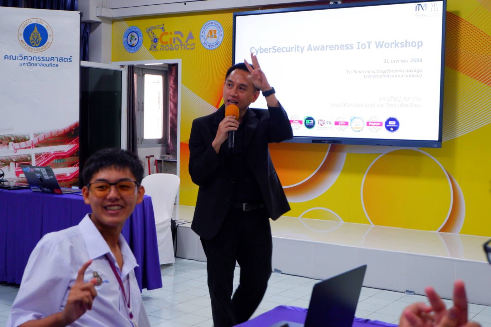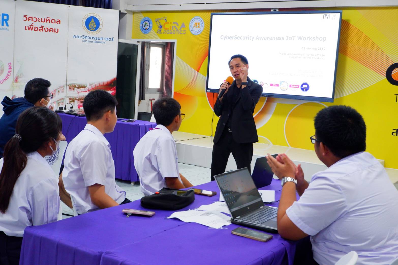 คณะวิศวกรรมศาสตร์ มหาวิทยาลัยมหิดล จัดโครงการ “เปิดโลกทักษะ AI และความปลอดภัยทางไซเบอร์ เพื่อการศึกษาไทย” ระหว่างวันที่ 31 มกราคม – 1 กุมภาพันธ์ 2569 ณ โรงเรียนกาญจนาภิเษกวิทยาลัย นครปฐม (พระตำหนักสวนกุหลาบมัธยม) เพื่อส่งเสริมให้นักเรียนและครูได้เรียนรู้เทคโนโลยีปัญญาประดิษฐ์และความปลอดภัยทางไซเบอร์อย่างถูกต้อง ทันสมัย และสามารถนำไปประยุกต์ใช้ในชีวิตประจำวันได้อย่างสร้างสรรค์