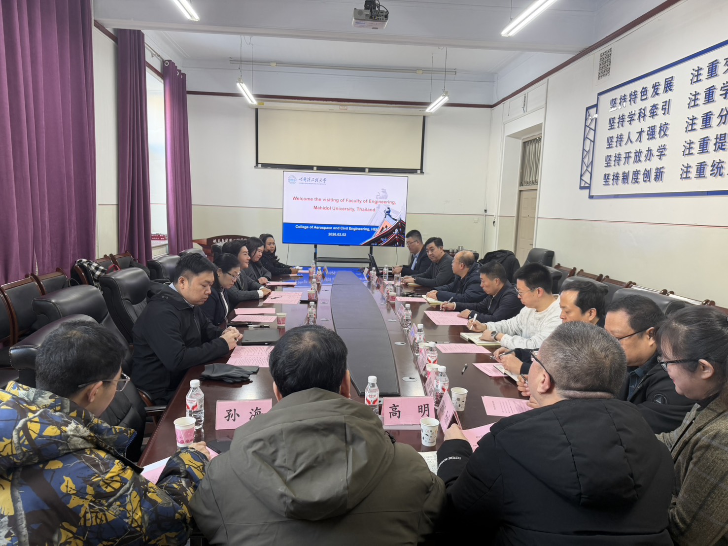 วันที่ 2 กุมภาพันธ์ 2569 คณะวิศวกรรมศาสตร์ มหาวิทยาลัยมหิดล นำโดย รองศาสตราจารย์ ดร.ธนภัทร์ วานิชานนท์ คณบดี พร้อมคณะผู้บริหาร ได้แก่ ผู้ช่วยศาสตราจารย์ ดร.ภัทรพร โปสกนิษฐกุล รองคณบดีฝ่ายวิเทศสัมพันธ์และสื่อสารองค์กร ผู้ช่วยศาสตราจารย์ ดร.วศพร เตชะพีรพานิช รองคณบดีฝ่ายวิชาการและกิจการนักศึกษา และ รองศาสตราจารย์ ดร.ธีรพันธ์ อรธรรมรัตน์ หัวหน้าภาควิชาวิศวกรรมโยธาและสิ่งแวดล้อม เดินทางเยือน Harbin Engineering University (HEU) สาธารณรัฐประชาชนจีน เพื่อร่วมพิธีลงนามบันทึกความตกลงทางวิชาการ (MOA) กับ College of Aerospace and Civil Engineering, HEU