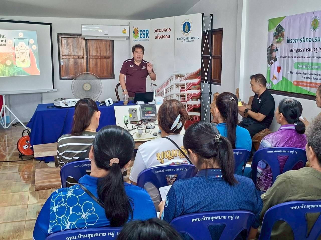 วันที่ 24 เมษายน 2569 คณะวิศวกรรมศาสตร์ มหาวิทยาลัยมหิดล โดยหน่วยวิศวกรรมเพื่อความรับผิดชอบต่อสังคม ร่วมเป็นวิทยากรในโครงการฝึกอบรมเชิงปฏิบัติการ หลักสูตร “การแปรรูปสมุนไพรกระชาย” ภายใต้โครงการส่งเสริมและพัฒนาสินค้าเกษตรชีวภาพ (สมุนไพร) ประจำปีงบประมาณ พ.ศ. 2569 เพื่อยกระดับศักยภาพเกษตรกรและผู้ประกอบการในพื้นที่ ให้สามารถพัฒนาผลผลิตสมุนไพรให้มีมูลค่าเพิ่มและตอบโจทย์ตลาดในปัจจุบัน