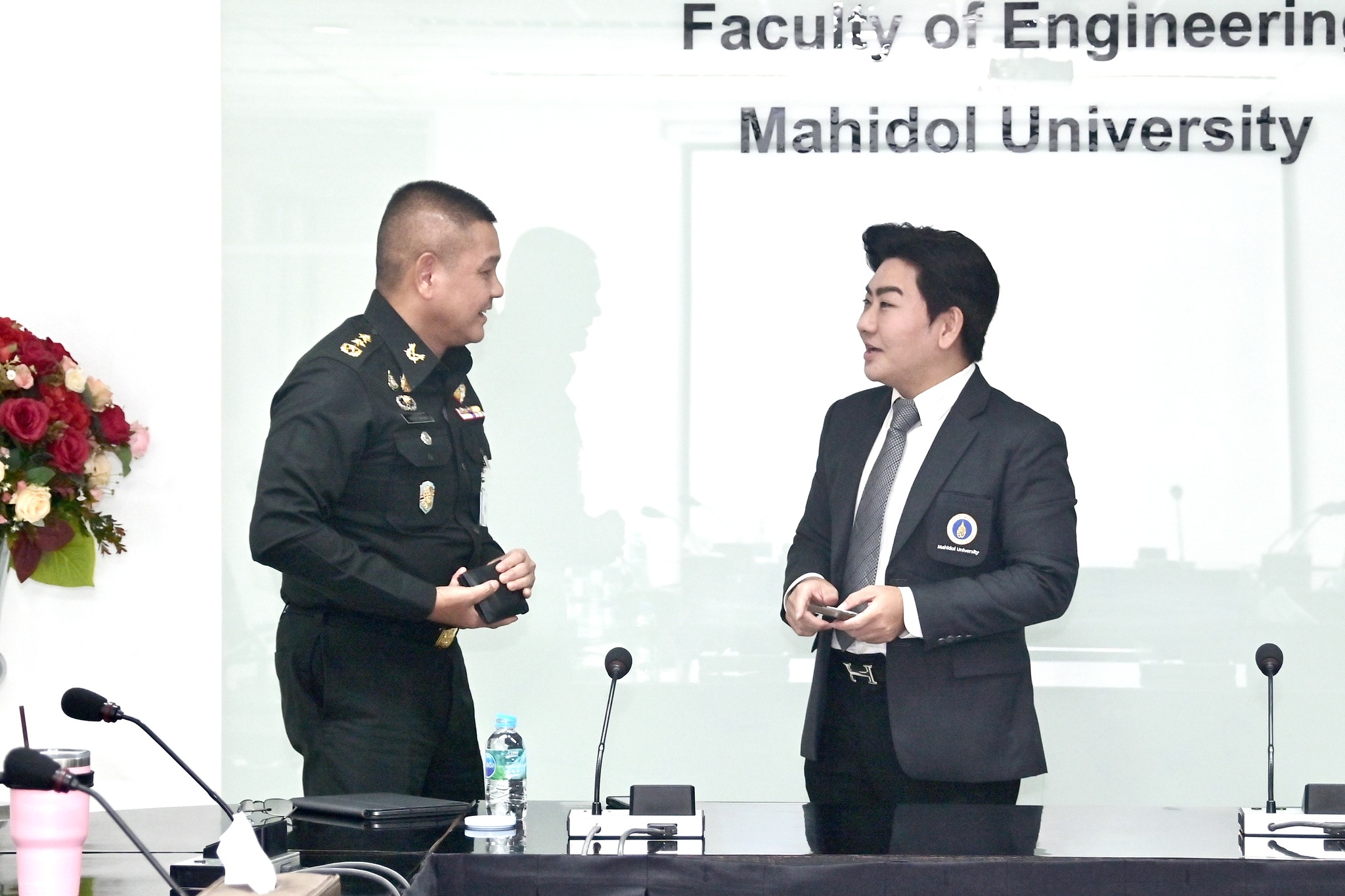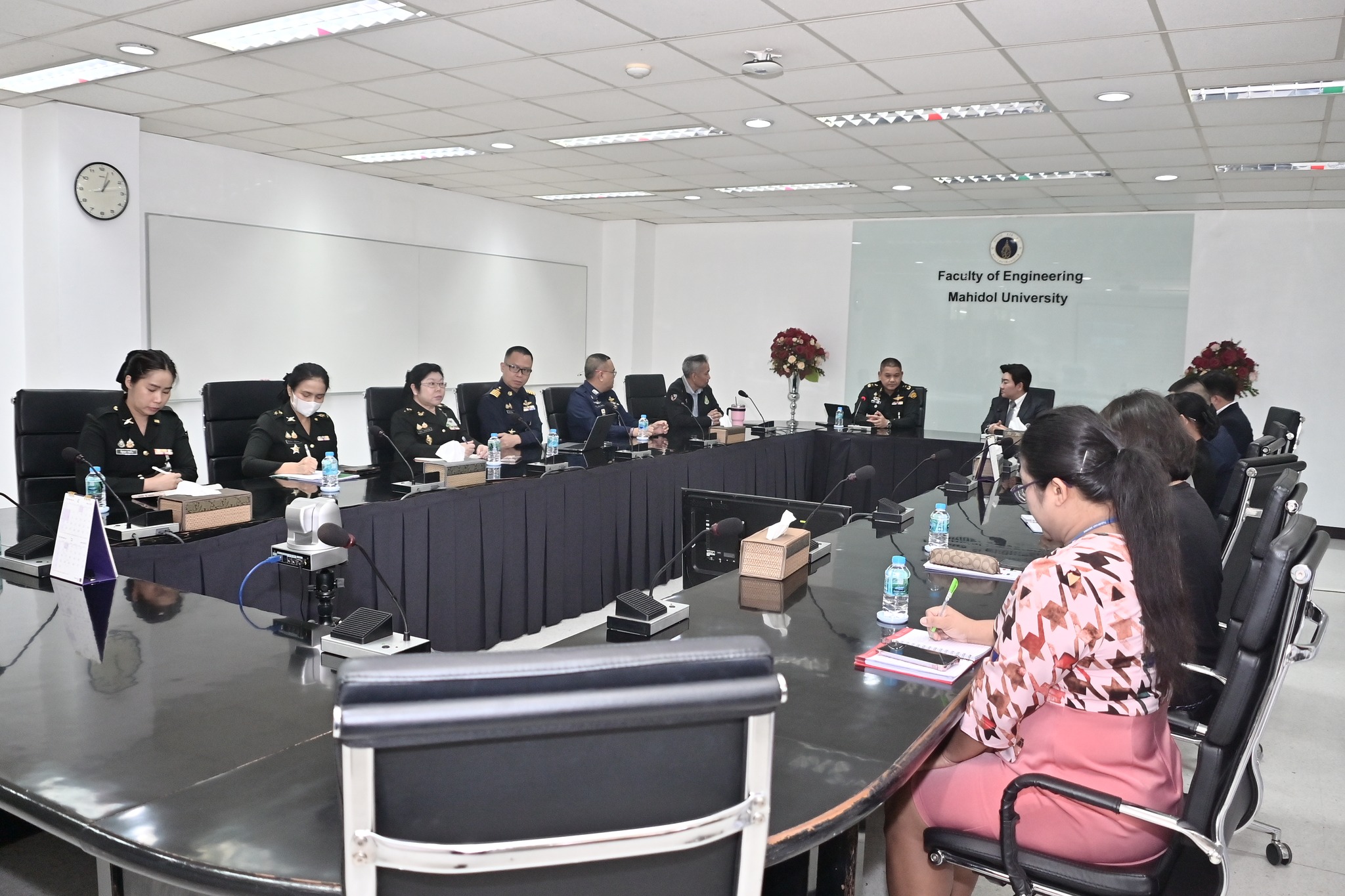 On May 21, 2025, Associate Professor Dr. Thanapat Wanichanon, Dean of the Faculty of Engineering, Mahidol University, along with executives and lectures welcomed representatives from the Military Cyber Command, Royal Thai Armed Forces Headquarters. Those at the meeting participated in a discussion on the University Meetup Roadshow to Recruit Cyber Warriors. This is an important project aimed at promoting and creating cooperation with higher education institutions in developing the country's cyber security workforce. This project is aimed at promoting and creating cooperation with higher education institutions in the task of developing the country's cyber security workforce. There was also a discussion on guidelines for a Memorandum of Understanding (MOU) on teaching and research, as well as publicizing a cyber competition organized by the Royal Thai Armed Forces Headquarters.