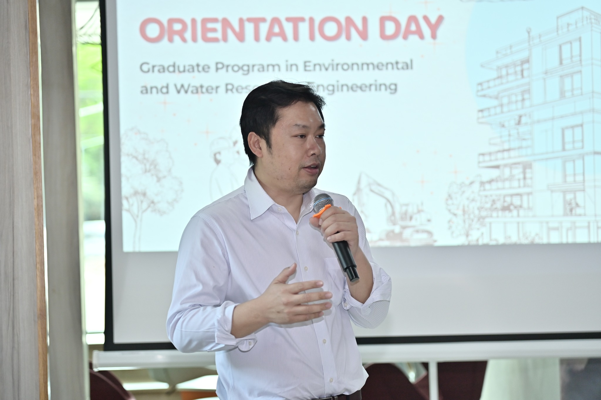 The program began with a video message from Associate Professor Dr. Thanapat Wanichanon, Dean of the Faculty of Engineering, followed by welcome remarks from Associate Professor Dr. Teraphan Ornthammarath, Head of the Department of Civil and Environmental Engineering. Faculty members responsible for the graduate program also introduced the curriculum and provided academic guidance for the students.