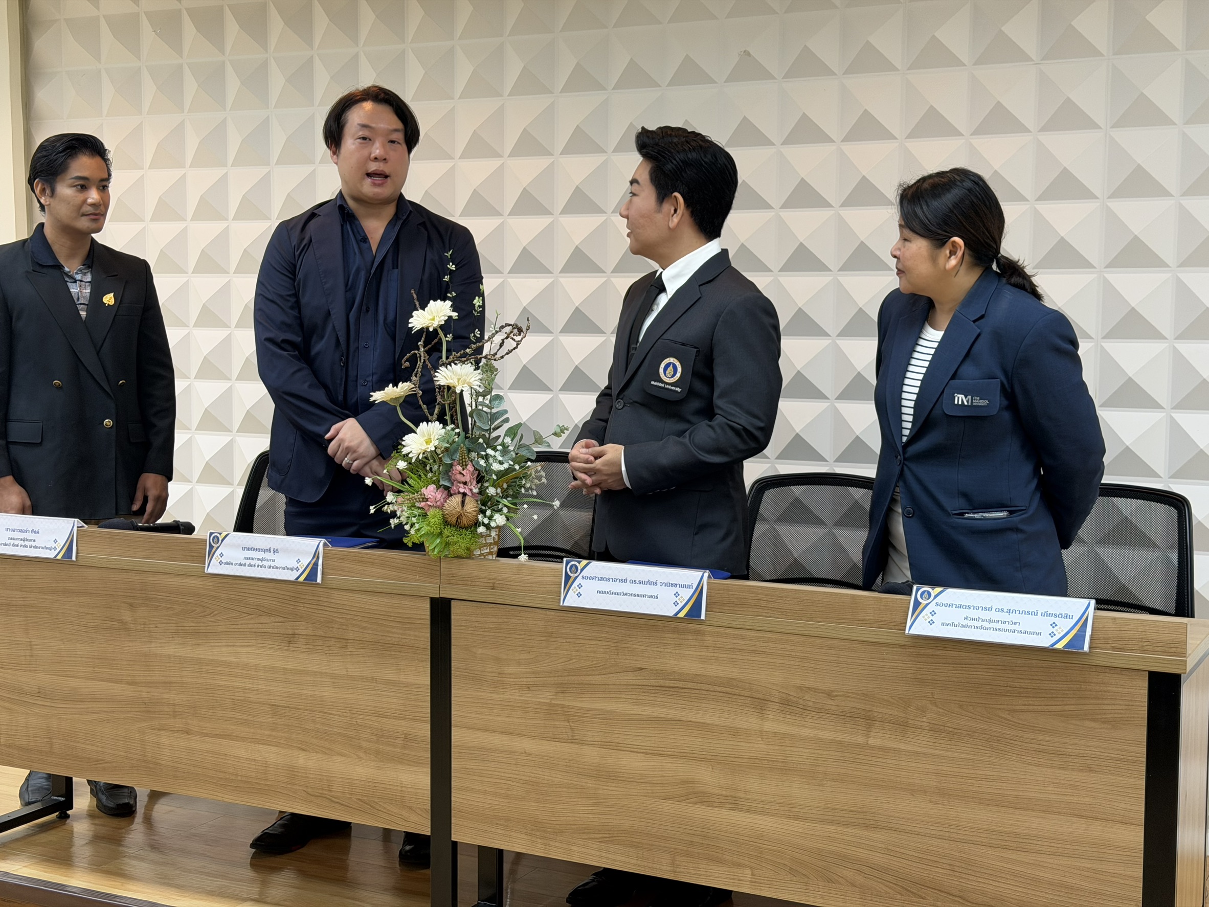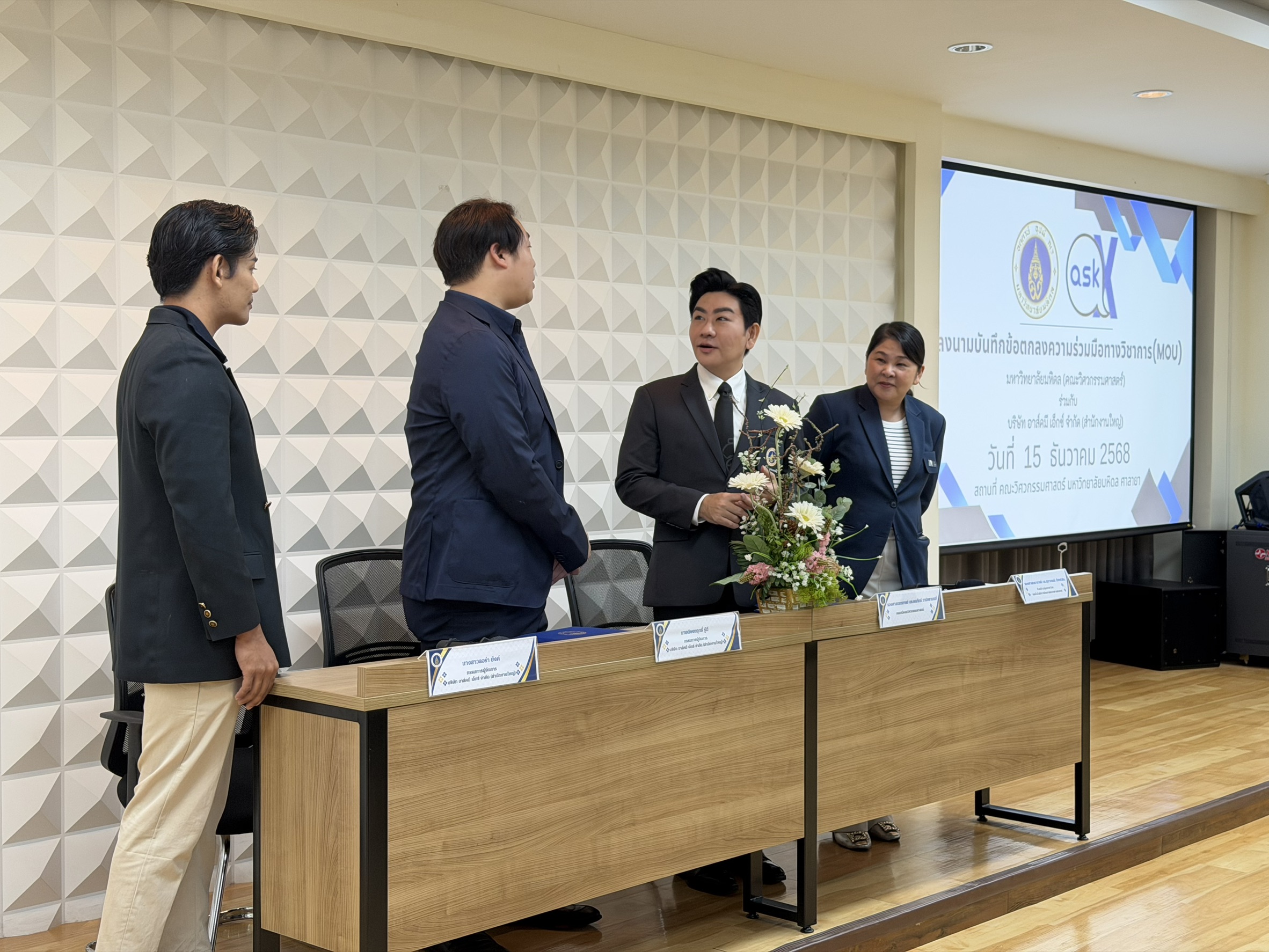 On 15 December 2025, the Information Technology Management Division (ITM) of the Faculty of Engineering, Mahidol University and representatives of Ask Me X Co., Ltd., held a signing ceremony for a Memorandum of Understanding (MOU) on academic cooperation. The ceremony took place in Room R301, 3rd Floor, Building 1, Faculty of Engineering, Mahidol University, Salaya Campus. The aim of the MOU was to strengthen collaboration in developing digital technology talent.