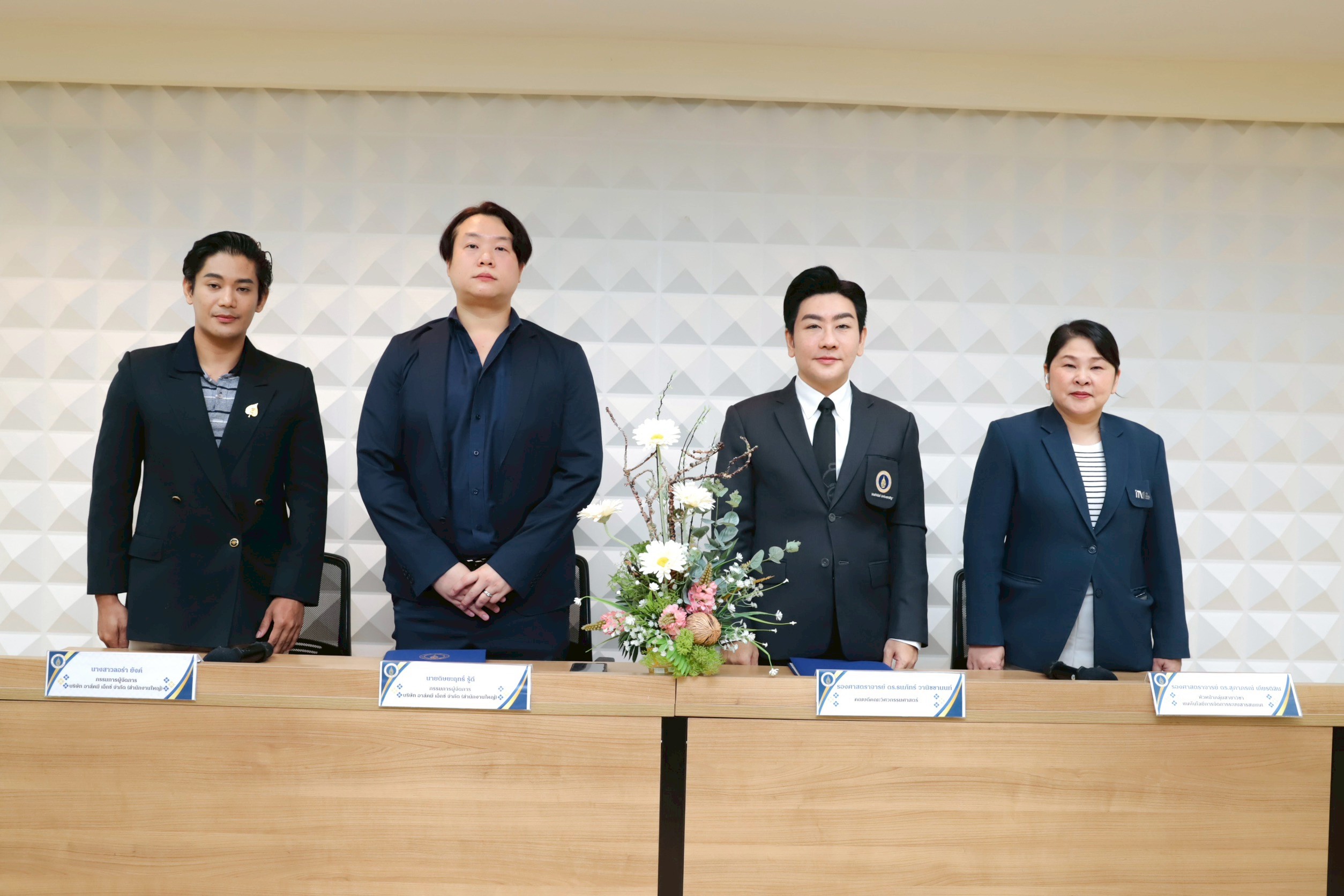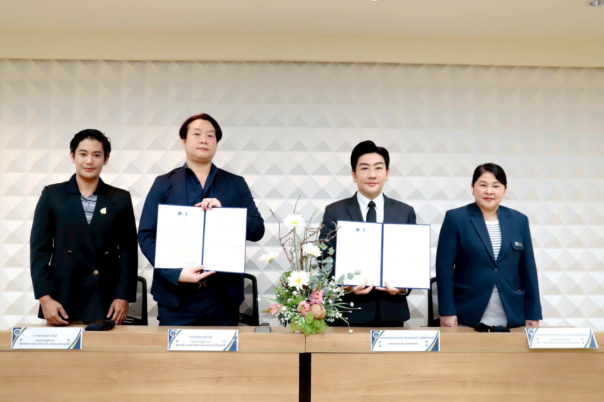 The MOU was signed by Associate Professor Dr. Thanapat Wanichanon, Dean of the Faculty of Engineering, Mahidol University, and Mr. Ditsayarit Ruudee, Managing Director of Ask Me X Co., Ltd., as the official representatives of both organizations. The ceremony was also witnessed by Associate Professor Dr. Supaporn Kiattisin, Head of the Information Technology Management Division (ITM), and Mr. Theerayut Kitcharoen, representing Ms. Laura Young, Managing Director of Ask Me X Co., Ltd.