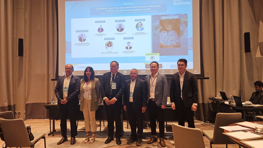 Prof. C. Visvanathan of the Department of Civil and Environmental Engineering, Faculty of Engineering, Mahidol University, was invited to participate in the 6th Sea of Solutions Forum, jointly organized by the United Nations Environment Programme (UNEP) and COBSEA. The forum was held from 15–17 December 2025 with the theme “Partnerships and Solutions for Plastic Pollution.” It brought together more than 150 regional representatives to exchange policy ideas, collaborative approaches, and practical measures to reduce marine plastic pollution in a sustainable manner, in line with the United Nations Sustainable Development Goals (SDGs).