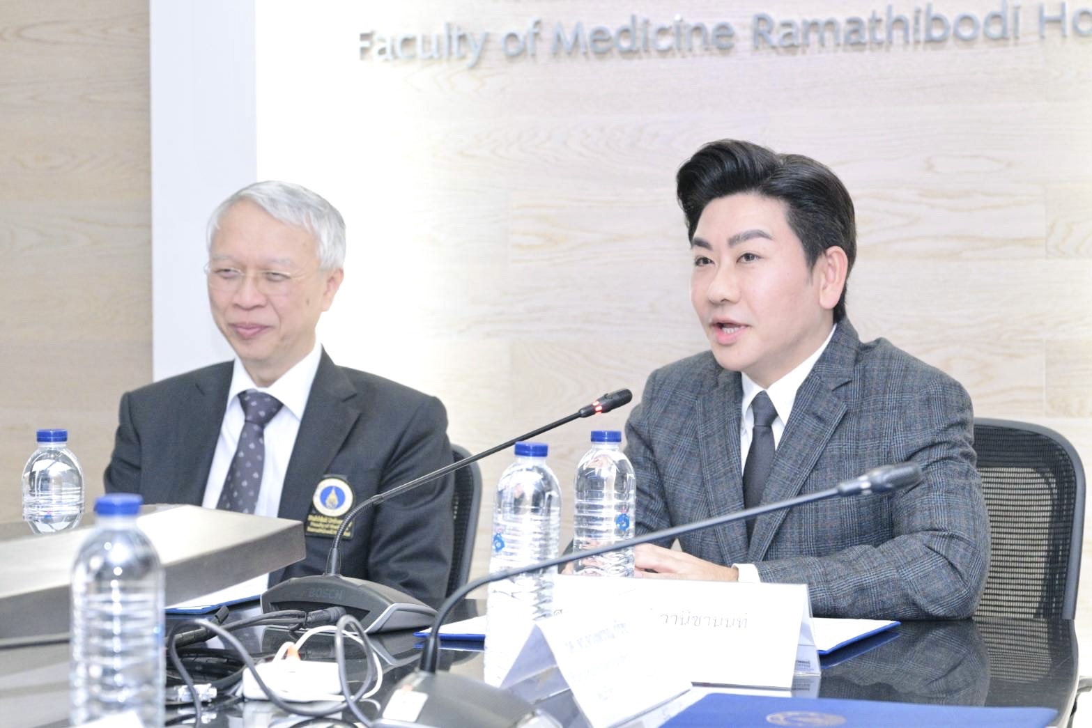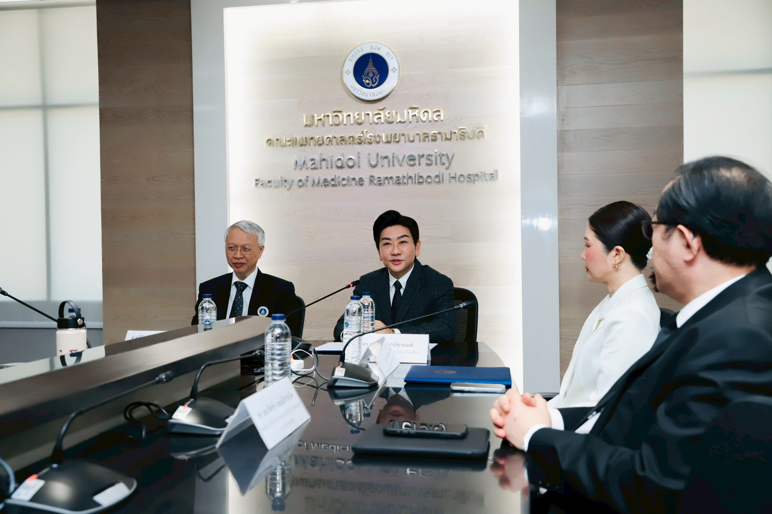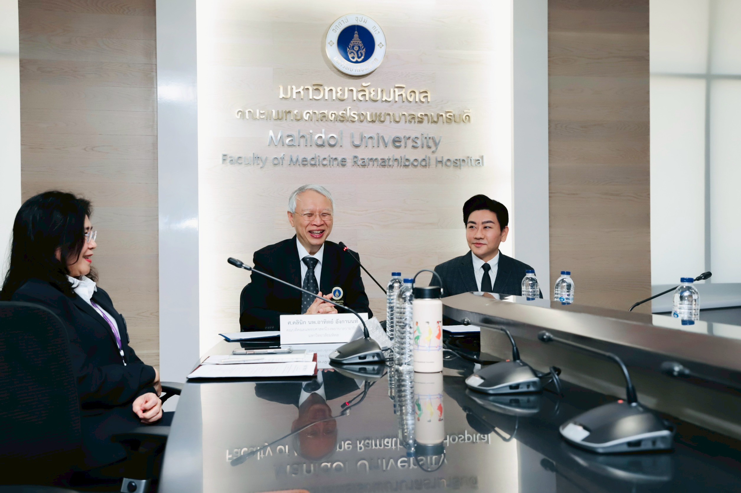 The ceremony took place at Meeting Room 1, Floor 5, Office of the President, Faculty of Medicine Ramathibodi Hospital, Mahidol University. It was witnessed by Associate Professor Dr. Cherdchai Nopmaneejumruslers, Vice President for Information Technology and Digital Transformation, with executives and faculty members from both faculties.