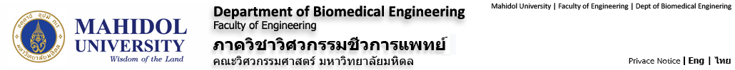 The Master of Engineering Program in Biomedical Engineering at Mahidol University is designed for students who wish to pursue careers in research and development, academics, or industry. The program is designed to be completed at the minimum of two years, which the program consists of 26 credits of course work and 12 credits of thesis research. Foundation courses in Biomedical Engineering Program are required for all students. The remaining course requirements may be adapted to student's backgrounds and research topics. Our curriculum exposes students to the latest developments in the special field, permits depth in a special area of biomedical engineering. Students in the master's program are exposed to special topics in biomedical engineering and practical training in the form of supervised research projects that nurtures self thinking, self development for solving problems that integrates between engineering and medical sciences.