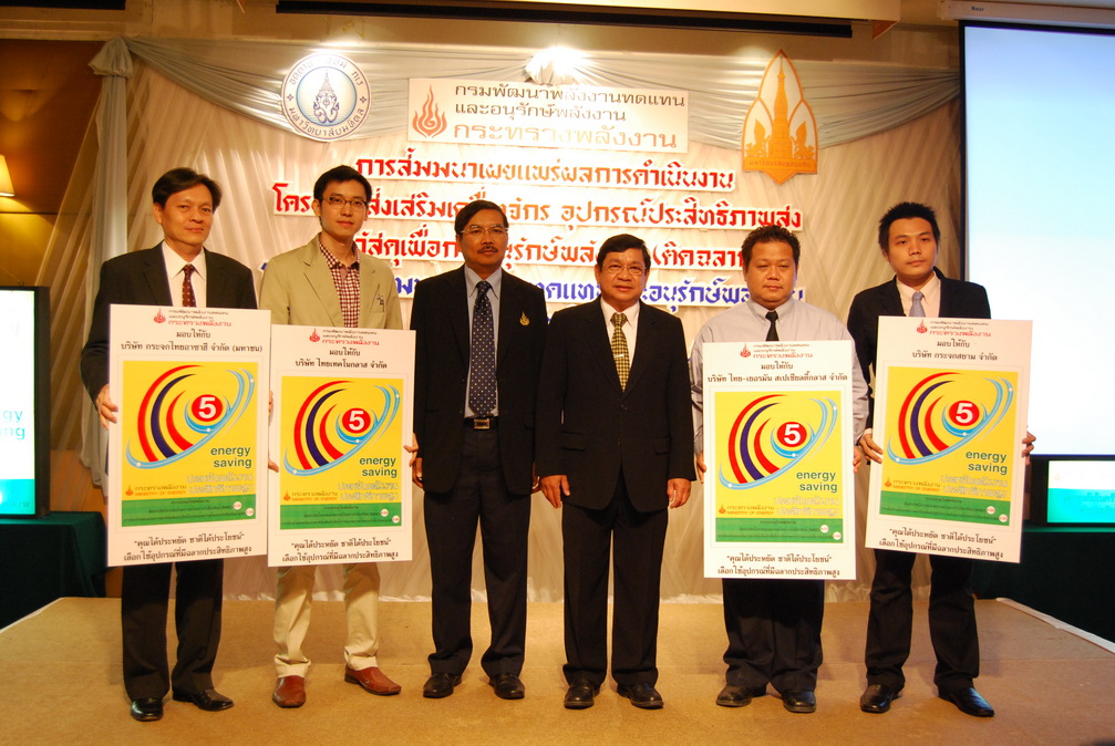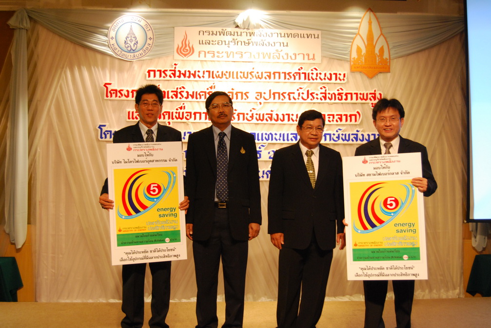 เมื่อวันที่ 10 กุมภาพันธ์ 2554 ที่ผ่านมา นายไกรฤทธิ์ นิลคูหา อธิบดีกรมพัฒนาพลังงานทดแทนและอนุรักษ์พลังงาน กระทรวงพลังงาน ได้เป็นประธานมอบฉลากประสิทธิภาพสูง ให้กับผู้ประกอบการผลิตภัณฑ์เตาหุงต้มในครัวเรือนใช้กับก๊าซปิโตรเลียมเหลว อุปกรณ์ปรับความเร็วรอบมอเตอร์ กระจก และฉนวนใยแก้ว ที่ผ่านการทดสอบค่าประสิทธิภาพสูง จำนวน 38 บริษัท