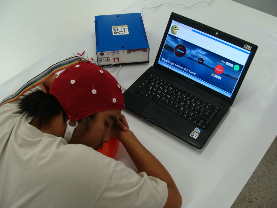 ภาควิชาวิศวกรรมชีวการแพทย์ คณะวิศวกรรมศาสตร์ มหาวิทยาลัยมหิดล ได้ทำการวิจัย และพัฒนา “เครื่องวัดระดับการงีบหลับด้วยสัญญาณสมองแบบอัตโนมัติ” ขึ้นมา เพื่อตอบสนองความต้องการของผู้บริโภคที่ต้องการลดการสูญเสียจากการเกิดอุบัติเหตุ โดยทีมนักวิจัยได้อธิบายหลักการทำงานของเครื่องว่า มีขั้ววัดสัญญาณอิเล็กโทรดทั้งหมด 3 สาย นำสายดังกล่าวไปติดที่ศีรษะเพื่อตรวจวัดและวิเคราะห์คลื่นสมองของมนุษย์ เครื่องนี้จะส่งสัญญาณไปที่หน้าจอคอมพิวเตอร์ ที่มีโปรแกรมวิเคราะห์การนอนหลับว่าอยู่ในระดับใด และหากหลับอยู่ในระดับ 2 เครื่องจะส่งเสียงปลุกอัตโนมัติ เพราะคนเราจะมีนาฬิกาชีวิตอยู่ 5 ระดับ แบ่งได้ดังนี้ ระดับ 1 กึ่งหลับกึ่งตื่น ระดับ 2 หลับตื่น ระดับ 3-4 เป็นช่วงหลับลึก ระยะสุดท้ายเป็นช่วงหลับฝันนั่งเอง ซึ่งการงับหลับเข้าสู่ในช่วงระดับที่ 2 เป็นช่วงเวลาที่เป็นการพักผ่อนที่ดีที่สุด เมื่อตื่นขึ้นมาจะทำให้รู้สึกสดชื่น กระปี้กระเป่า หายง่วงพร้อมจะทำงานต่อได้อย่างมีประสิทธิภาพ