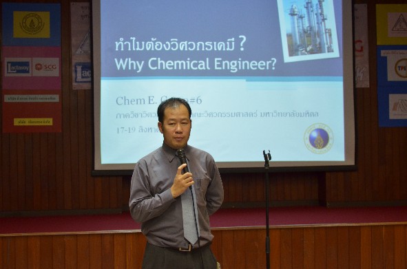 เริ่มแล้วสำหรับกิจกรรมค่าย Chem E Camp ครั้งที่ 6 ที่จัดขึ้นเมื่อวันที่ 17-19 สิงหาคม 2555 ณ คณะวิศวกรรมศาสตร์ โดยได้รับเกียรติจากนายวรวิทย์ อิศรางกูร ณ อยุธยา คณบดีคณวิศวกรรมศาสตร์ มหาวิทยาลัยมหิดล เป็นประธานในการเปิดงาน และน้องๆที่เข้าร่วมกิจกรรมดังกล่าวยังได้รับคำสอนดีๆจากอาจารย์ประจำภาควิชาวิศวกรรมเคมี คณะวิศวกรรมศาสตร์ด้วย