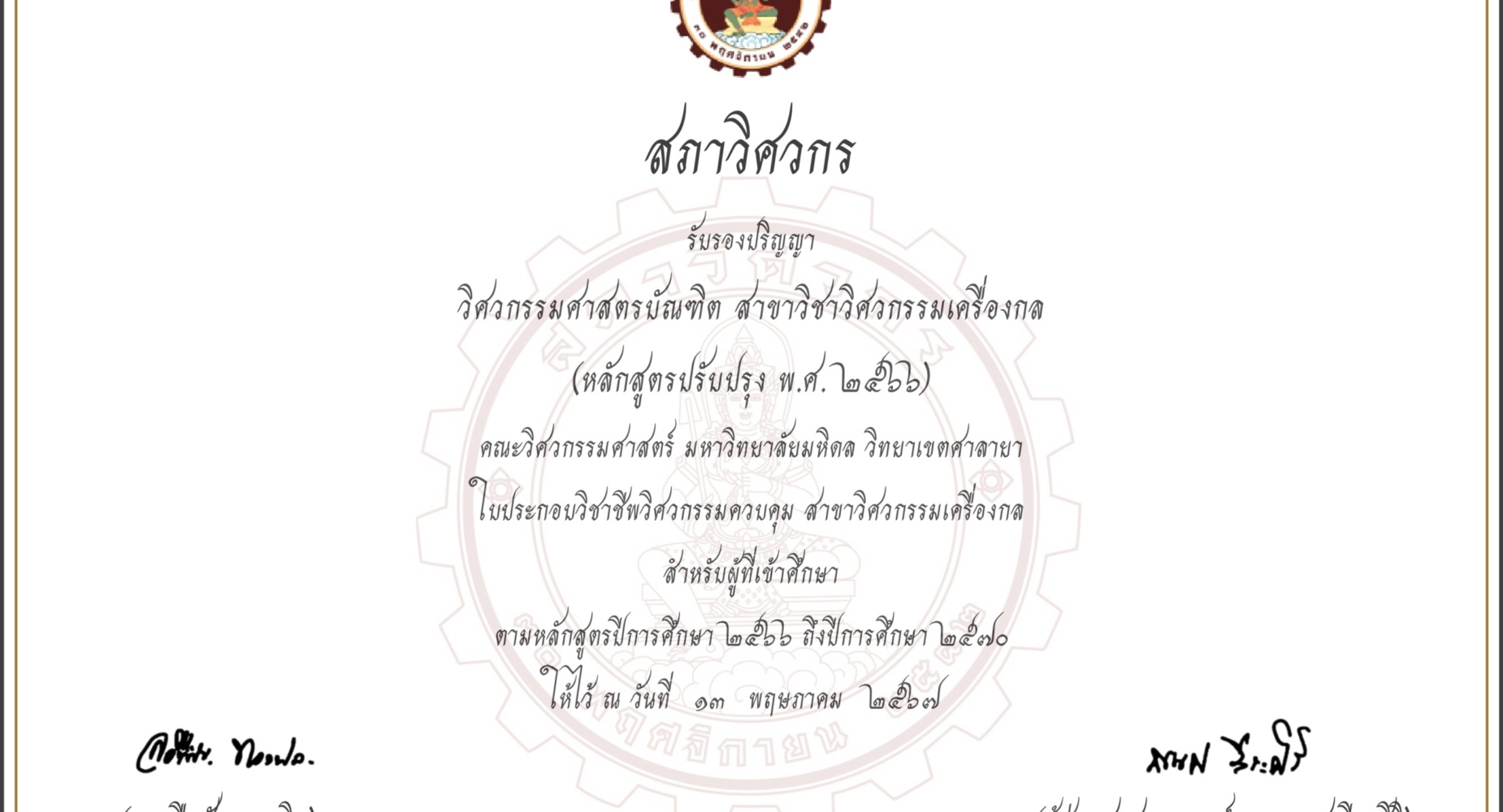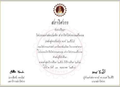 On January 18th, 1989, Mahidol University initiated the establishment of the Faculty of Engineering, Mahidol University. In the process, a draft mechanical engineering curriculum was also proposed to the Mahidol University Council. The curriculum was approved by the Mahidol University Council on October 4th, 1989. Subsequently, the Ministry of University Affairs and the Cabinet approved the establishment of the Faculty of Engineering, Mahidol University and it was published in the Royal Gazette. According to the Royal Decree, the Faculty of Engineering with the Department of Mechanical Engineering was established on August 29th, 1990. There were 20 students in the first batch with Lect. Panyot Thothong as the first Department Chair of Mechanical Engineering. Up to now, the Department of Mechanical Engineering has produced 910 engineers for the business and industrial sectors.