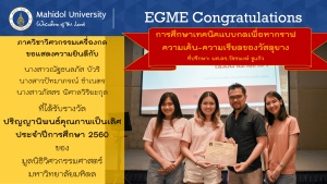 ทางภาควิชาวิศวกรรมเครื่องกล มหาวิทยาลัยมหิดล ของแสดงความยินดีกับนักศึกษาที่ได้รับทุนดังกล่าว ขอให้นักศึกษาพยายามสร้างผลงานเพื่อตนเอง สังคม และประเทศชาติอย่างต่อเนื่อง