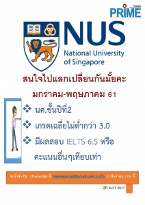 มาอีกแล้ว สิ่งดีๆสำหรับเด็ก ME ของเรา กับโครงการ National University of Singapore – NUS เปิดรับสมัครนักศึกษาชั้นปีที่ 2 ขึ้นไป ร่วมกิจกรรมแลกเปลี่ยน น้องๆสนใจ รีบหน่อยนะคะ ภายในวันที่ 28 สิงหาคม 2560 นี้เท่านั้น