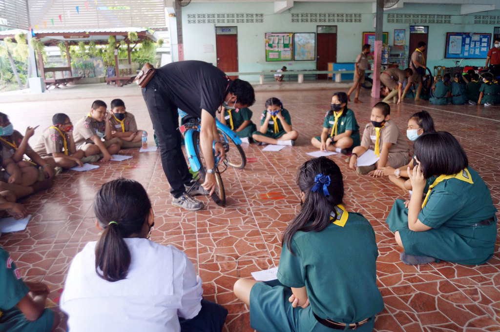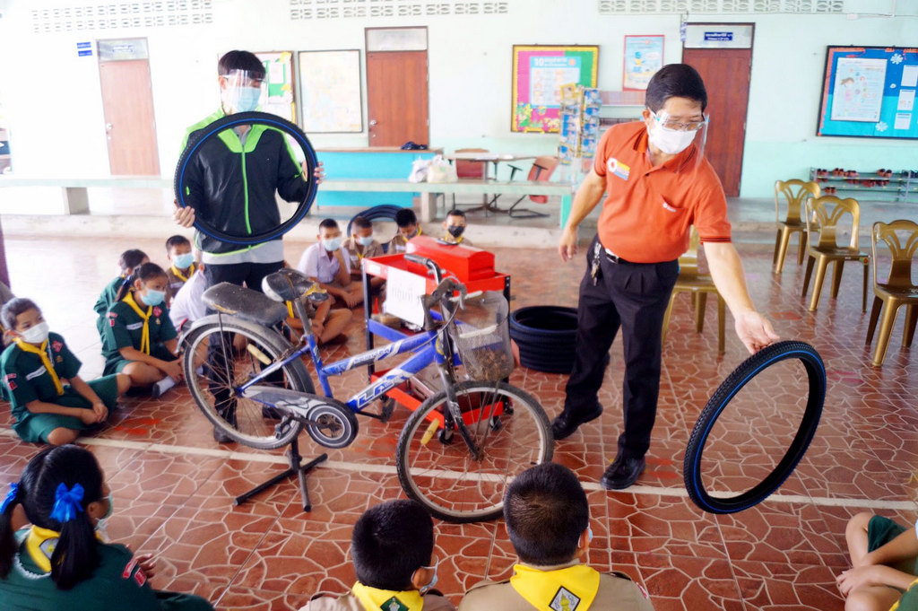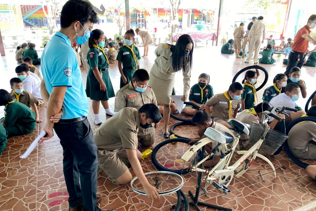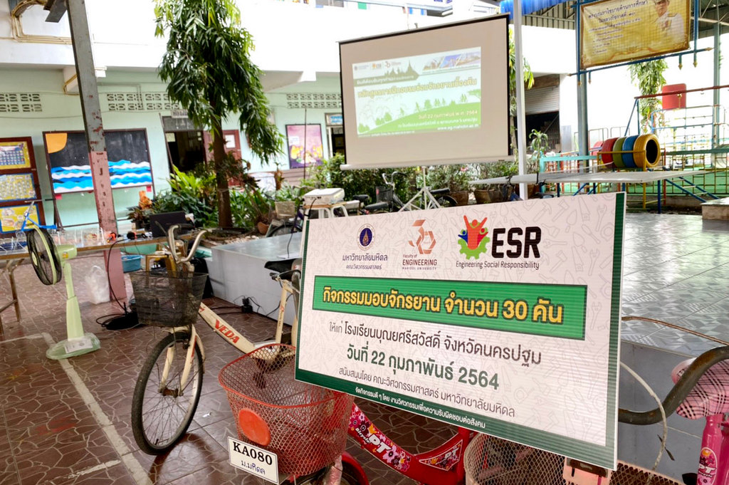 วันที่ 22 กุมภาพันธ์ 2564 คณะวิศวกรรมศาสตร์ มหาวิทยาลัยมหิดล นำโดย ผู้ช่วยศาสตราจารย์ ดร.กฤษฎา อัศวสกุลเกียรติ รองคณบดีฝ่ายเสริมสร้างความร่วมมือและกิจกรรมเพื่อสังคม เป็นประธานในพิธีส่งมอบและเปิดโครงการ “หลักสูตรการฝึกอบรมการซ่อมจักรยานเบื้องต้น” โดยได้รับเกียรติจาก อาจารย์ ดร.สุพรรณ ทิพย์ทิพากร หัวหน้าภาควิชาวิศวกรรมไฟฟ้า กล่าวรายงานวัตถุประสงค์ และว่าที่ร้อยตรี ใครทอง สิงห์คำมา ผู้อำนวยการโรงเรียนบุณยศรีสวัสดิ์ จังหวัดนครปฐม เป็นประธานในพิธีรับมอบจักรยาน รีไซเคิล จำนวน 30 คัน แก่นักเรียนโรงเรียนบุณยศรีสวัสดิ์ โดยงานวิศวกรรมเพื่อความรับผิดชอบต่อสังคม คณะวิศวกรรมศาสตร์ ได้นำจักรยานเก่าที่ไม่ได้ใช้งานจากมหาวิทยาลัยมหิดล นำมาปรับปรุงซ่อมแซมใหม่ให้ใช้งานได้