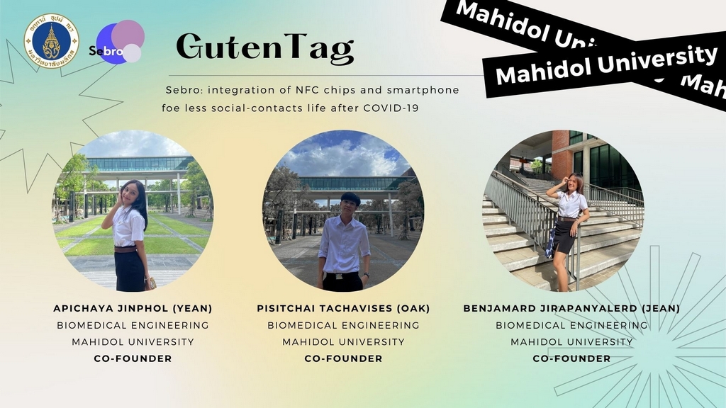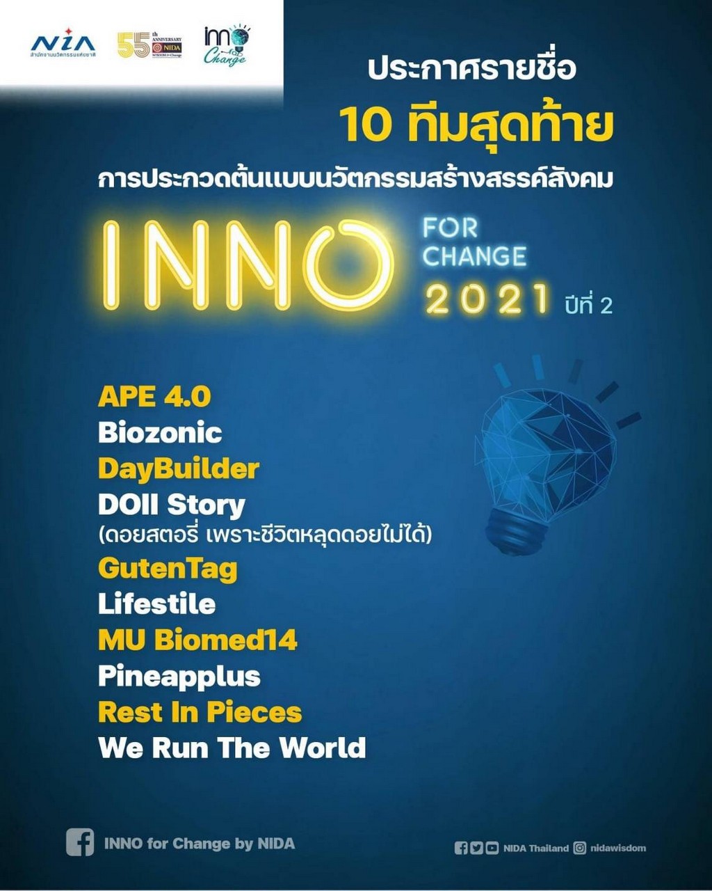 คณะวิศวกรรมศาสตร์ มหาวิทยาลัยมหิดล ขอแสดงความยินดีกับ นักศึกษาชั้นปีที่ 2 ภาควิชาวิศวกรรมชีวการแพทย์ สมาชิกใน 4 ทีม ที่ผ่านเข้าสู่รอบ 10 ทีม การประกวดต้นแบบนวัตกรรมสร้างสรรค์สังคม ในโครงการ "INNO for change 2021" จัดขึ้นโดย สำนักงานนวัตกรรมแห่งชาติ (NIA) ร่วมกับ สถาบันบัณฑิตพัฒนบริหารศาสตร์ (นิด้า) ภายใต้แนวคิด “Next Normal-Social Innovation: นวัตกรรมเพื่อสังคมอุบัติใหม่หลังวิกฤตโควิด-19” โดยมีวัตถุประสงค์เพื่อพัฒนาสมรรถนะของนักศึกษาระดับปริญญาตรีเสริมสร้างทักษะการคิดอย่างเป็นนวัตกรรม และส่งเสริมให้เกิดแนวคิดความรับผิดชอบต่อสังคมอย่างยั่งยืน ประกอบด้วยทีม MU Biomed14 จากผลงานเรื่อง Edge computing mirror กระจกช่วยวินิจฉัยโรค ด้วยระบบ (IoMT) ทีม APE 4.0 จากผลงานเรื่อง แอปพลิเคชันช่วยวิเคราะห์โรคและรวบรวมข้อมูลเพื่อประสานงานกับแพทย์ (APE Inno) ทีม Rest in Pieces จากผลงานเรื่อง Recycled paper from contaminated wastes : ถังขยะอัฉริยะที่สามารถแปลงสภาพกระดาษที่ใช้แล้วเป็นกระดาษ DIY ที่พร้อมใช้ใหม่ได้ และทีม GutenTag จากผลงานเรื่อง Integration of NFC Chips and Smartphone for less social-contacts life after COVID-19 Pandemic โดยทีมที่ผ่านการคัดเลือก 10 ทีม ได้รับเงินสนับสนุนเพื่อจัดทำผลงานทีมละ 10,000 บาท รวมถึงได้เข้าร่วมกิจกรรมอบรมทักษะแนวคิดเชิงนวัตกรรมต่างๆ จากคณาจารย์ผู้ทรงคุณวุฒิ ในหัวข้อที่เกี่ยวกับนวัตกรรมอีกด้วย