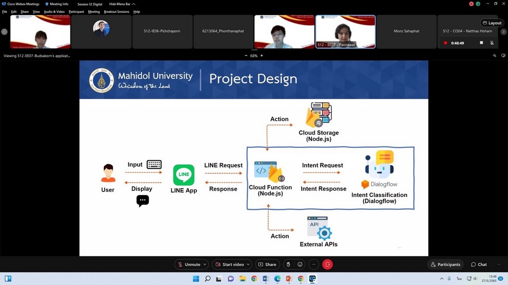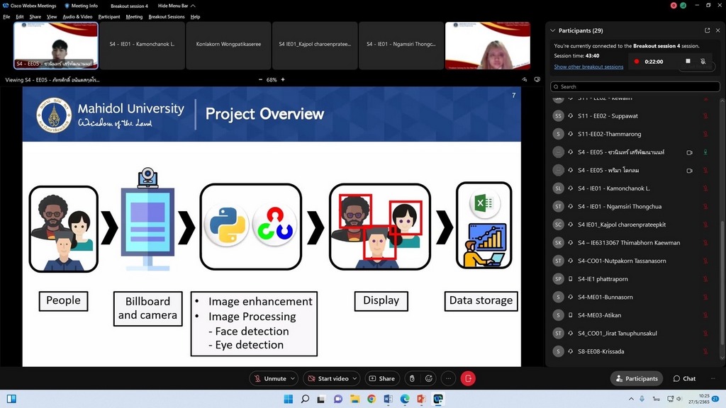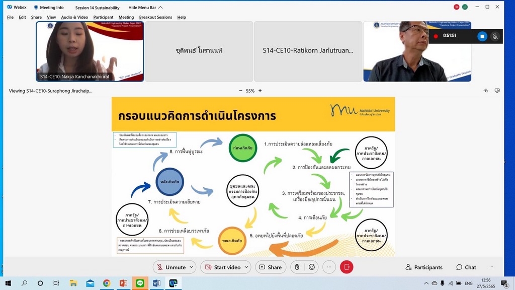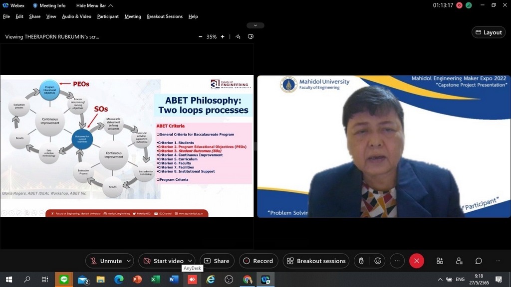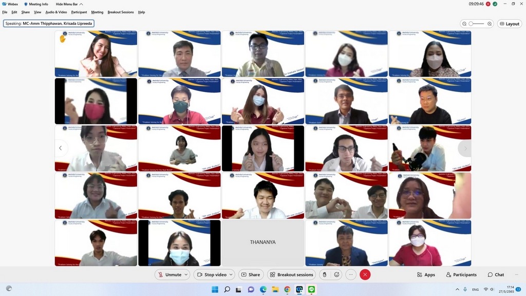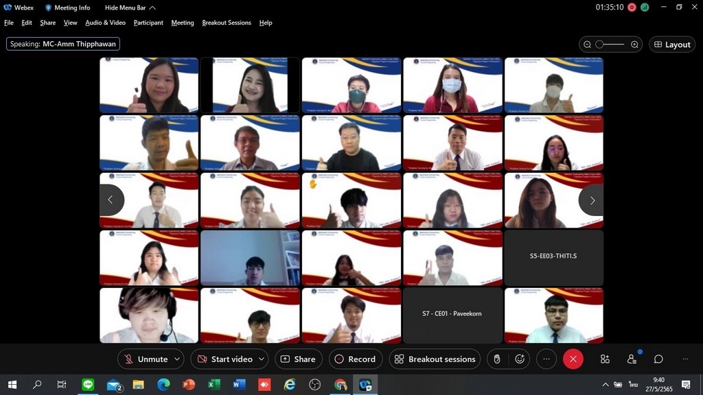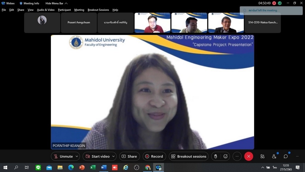 วันที่ 27 พฤษภาคม 2565 รศ.ดร.จักรกฤษณ์ ศุทธากรณ์ คณบดีคณะวิศวกรรมศาสตร์ มหาวิทยาลัยมหิดล เป็นประธานกล่าวเปิดโครงการ Mahidol Engineering Maker Expo 2022 Capstone Project Presentation สุดยอดงานแสดงโครงงานวิศวกรรม ของนักศึกษาชั้นปีที่ 4 ประจำปีการศึกษา 2565 โดยมี ผู้ช่วยศาสตราจารย์ ดร.ธีรพร รับคำอินทร์ ที่ปรึกษาคณบดีด้านการศึกษาและพัฒนาคุณภาพ กล่าวถึงความสำคัญของ Capstone Project Presentation และ ผศ. ดร.พรทิพย์ แก่งอินทร์ รองคณบดีฝ่ายวิชาการ กล่าวรายงาน โดยมีวัตถุประสงค์เพื่อส่งเสริมการแลกเปลี่ยนองค์ความรู้และงานวิจัย ตลอดจนเพื่อให้เป็นที่ประจักษ์แก่สาธารณะชน ซึ่งในปีนี้มีการนำเสนอโครงงานวิศวกรรม จำนวน 88 ผลงาน โดยแบ่งเป็น 4 คลัชเตอร์ ประกอบด้วย Healthcare Engineering, Digital Engineering, Logistics & Railway Engineering และ Sustainability & Environmental Engineering พร้อมทั้งประกาศผลรางวัลของการนำเสนอ 3 อันดับ ในแต่ละคลัชเตอร์ โดยรางวัลชนะเลิศอันดับที่ 1 ได้รับเงินรางวัล 12,000 บาท รางวัลชนะเลิศอันดับที่ 2 ได้รับเงินรางวัล 6,000 บาท และรางวัลชนะเลิศอันดับที่ 3 ได้รับเงินรางวัล 3,000 บาท พร้อมทั้งใบประกาศเกียรติยศ สรุปผลรางวัล ดังนี้