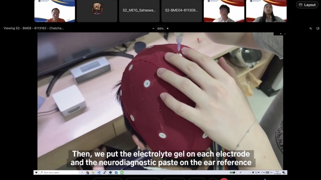 รางวัลชนะเลิศอันดับที่ 1 ได้แก่ผลงาน Motor Imagery Rehabilitation Based Brain-Computer Interface Game for Post-stroke Patient จากภาควิชาวิศวกรรมชีวการแพทย์ ประกอบด้วย Sarayut Meesuk, Chatcharin Sangbutsarakum และ Chatwipa Surapat