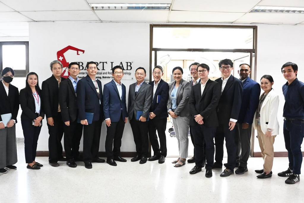 วันที่ 16 มิถุนายน 2566 คณะวิศวกรรมศาสตร์ มหาวิทยาลัยมหิดล นำโดย ผศ.ดร.ก่อพร พันธุ์ยิ้ม รองคณบดีฝ่ายบริหารและการคลัง พร้อมด้วยคณาจารย์คณะวิศวกรรมศาสตร์ ให้การต้อนรับ คุณยุทธนา เจียมตระการ ผู้ช่วยผู้จัดการใหญ่ การบริหารกลาง พร้อมทีมผู้บริหารจากเอสซีจี ประเทศไทย รวมถึงคุณกุลโชค โพธิ์พัฒนชัย กรรมการผู้จัดการและประธานเจ้าหน้าที่บริหารกลุ่มบริษัท เอ.ไอ. (A.I. Group) และ บริษัท เอ.ไอ. เทคโนโลยี จำกัด (A.I. Technology) พร้อมทีมผู้บริหารจากบริษัท เอ.ไอ. เทคโนโลยี จำกัด ณ Innogineer Studio ชั้น 1 อาคาร 3 คณะวิศวกรรมศาสตร์ มหาวิทยาลัยมหิดล คณะผู้บริหารและทีมได้เข้าเยี่ยมชมห้องปฏิบัติการของคณะวิศวกรรมศาสตร์ ซึ่งประกอบด้วย Innogineer Studio และ BART LAB